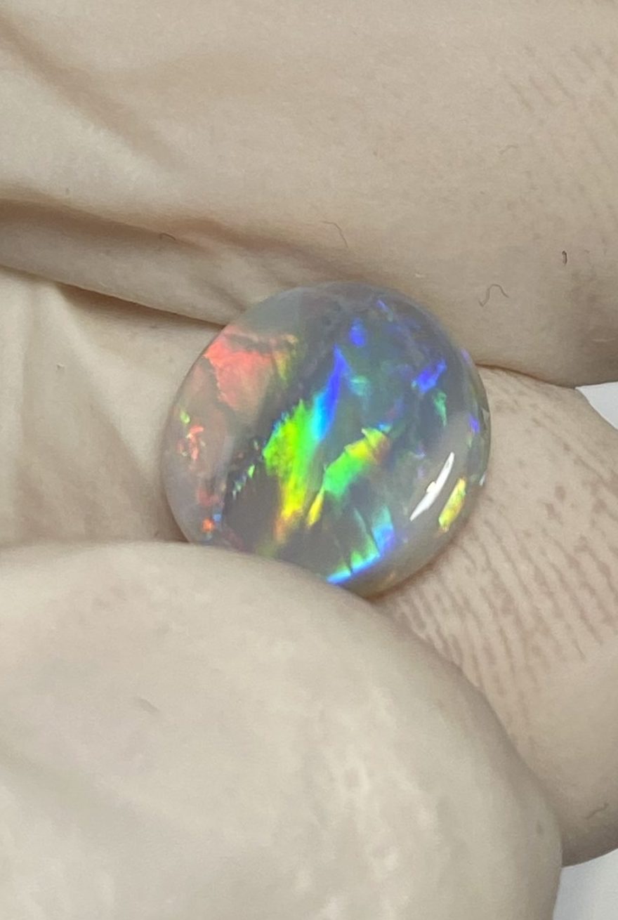 ECLAIRAGE ET COULEURS: Toutes les photos et vidéos ont été prises avec éclairage direct (sous lampe de bureau avec ampoule LED couleur « blanche froide »). Les feux de l’opale seront moins forts sans exposition au soleil ou éclairage direct. Les couleurs de l’opale varient également selon le type d’éclairage et le fond/arrière-plan. En général, le bleu sur les photos/vidéos, est plus proche du violet en réalité sous la plupart des d’éclairages.