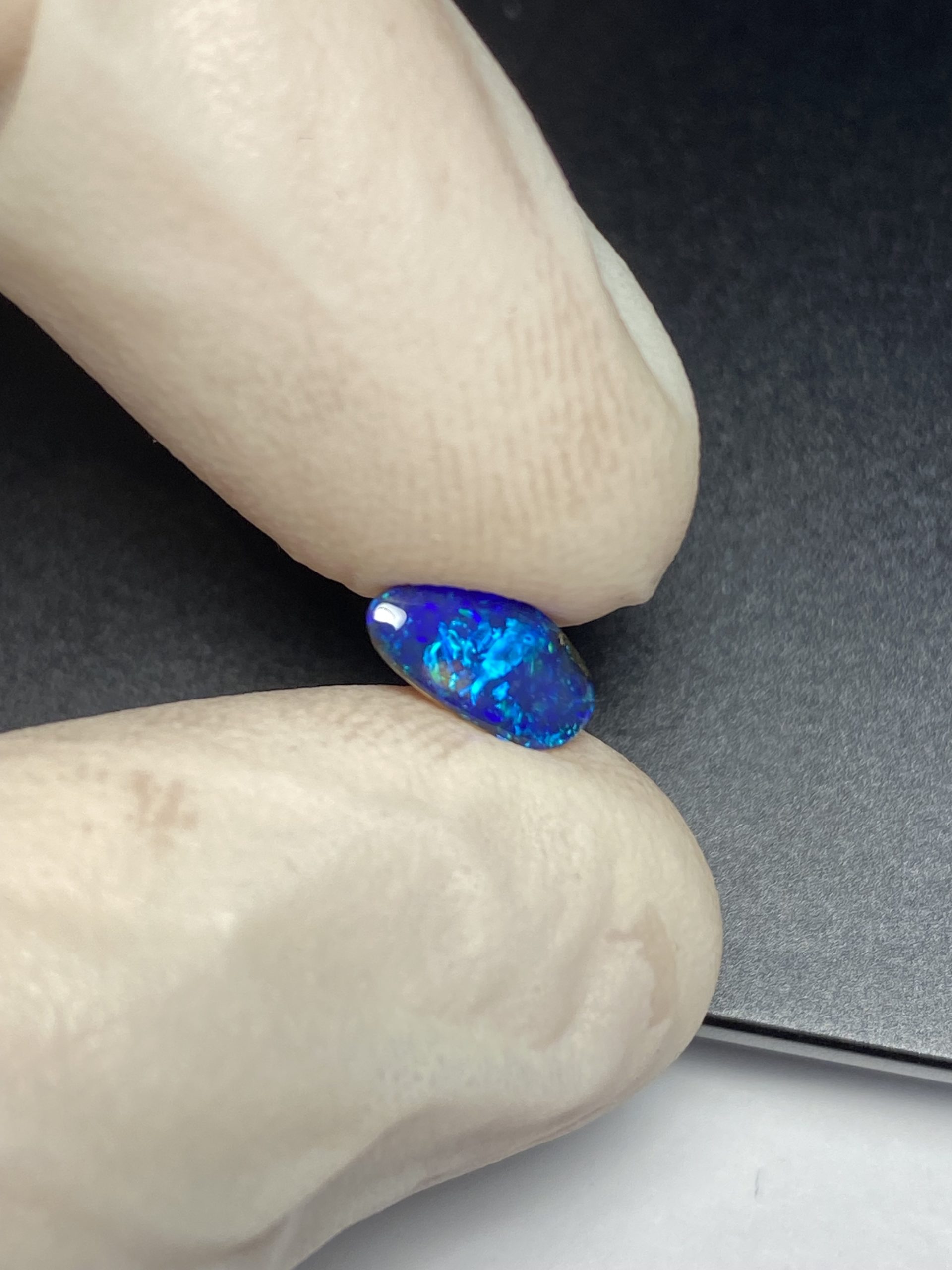 ECLAIRAGE ET COULEURS: Toutes les photos et vidéos ont été prises avec éclairage direct (sous lampe de bureau avec ampoule LED couleur « blanche froide »). Les feux de l’opale seront moins forts sans exposition au soleil ou éclairage direct. Les couleurs de l’opale varient également selon le type d’éclairage et le fond/arrière-plan. En général, le bleu sur les photos/vidéos, est plus proche du violet en réalité sous la plupart des d’éclairages.