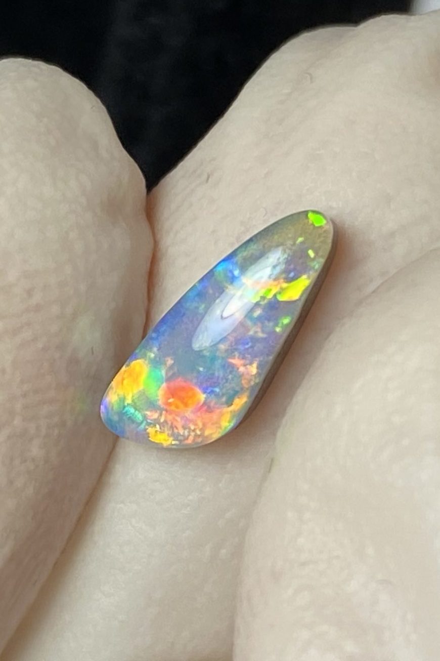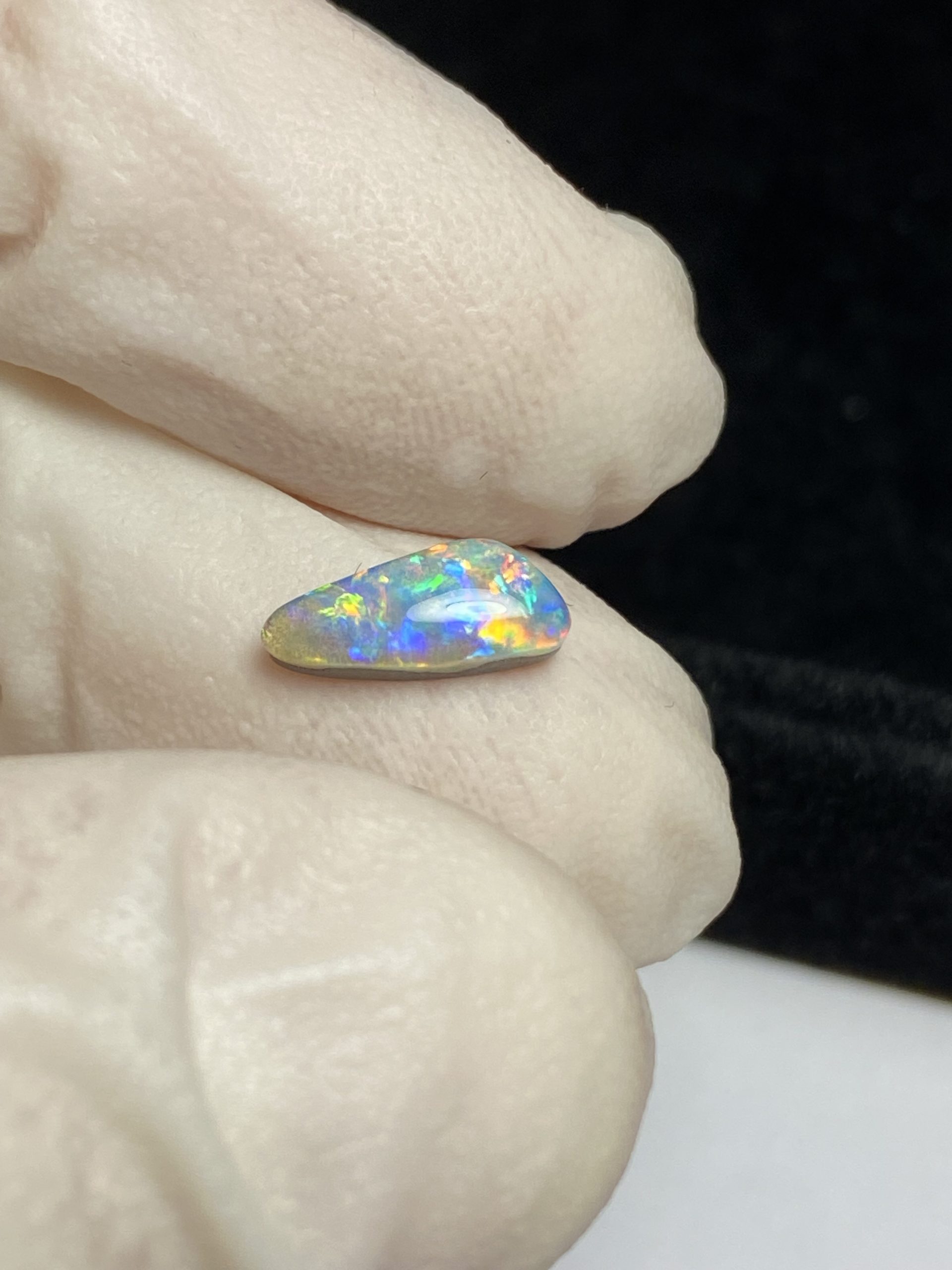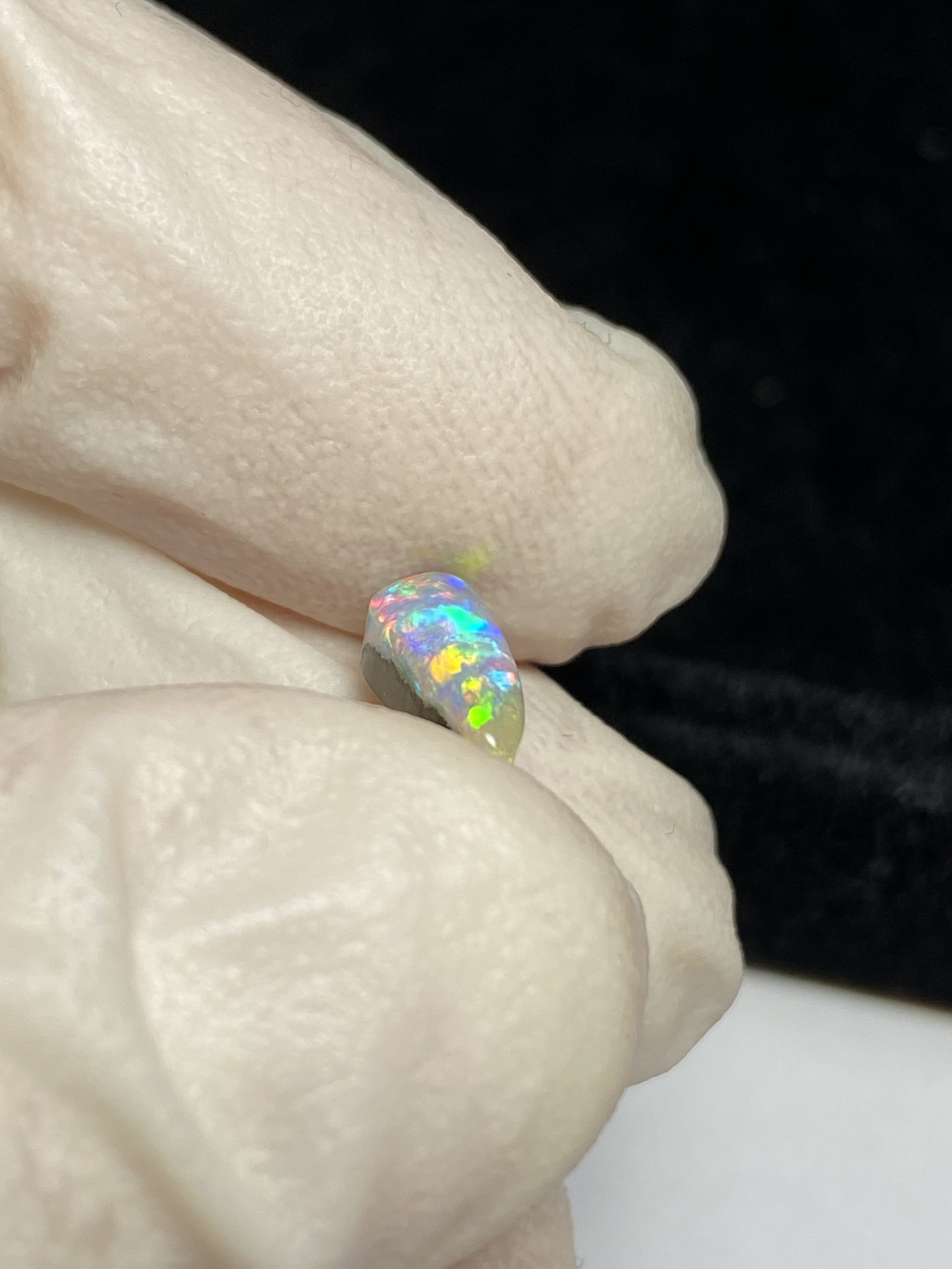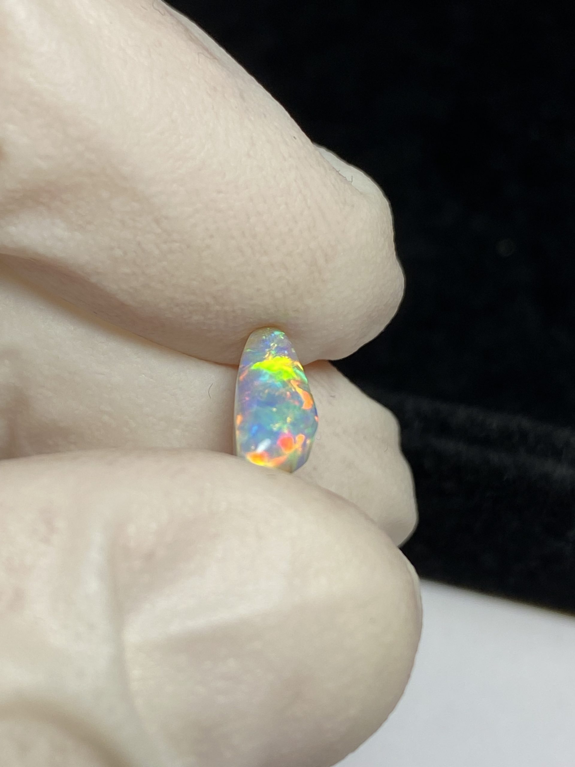 ECLAIRAGE ET COULEURS: Toutes les photos et vidéos ont été prises avec éclairage direct (sous lampe de bureau avec ampoule LED couleur « blanche froide »). Les feux de l’opale seront moins forts sans exposition au soleil ou éclairage direct. Les couleurs de l’opale varient également selon le type d’éclairage et le fond/arrière-plan. En général, le bleu sur les photos/vidéos, est plus proche du violet en réalité sous la plupart des d’éclairages.