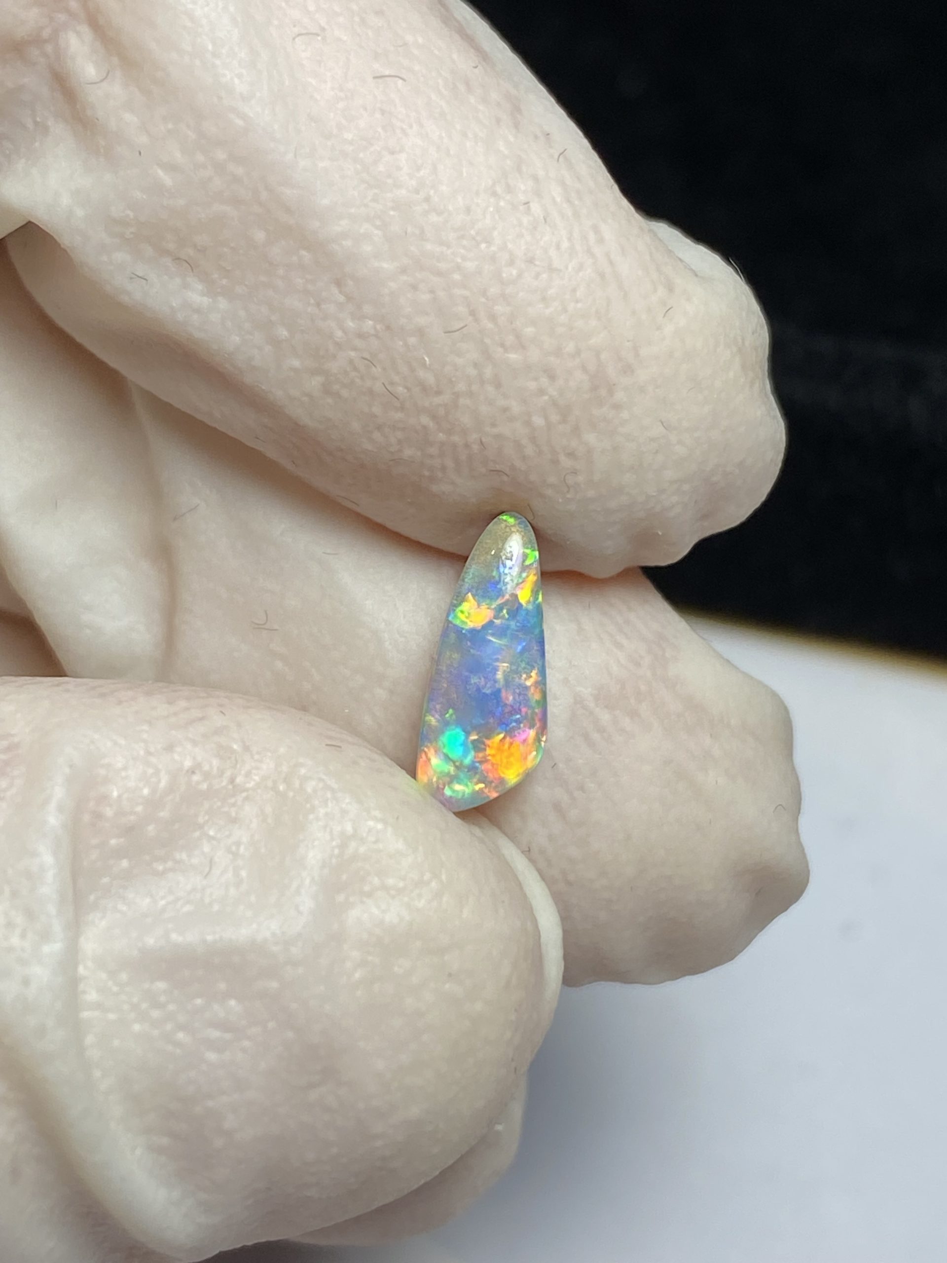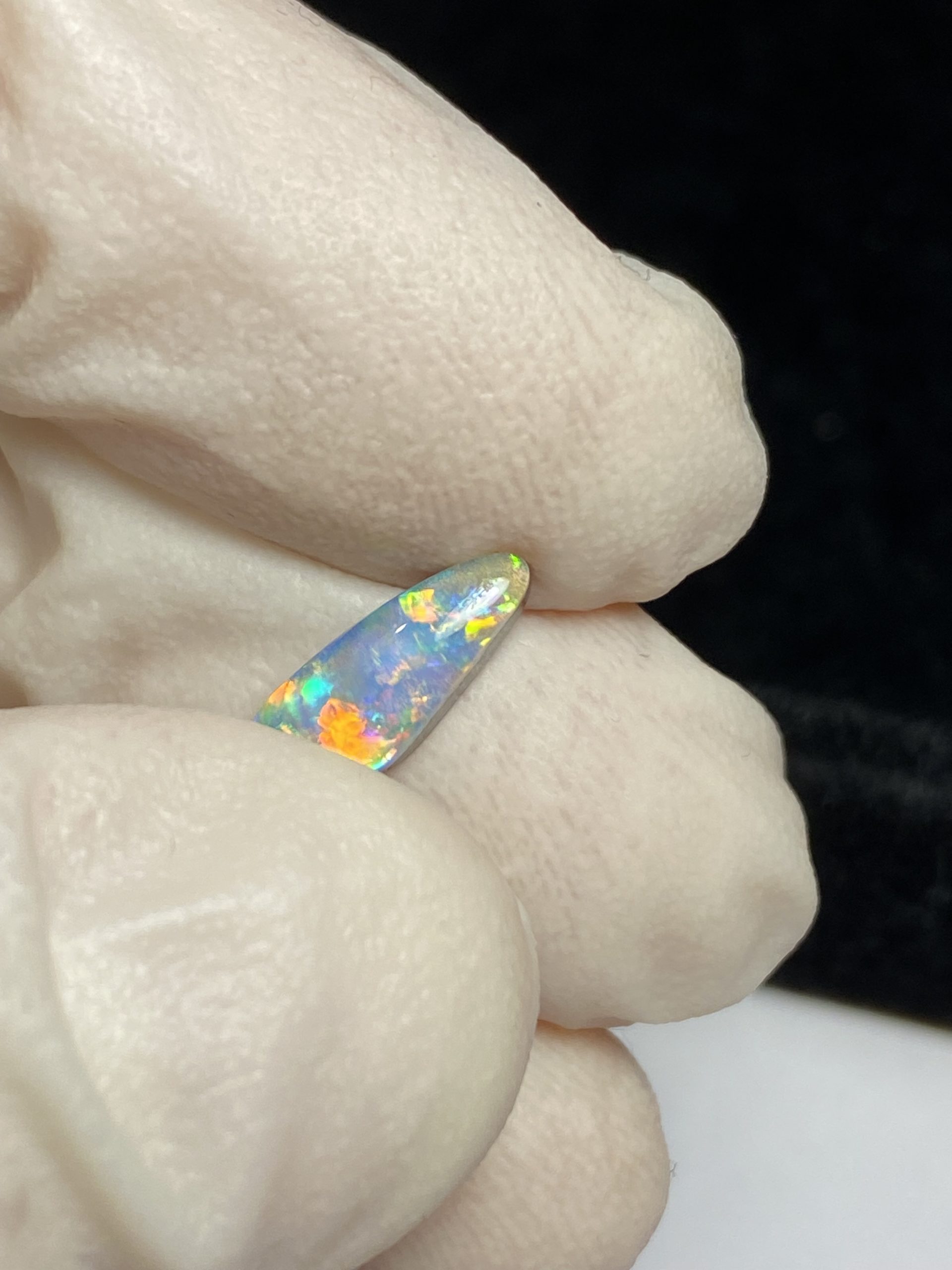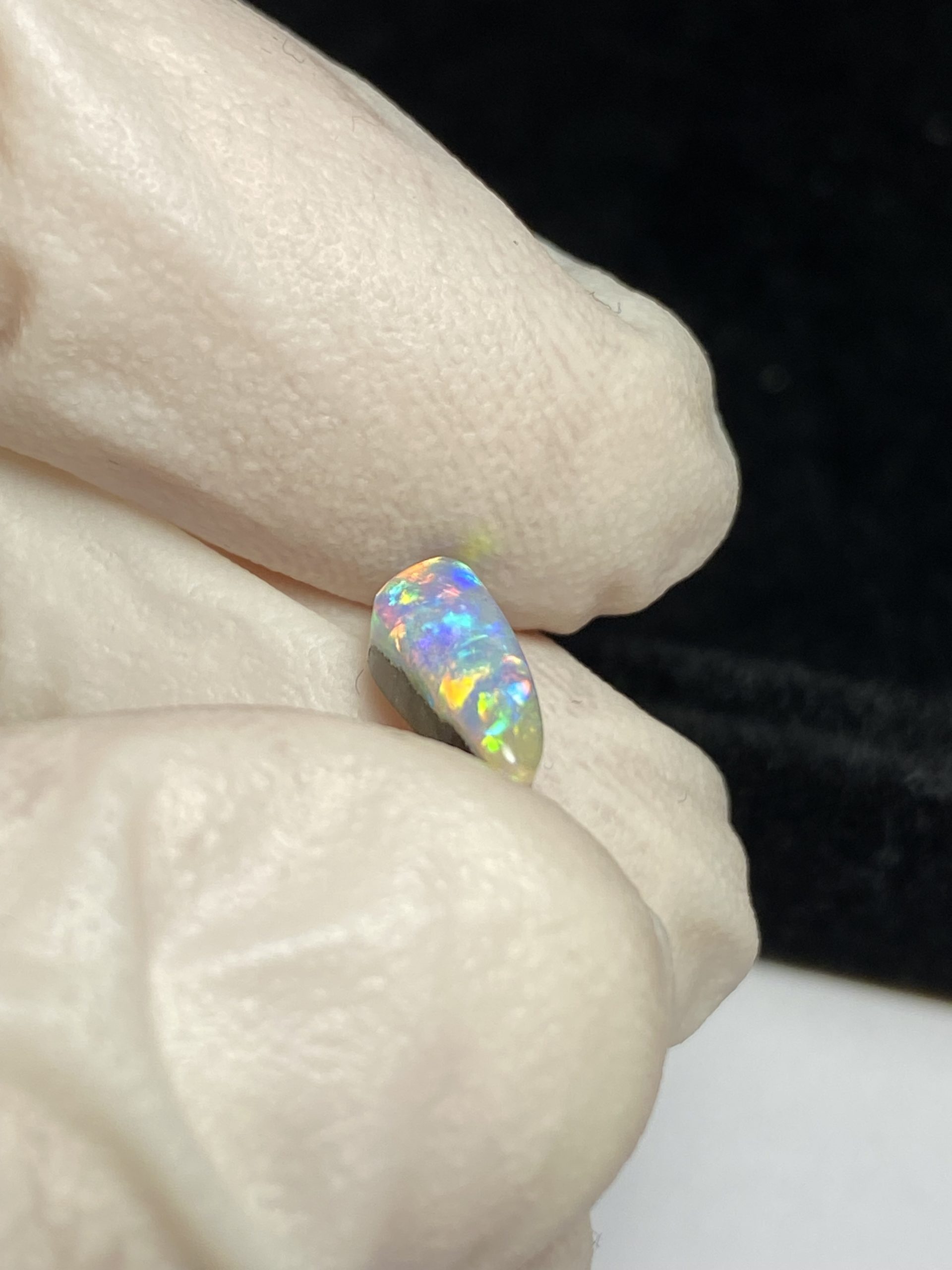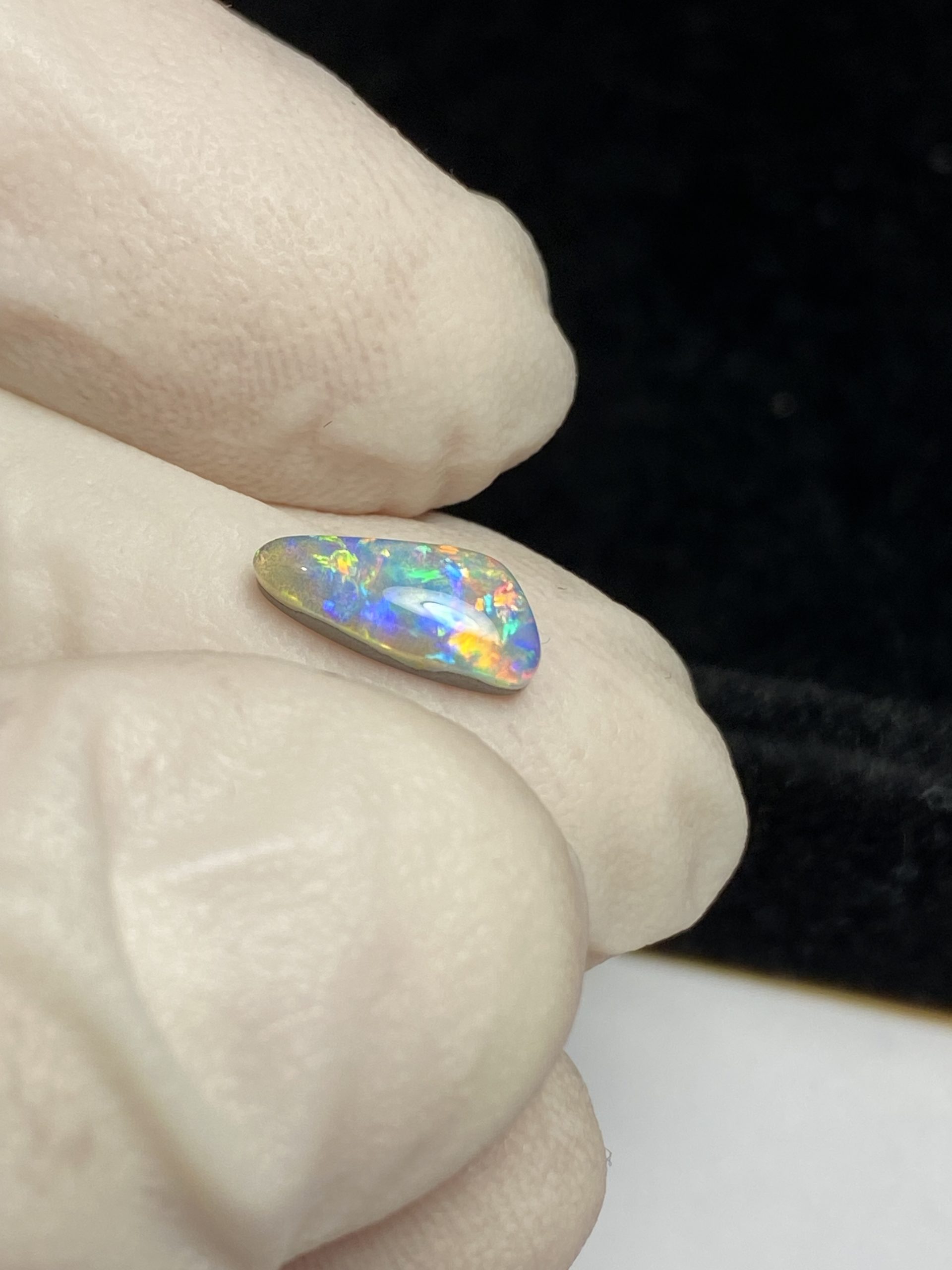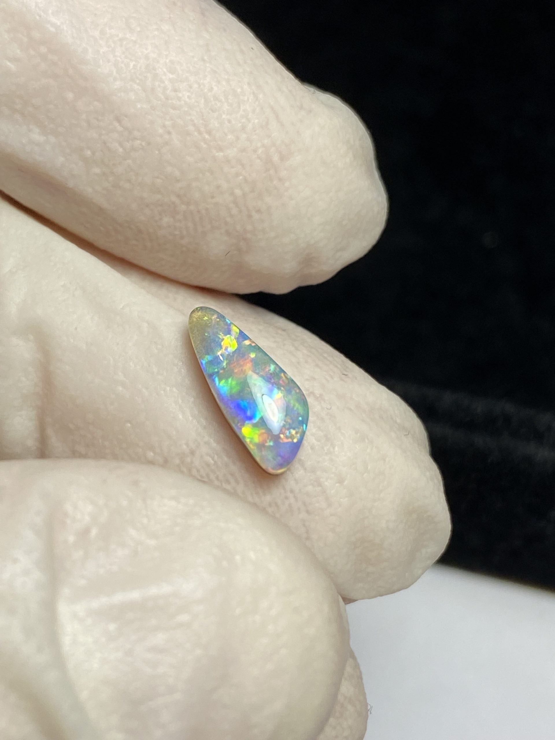 ECLAIRAGE ET COULEURS: Toutes les photos et vidéos ont été prises avec éclairage direct (sous lampe de bureau avec ampoule LED couleur « blanche froide »). Les feux de l’opale seront moins forts sans exposition au soleil ou éclairage direct. Les couleurs de l’opale varient également selon le type d’éclairage et le fond/arrière-plan. En général, le bleu sur les photos/vidéos, est plus proche du violet en réalité sous la plupart des d’éclairages.