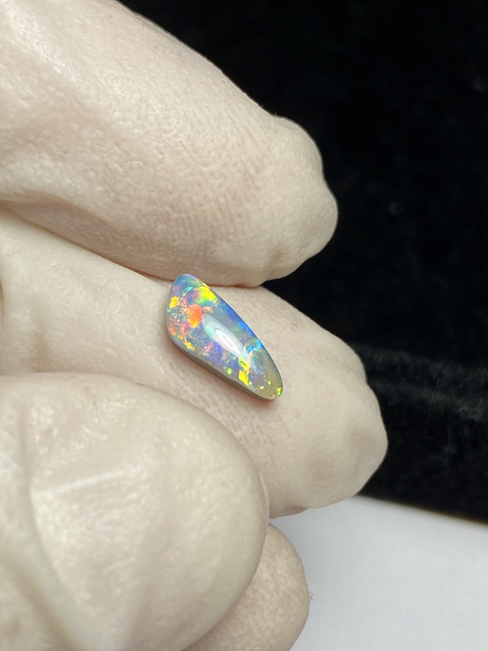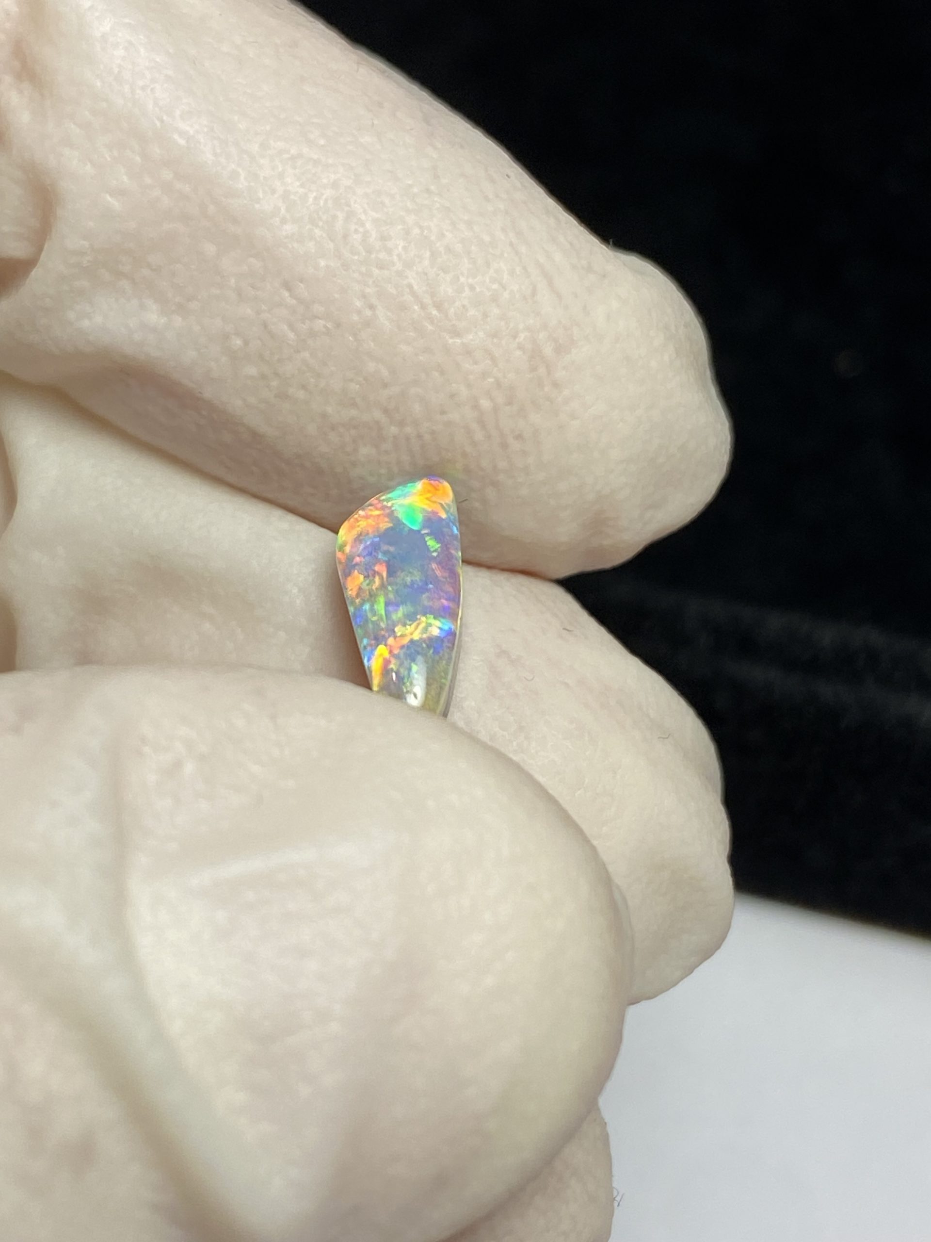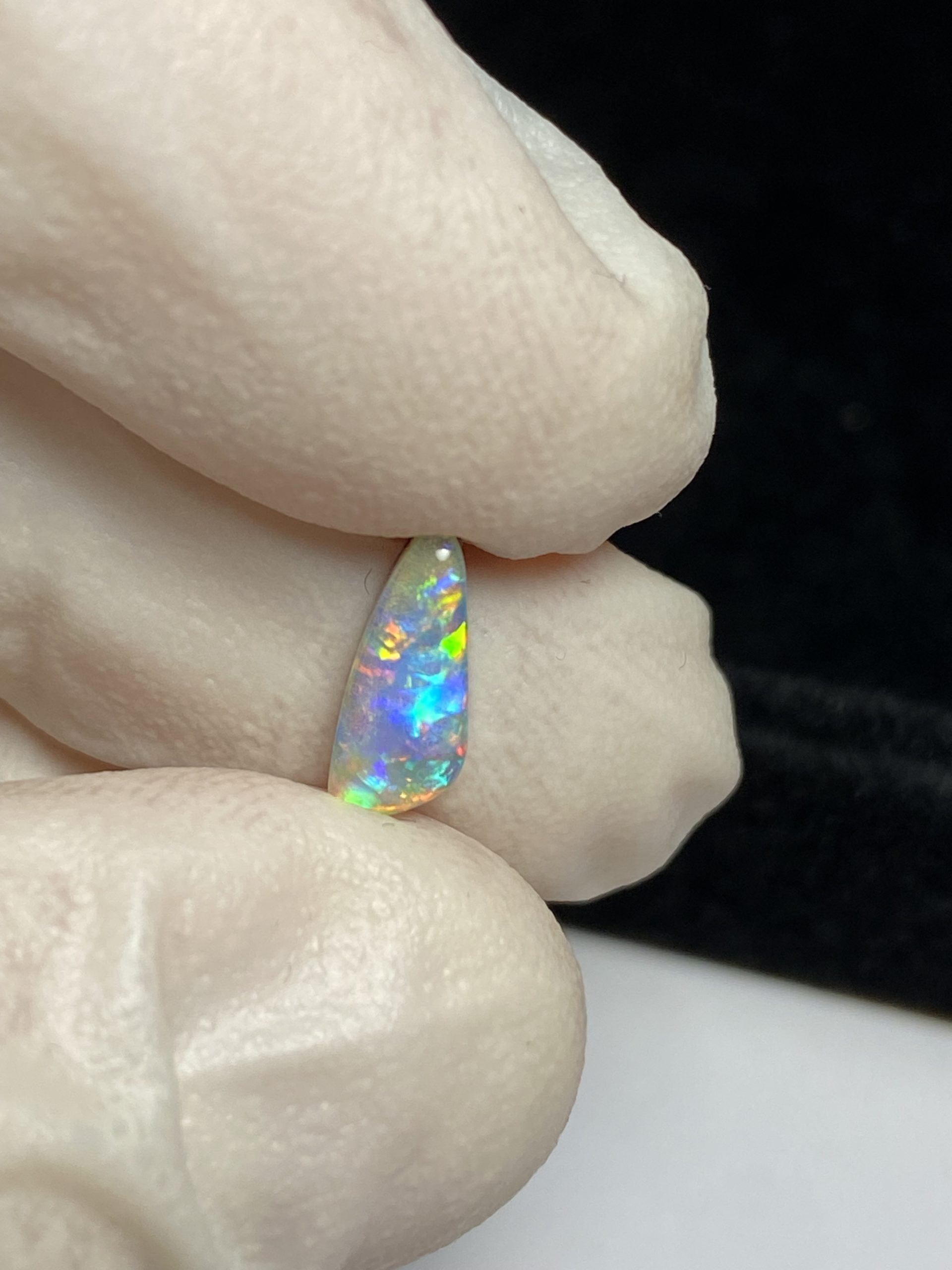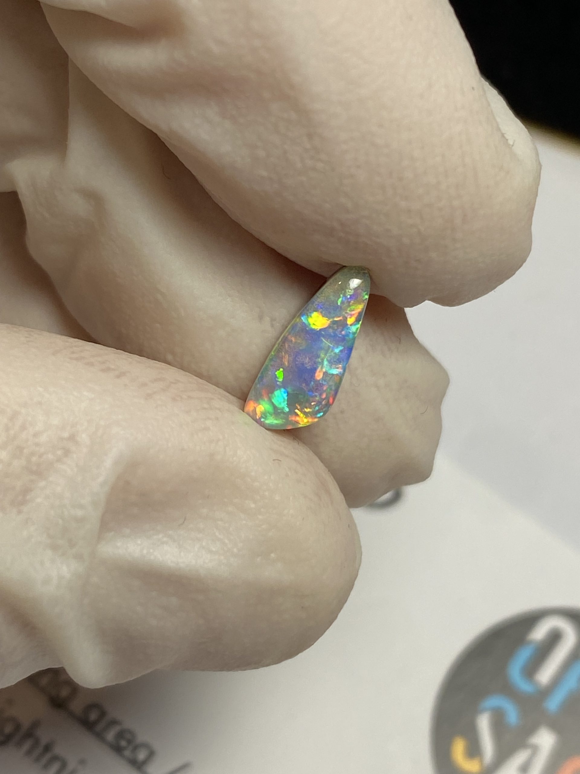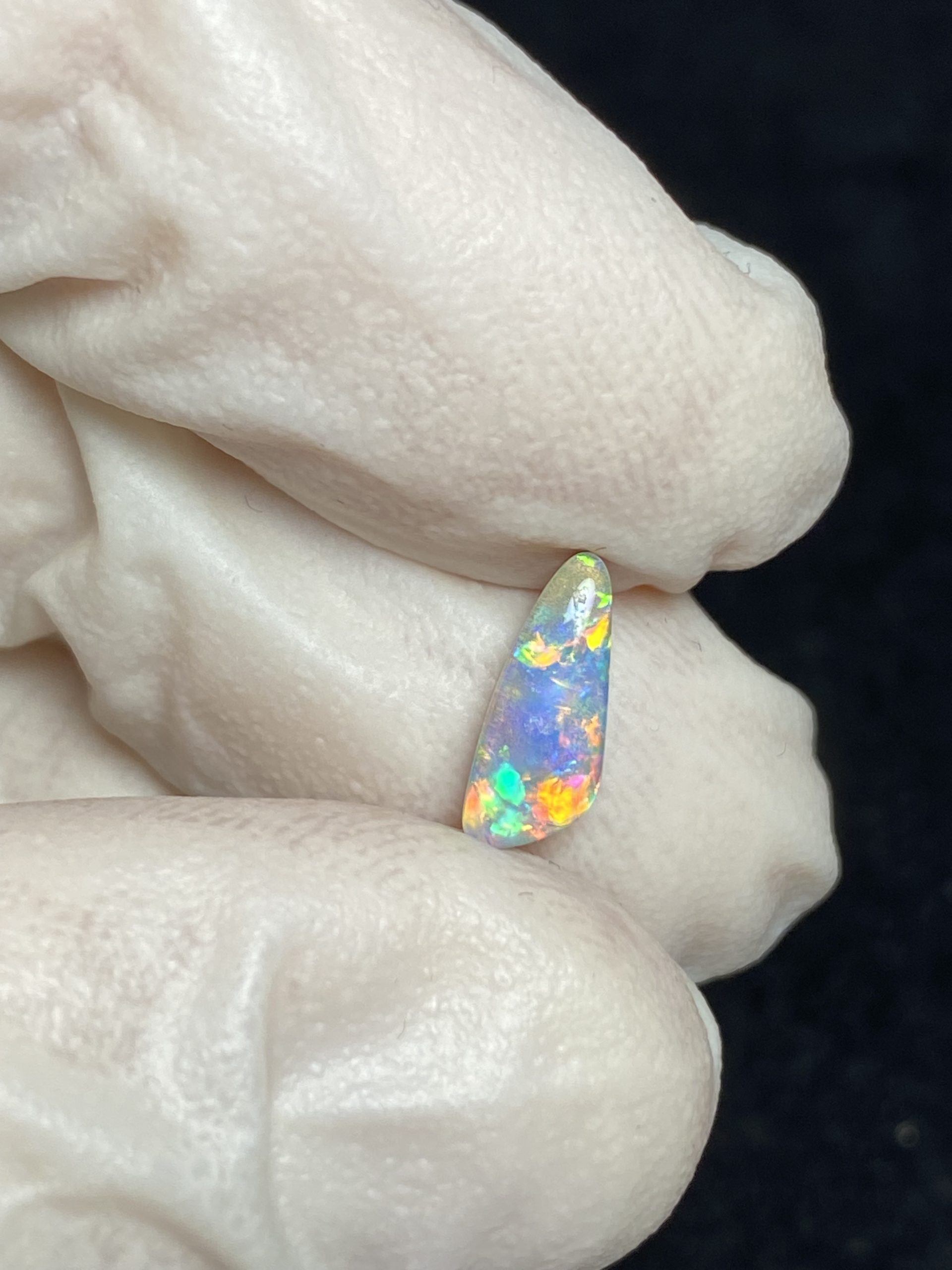 ECLAIRAGE ET COULEURS: Toutes les photos et vidéos ont été prises avec éclairage direct (sous lampe de bureau avec ampoule LED couleur « blanche froide »). Les feux de l’opale seront moins forts sans exposition au soleil ou éclairage direct. Les couleurs de l’opale varient également selon le type d’éclairage et le fond/arrière-plan. En général, le bleu sur les photos/vidéos, est plus proche du violet en réalité sous la plupart des d’éclairages.