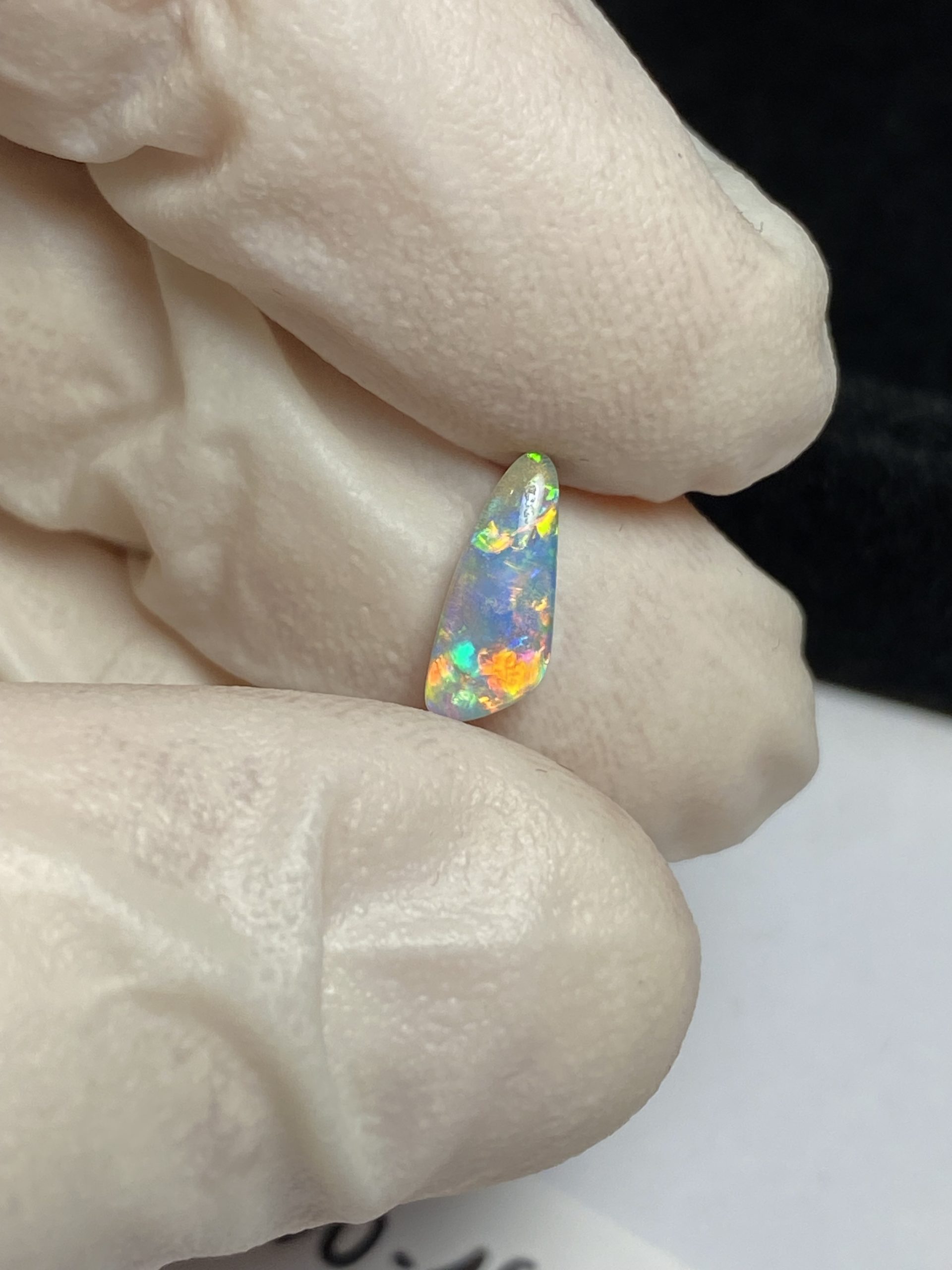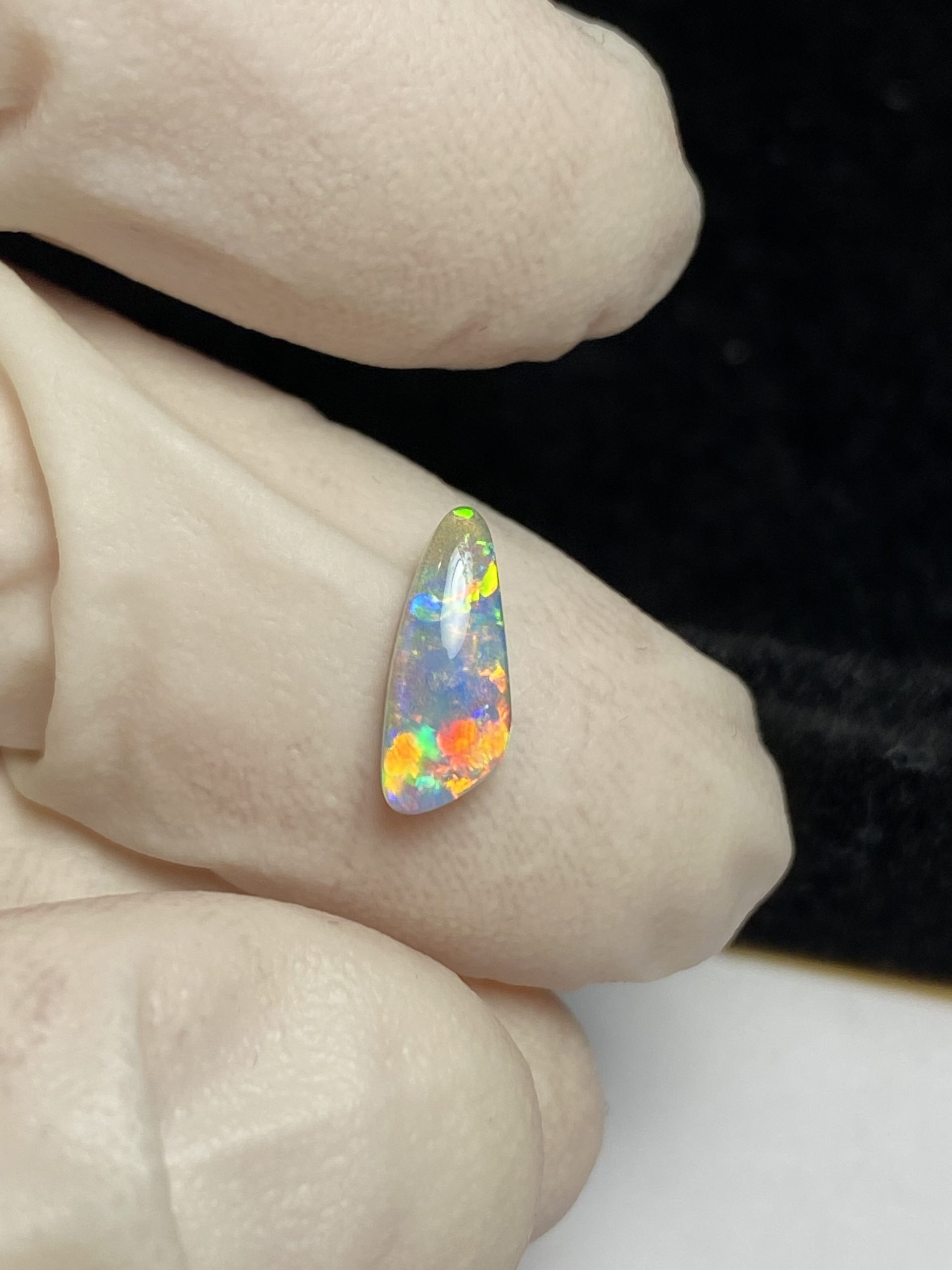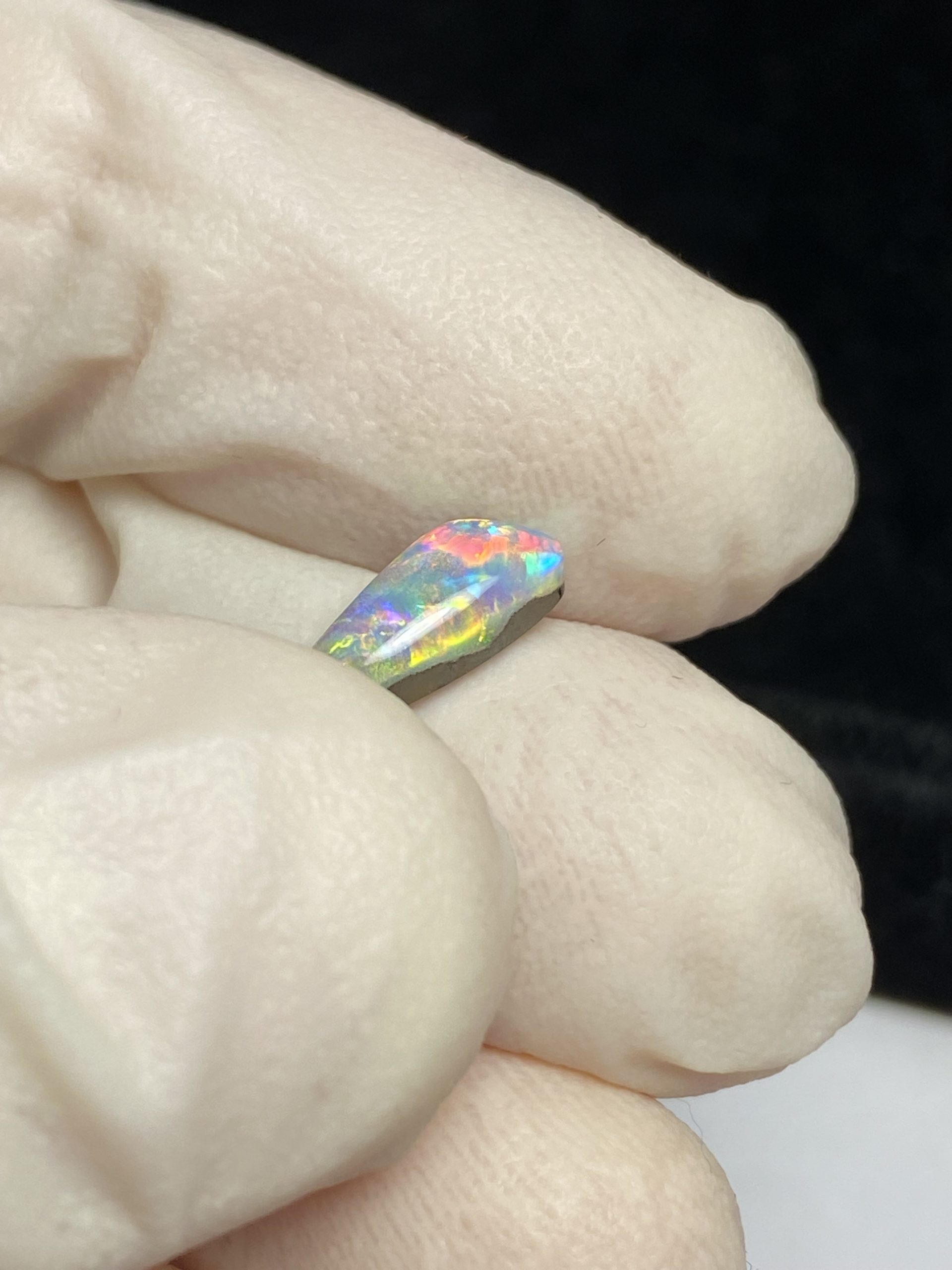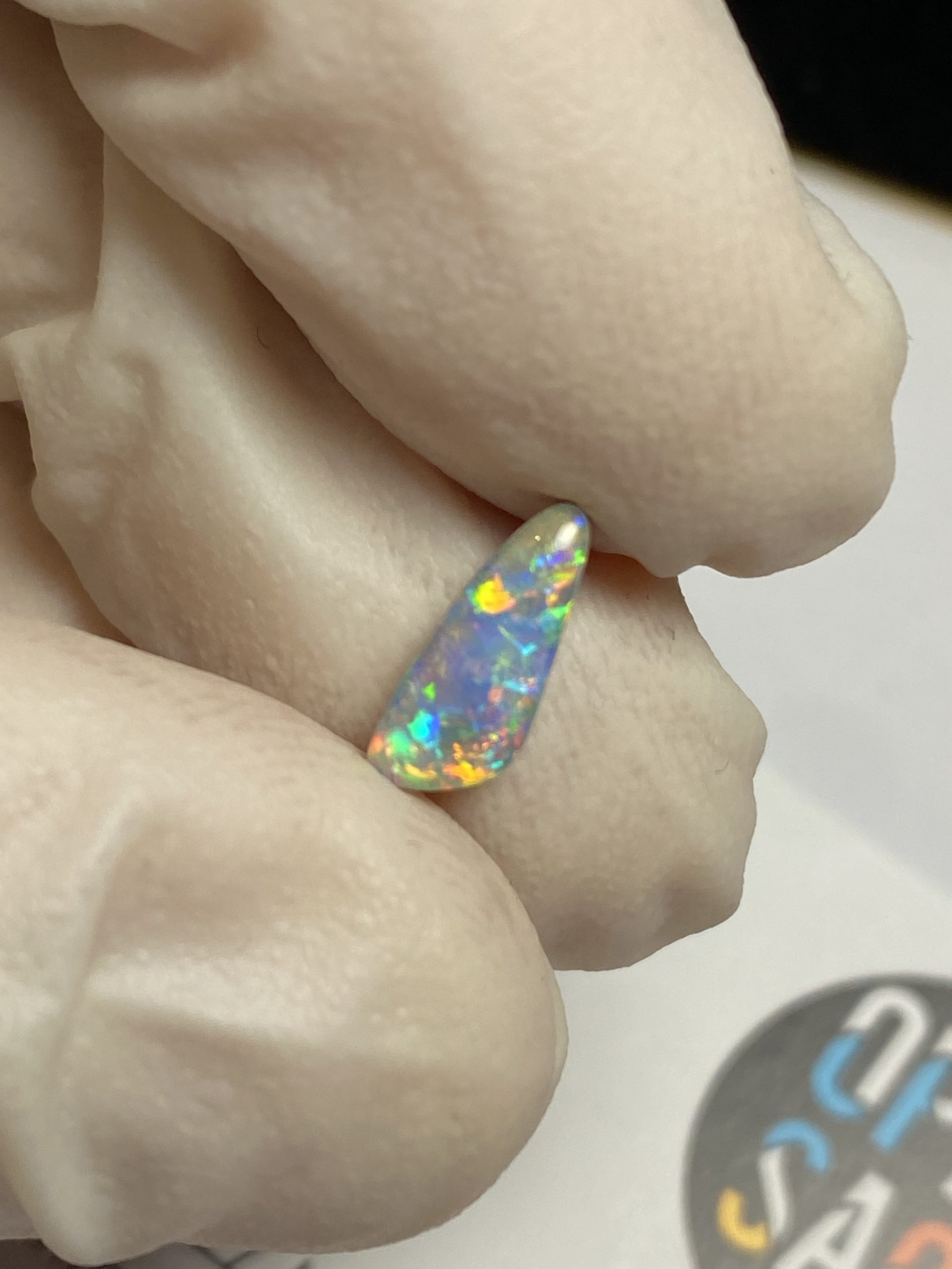 ECLAIRAGE ET COULEURS: Toutes les photos et vidéos ont été prises avec éclairage direct (sous lampe de bureau avec ampoule LED couleur « blanche froide »). Les feux de l’opale seront moins forts sans exposition au soleil ou éclairage direct. Les couleurs de l’opale varient également selon le type d’éclairage et le fond/arrière-plan. En général, le bleu sur les photos/vidéos, est plus proche du violet en réalité sous la plupart des d’éclairages.