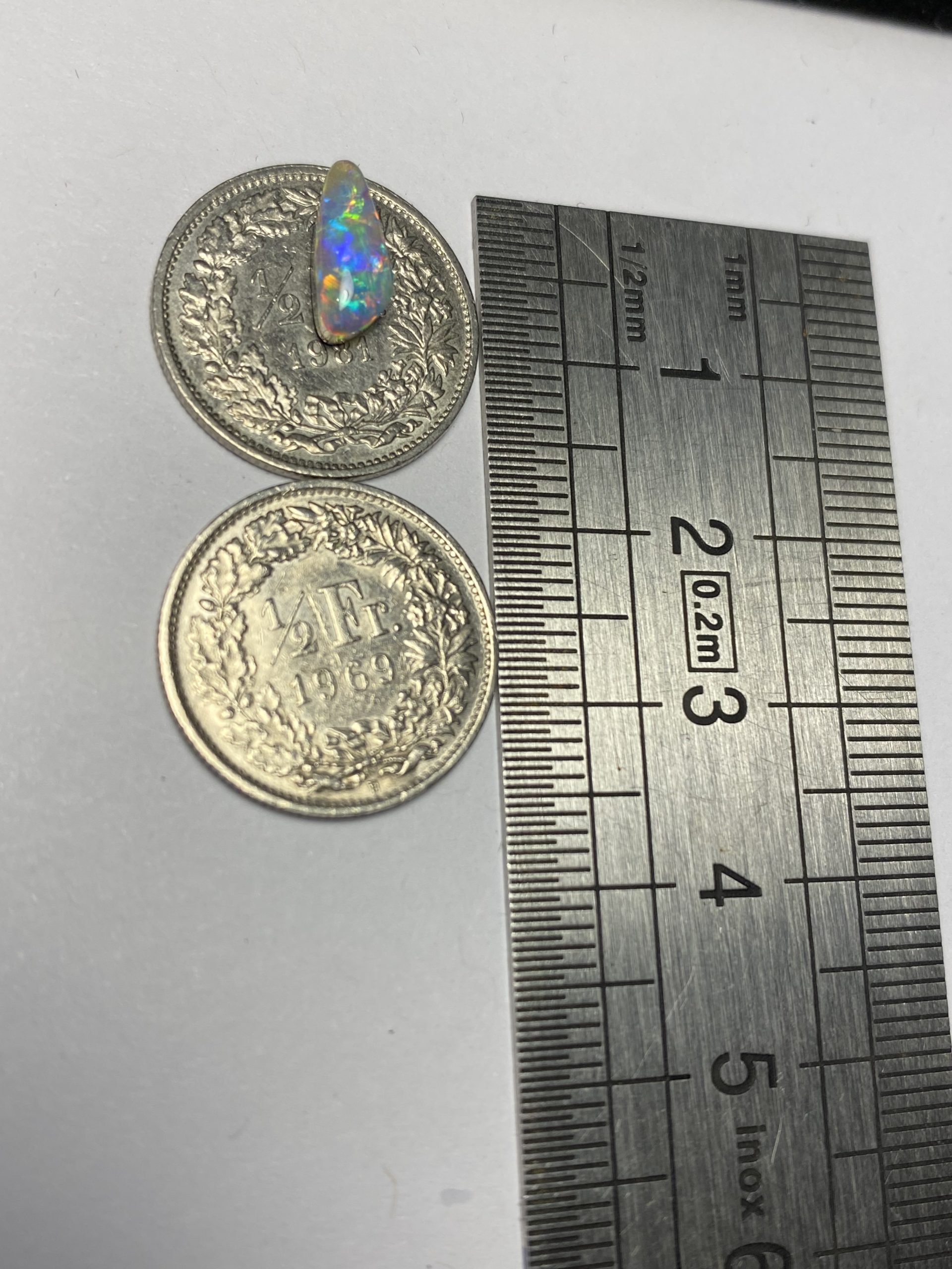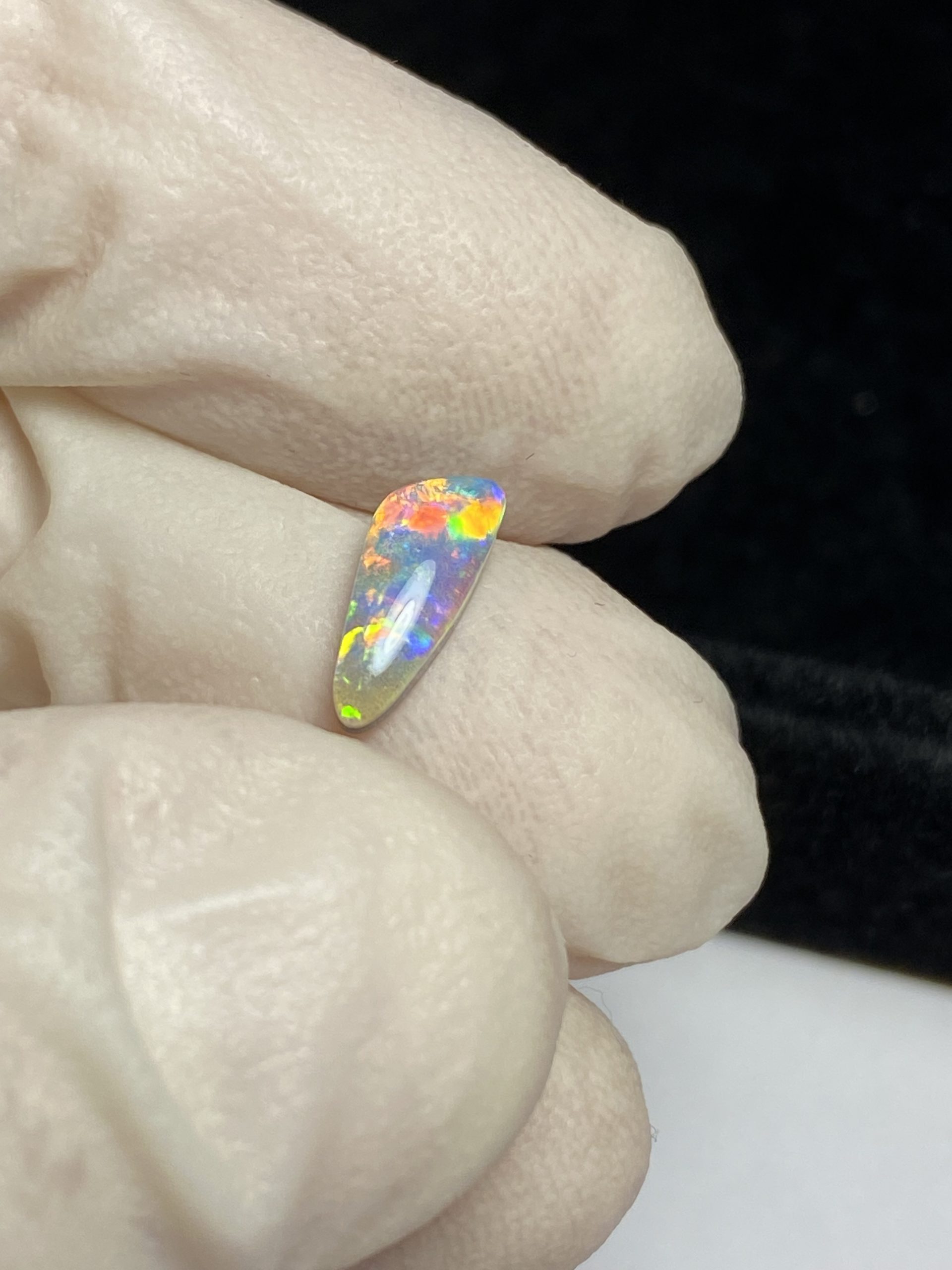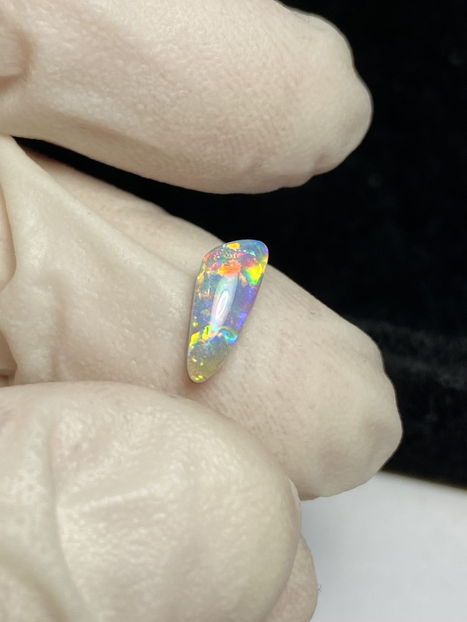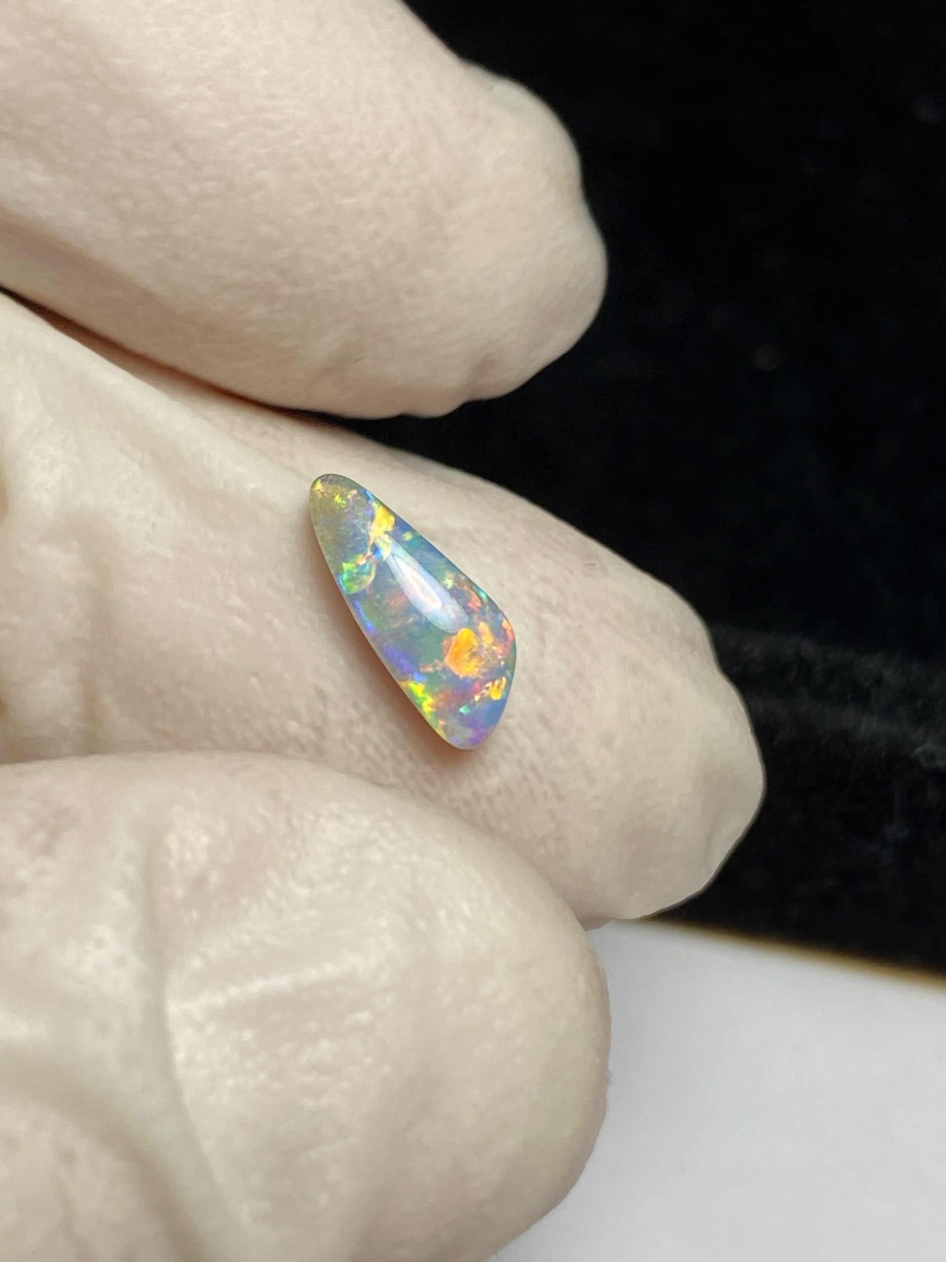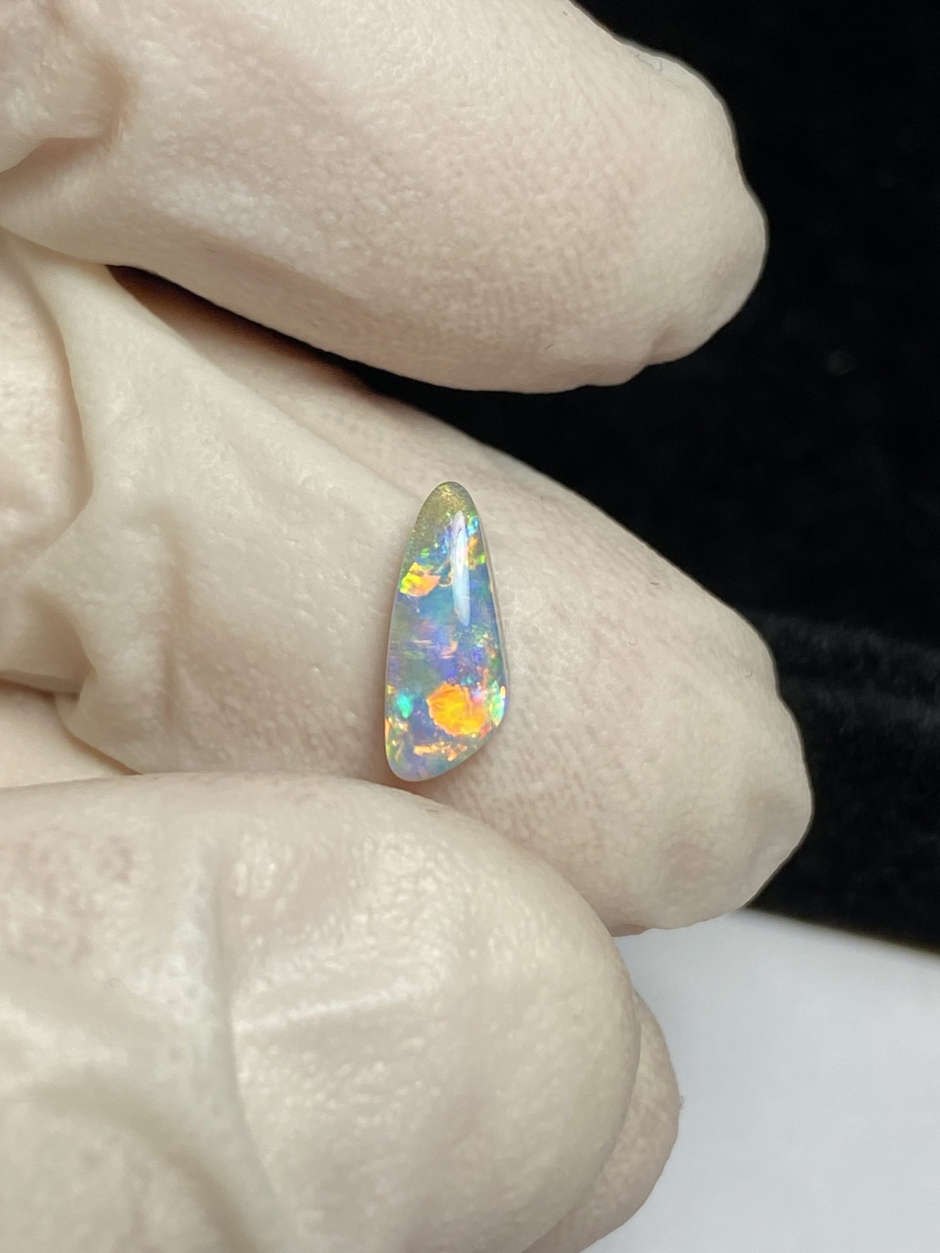 ECLAIRAGE ET COULEURS: Toutes les photos et vidéos ont été prises avec éclairage direct (sous lampe de bureau avec ampoule LED couleur « blanche froide »). Les feux de l’opale seront moins forts sans exposition au soleil ou éclairage direct. Les couleurs de l’opale varient également selon le type d’éclairage et le fond/arrière-plan. En général, le bleu sur les photos/vidéos, est plus proche du violet en réalité sous la plupart des d’éclairages.