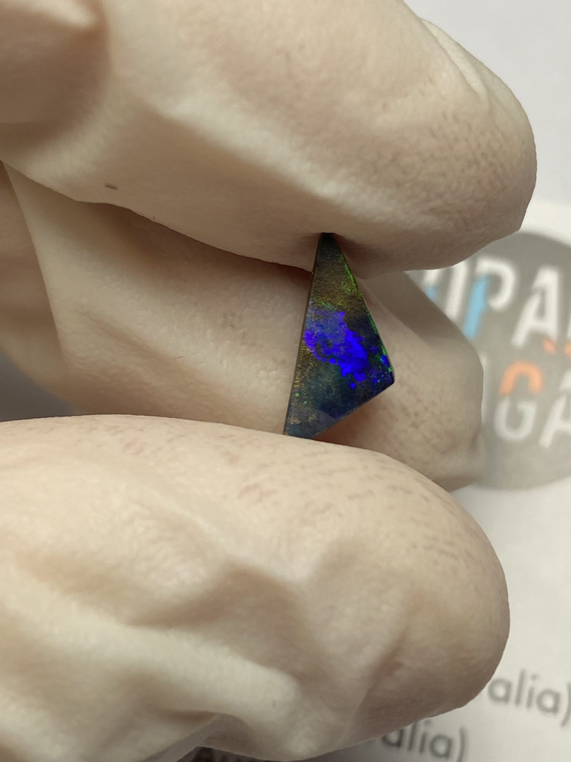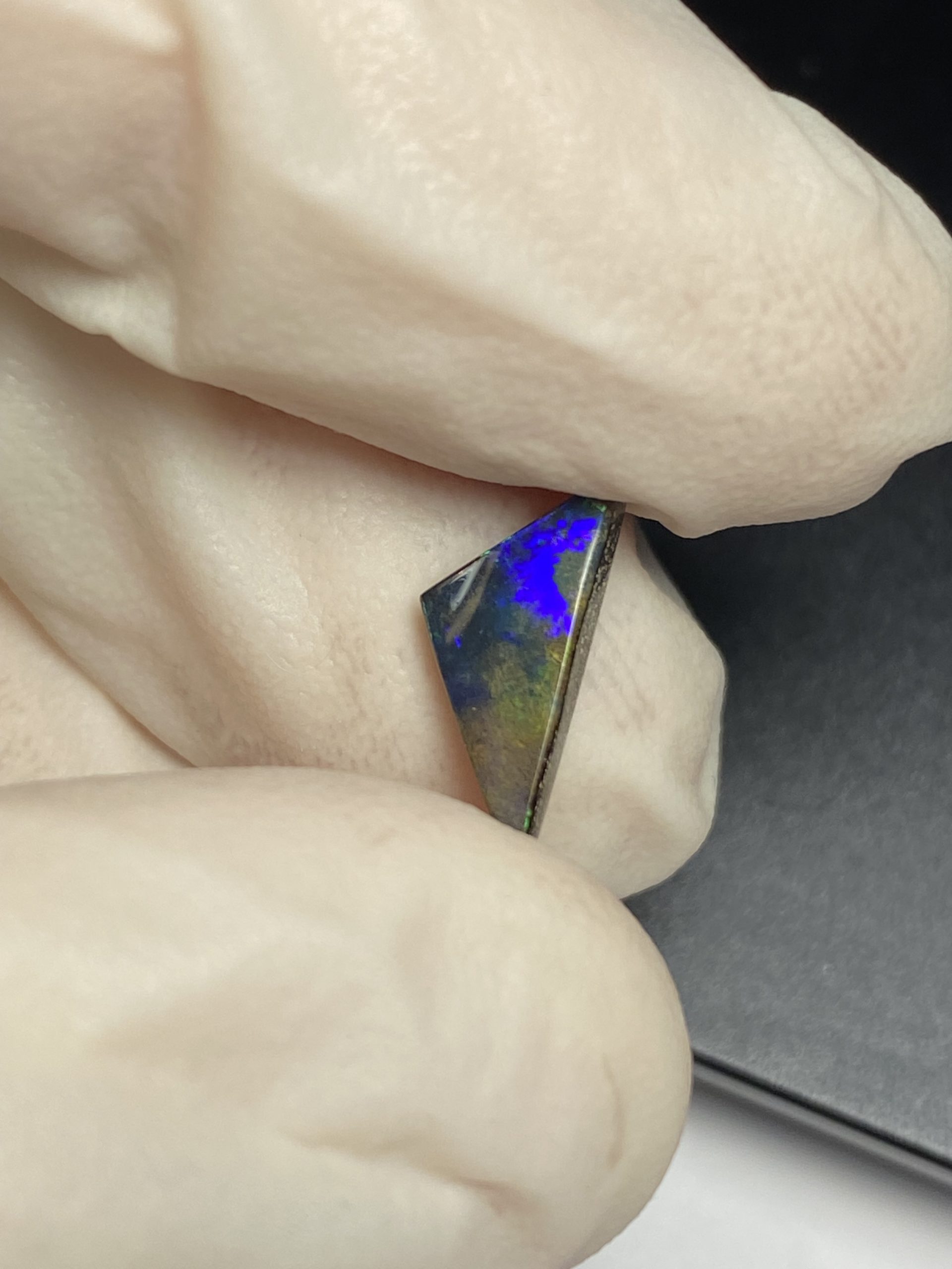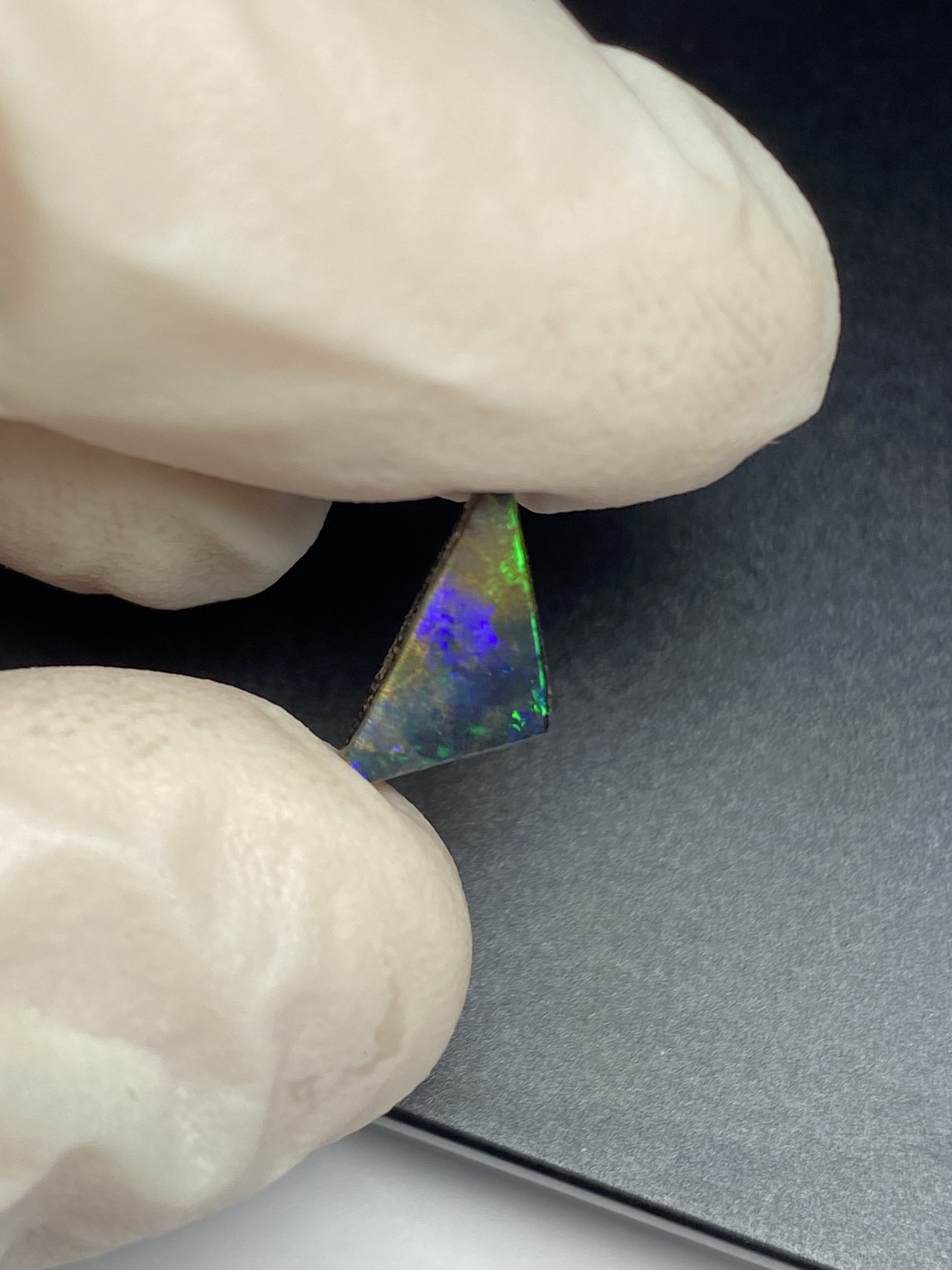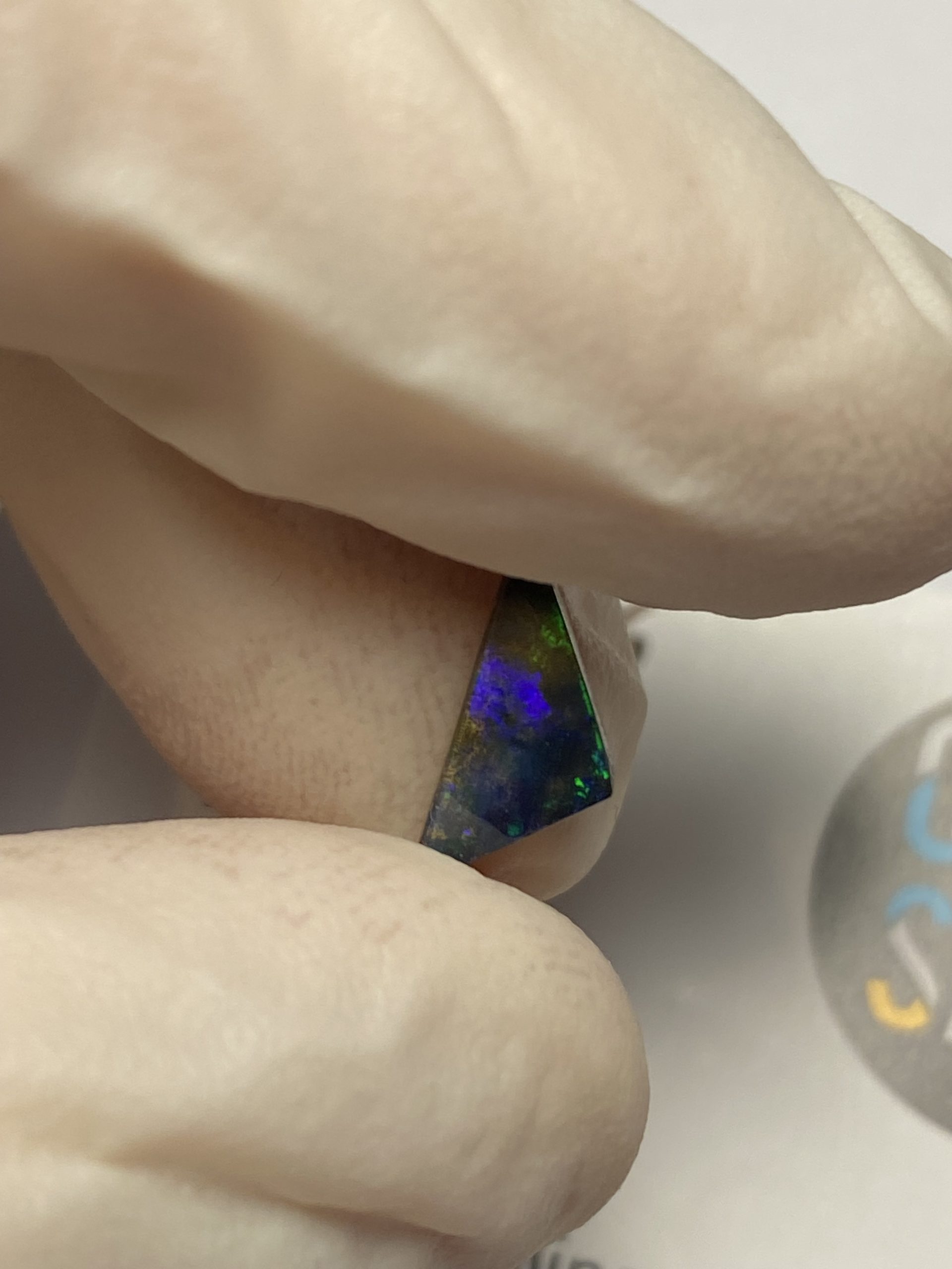 ECLAIRAGE ET COULEURS: Toutes les photos et vidéos ont été prises avec éclairage direct (sous lampe de bureau avec ampoule LED couleur « blanche froide »). Les feux de l’opale seront moins forts sans exposition au soleil ou éclairage direct. Les couleurs de l’opale varient également selon le type d’éclairage et le fond/arrière-plan. En général, le bleu sur les photos/vidéos, est plus proche du violet en réalité sous la plupart des d’éclairages.