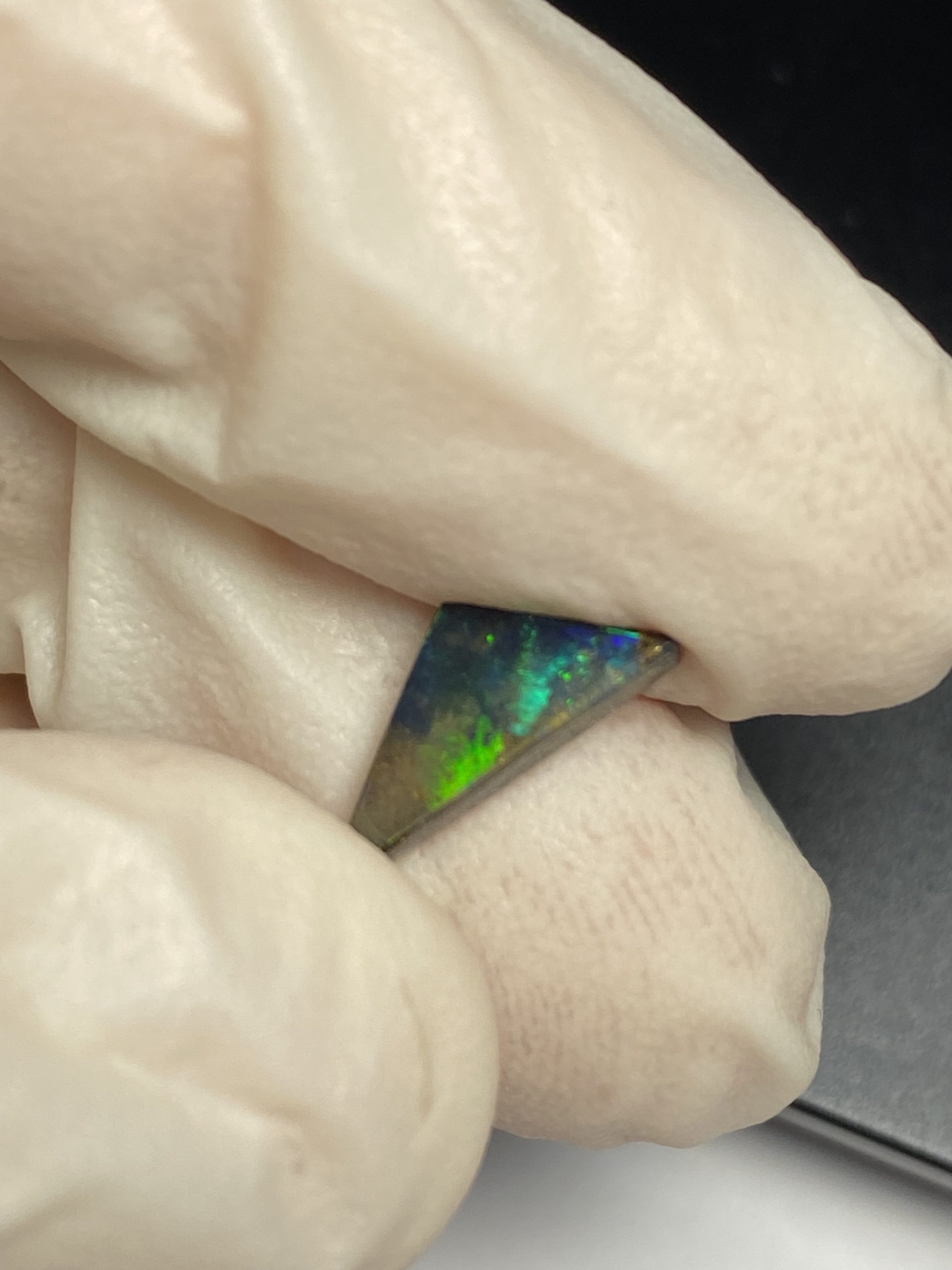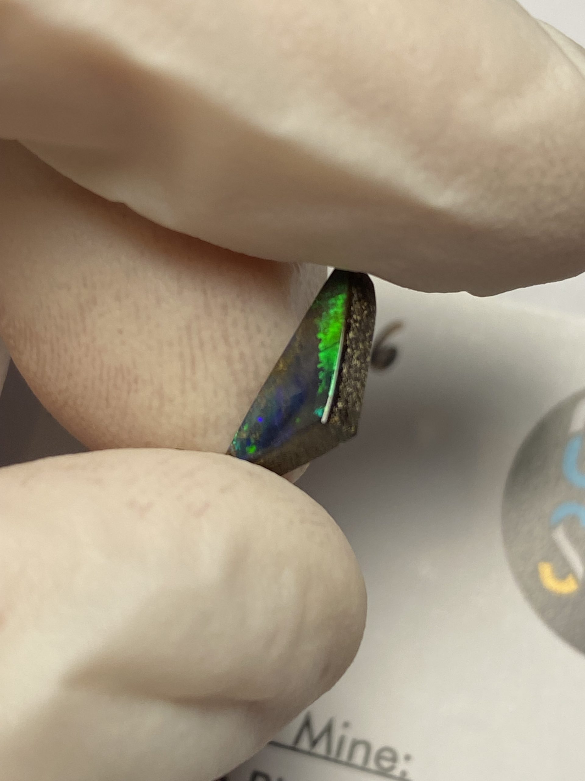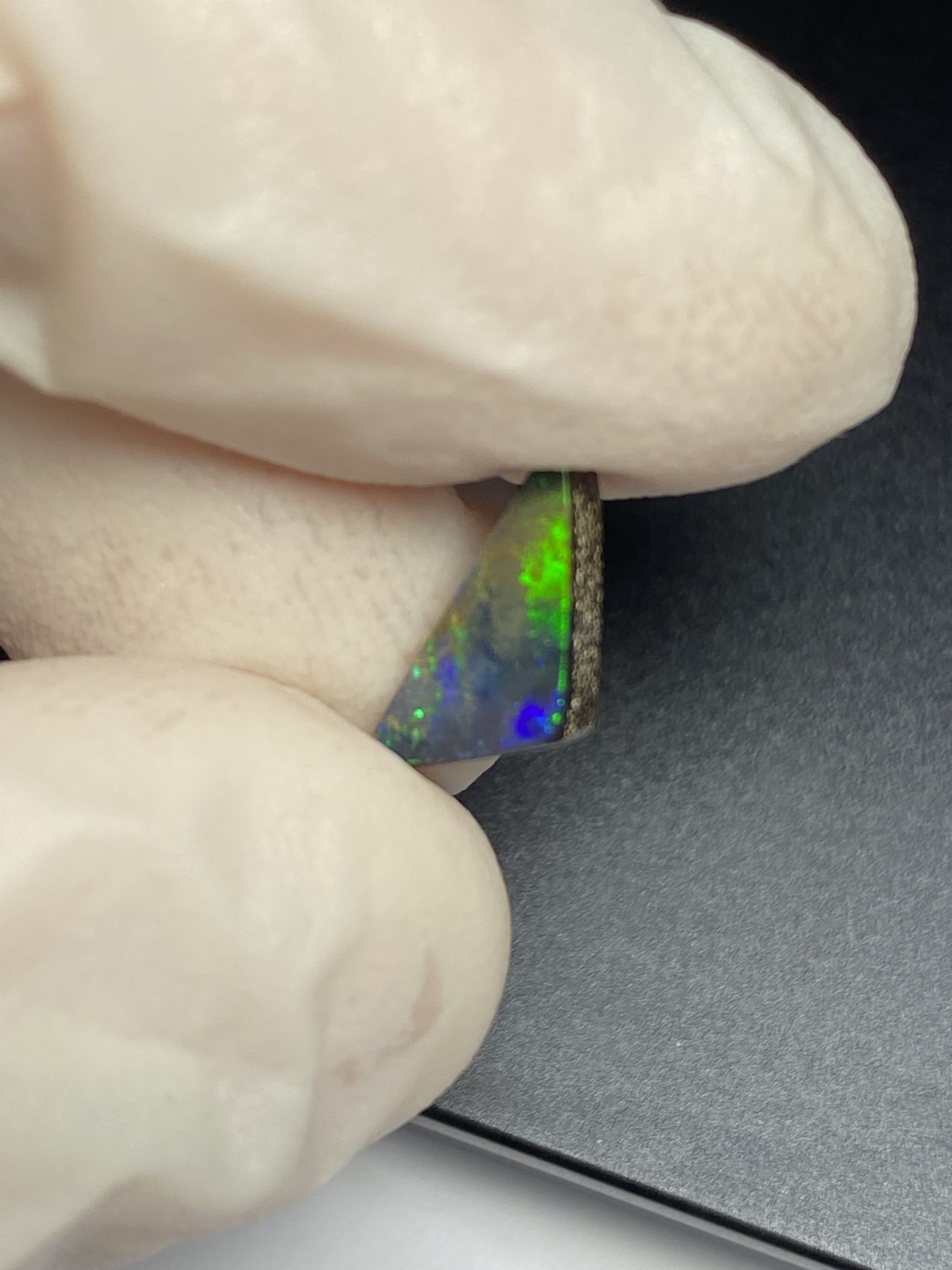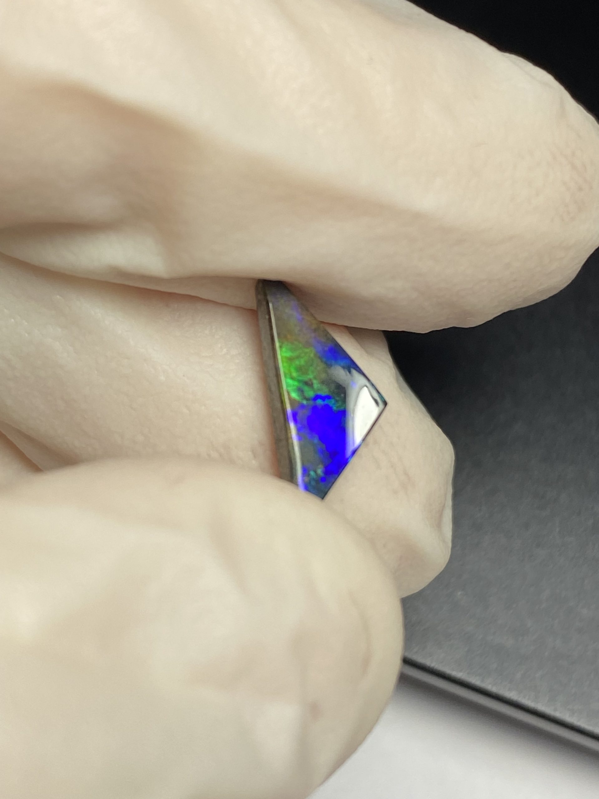 ECLAIRAGE ET COULEURS: Toutes les photos et vidéos ont été prises avec éclairage direct (sous lampe de bureau avec ampoule LED couleur « blanche froide »). Les feux de l’opale seront moins forts sans exposition au soleil ou éclairage direct. Les couleurs de l’opale varient également selon le type d’éclairage et le fond/arrière-plan. En général, le bleu sur les photos/vidéos, est plus proche du violet en réalité sous la plupart des d’éclairages.