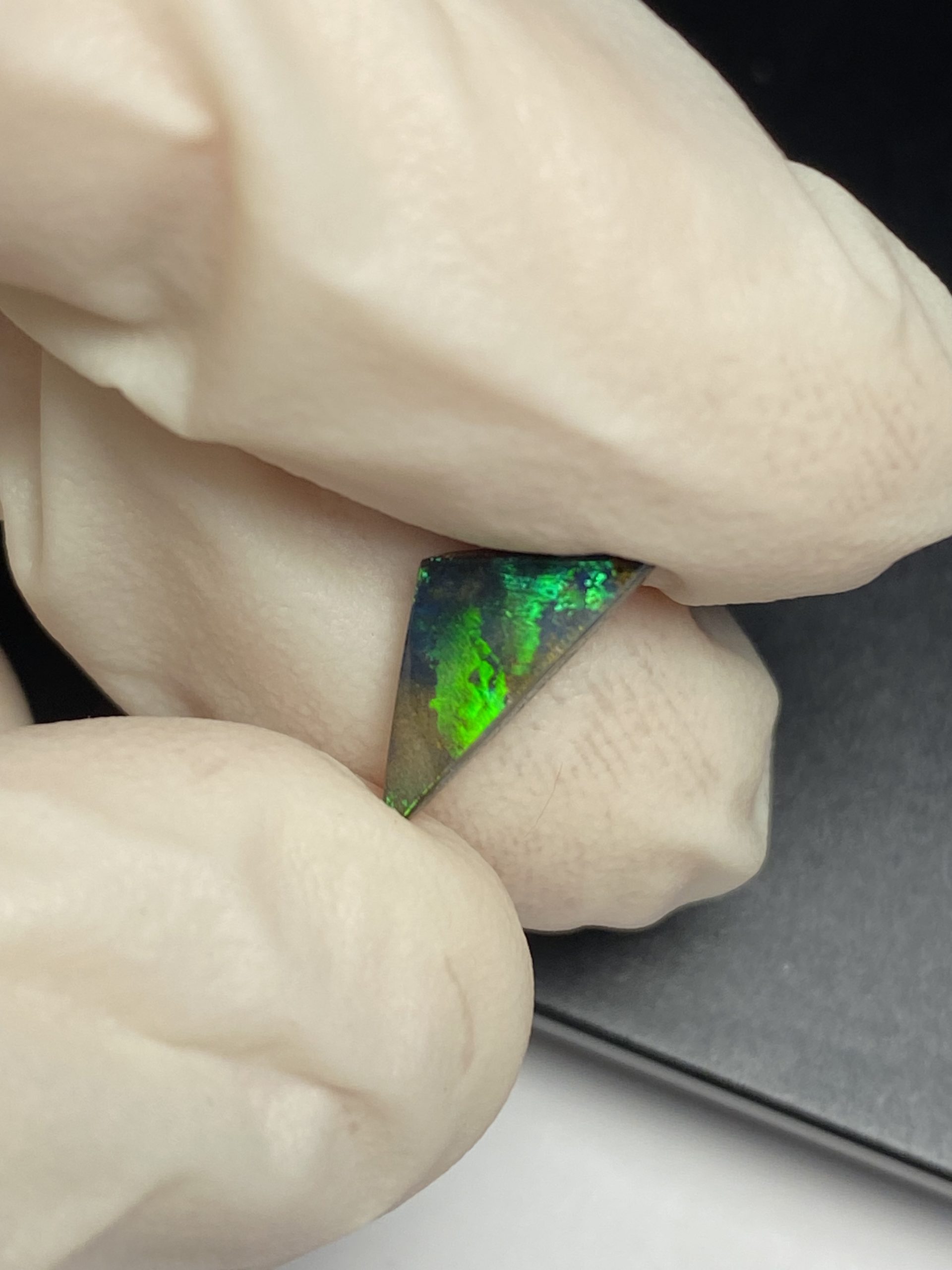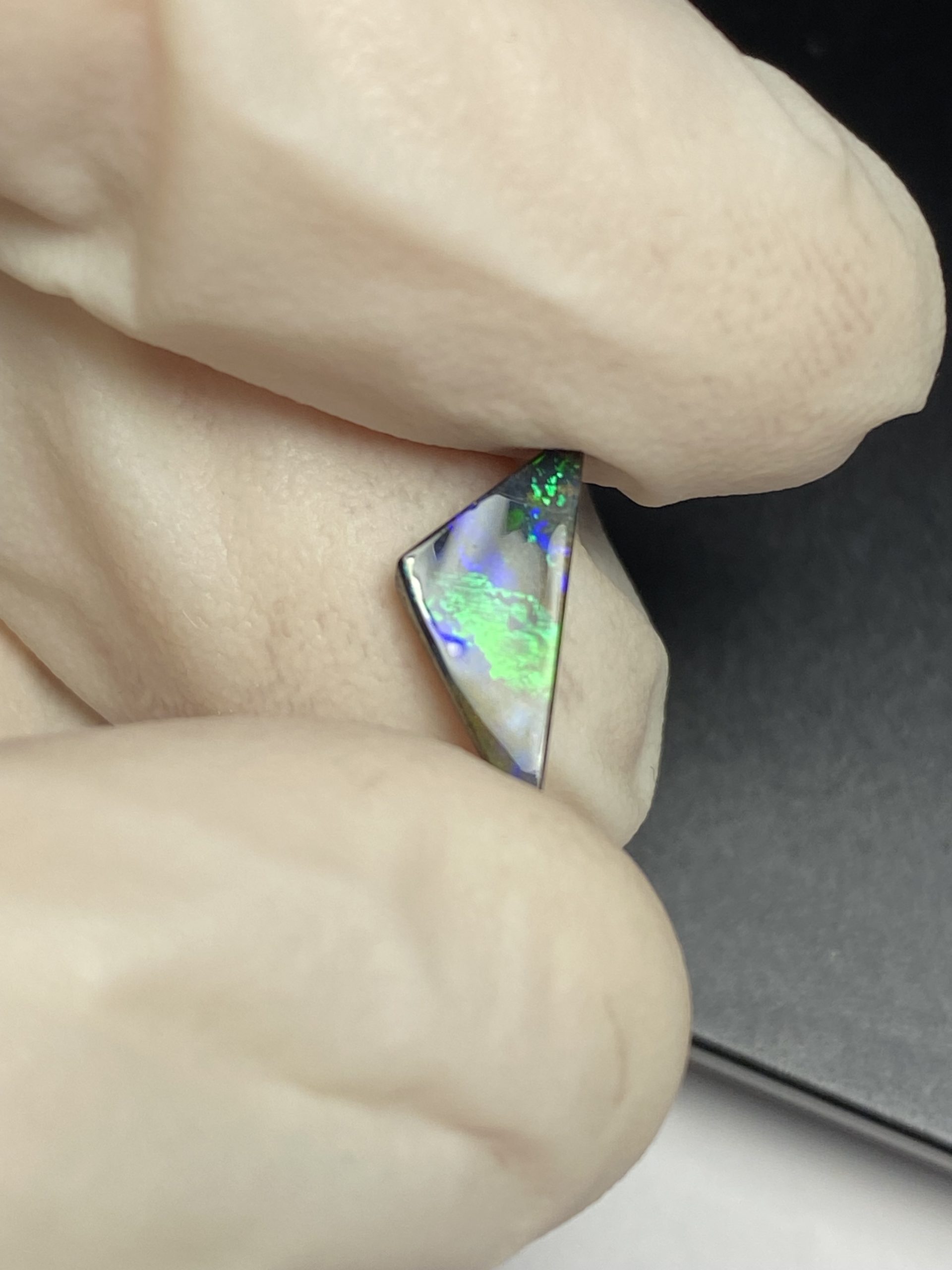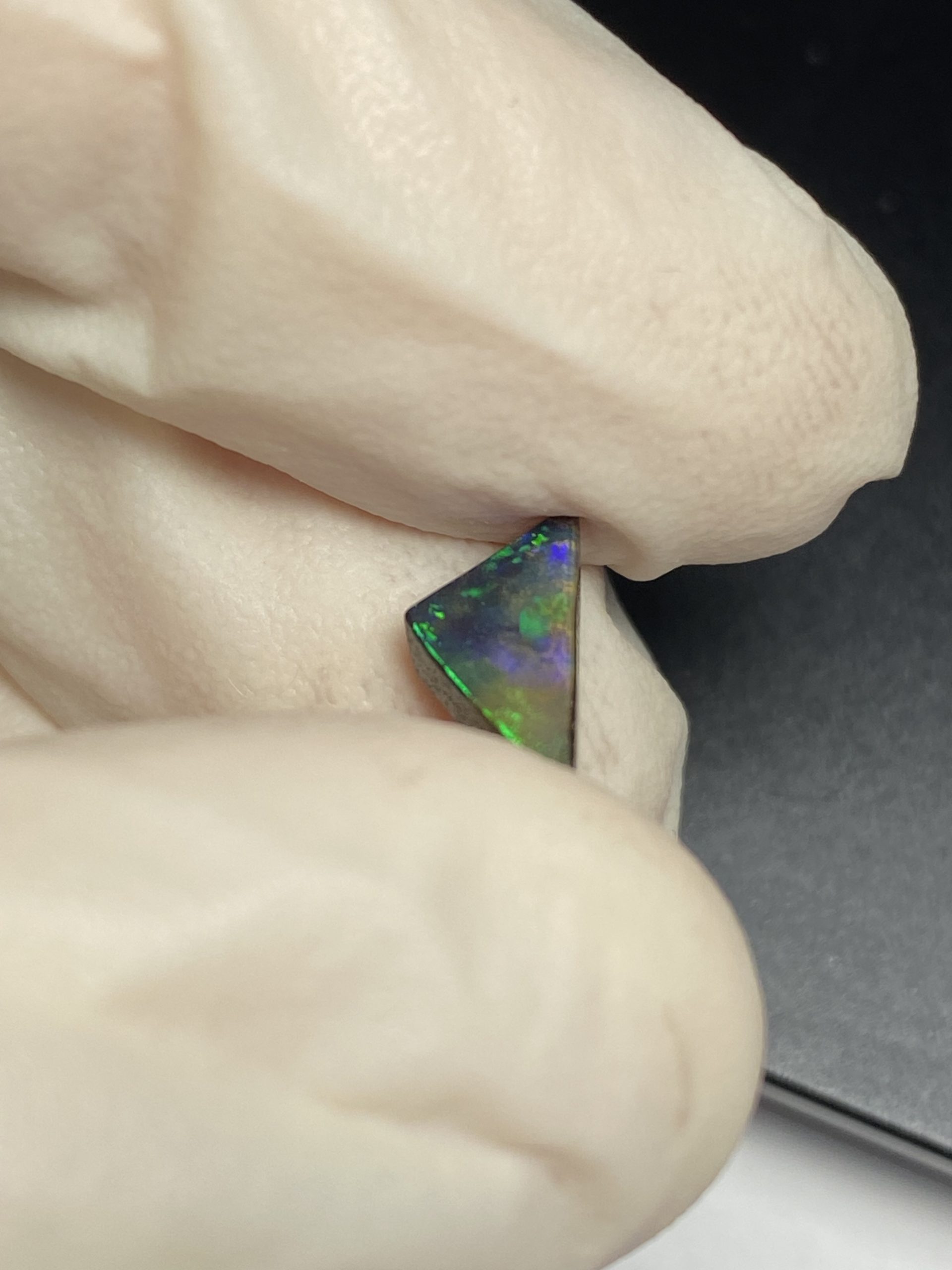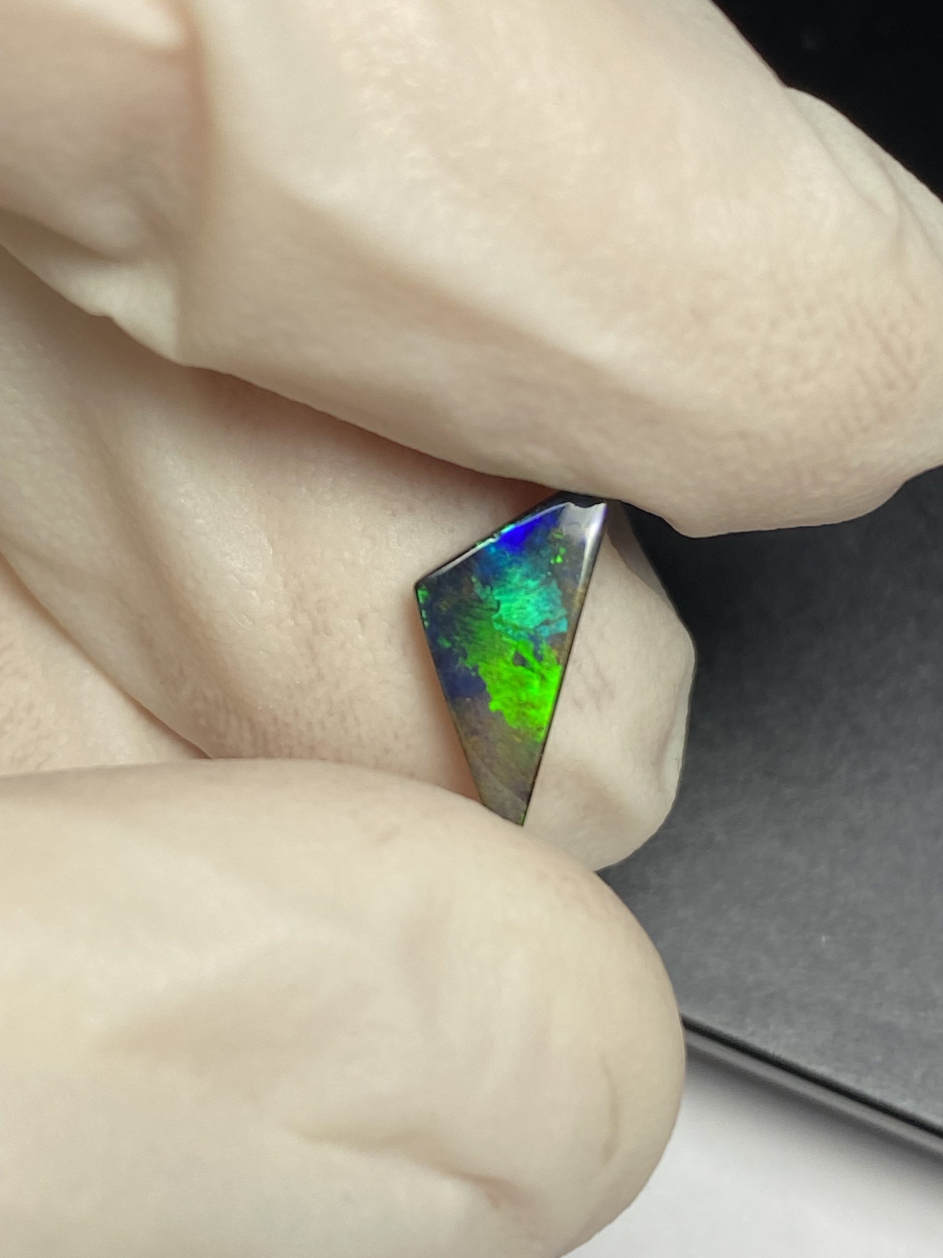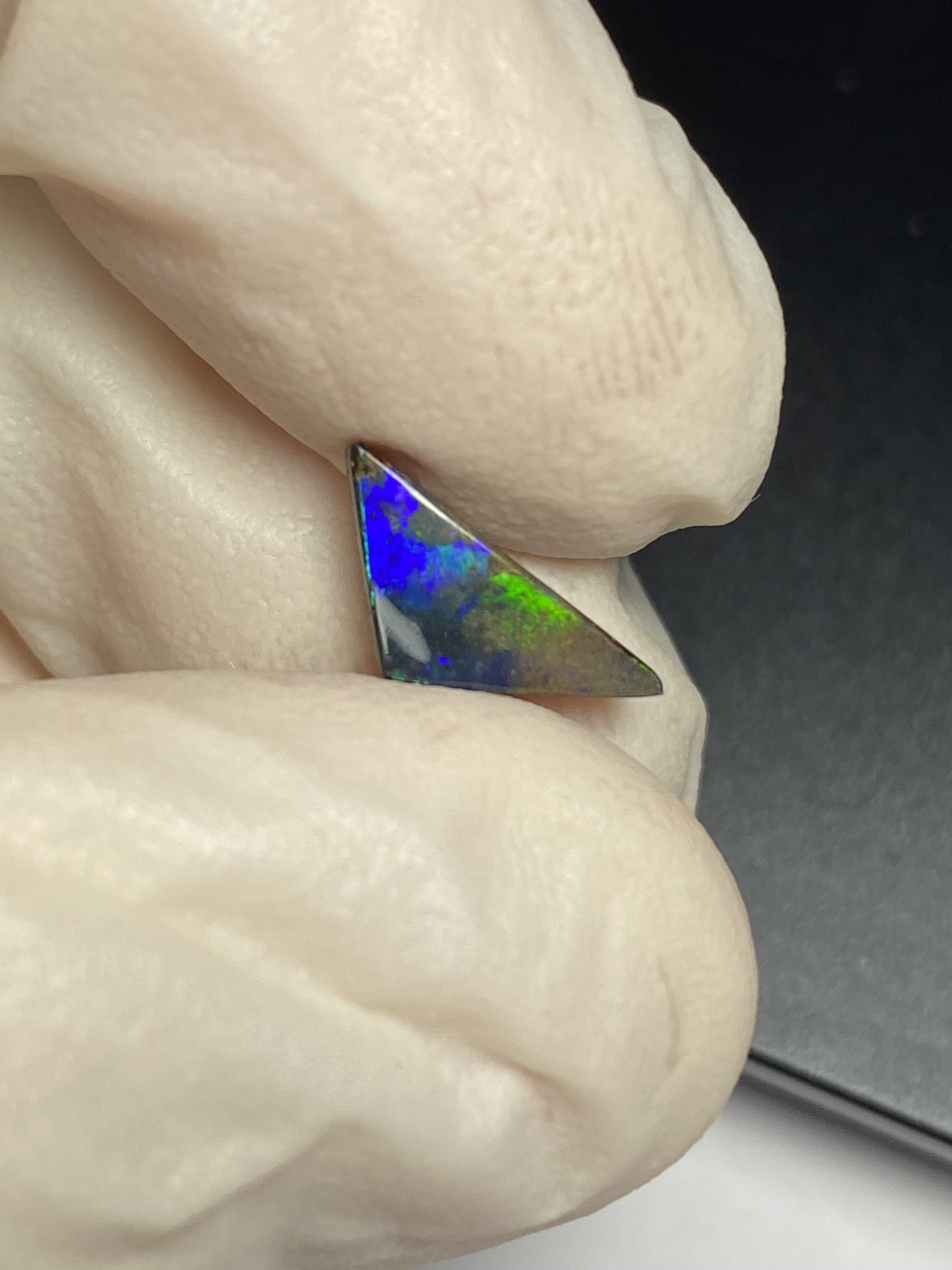 ECLAIRAGE ET COULEURS: Toutes les photos et vidéos ont été prises avec éclairage direct (sous lampe de bureau avec ampoule LED couleur « blanche froide »). Les feux de l’opale seront moins forts sans exposition au soleil ou éclairage direct. Les couleurs de l’opale varient également selon le type d’éclairage et le fond/arrière-plan. En général, le bleu sur les photos/vidéos, est plus proche du violet en réalité sous la plupart des d’éclairages.