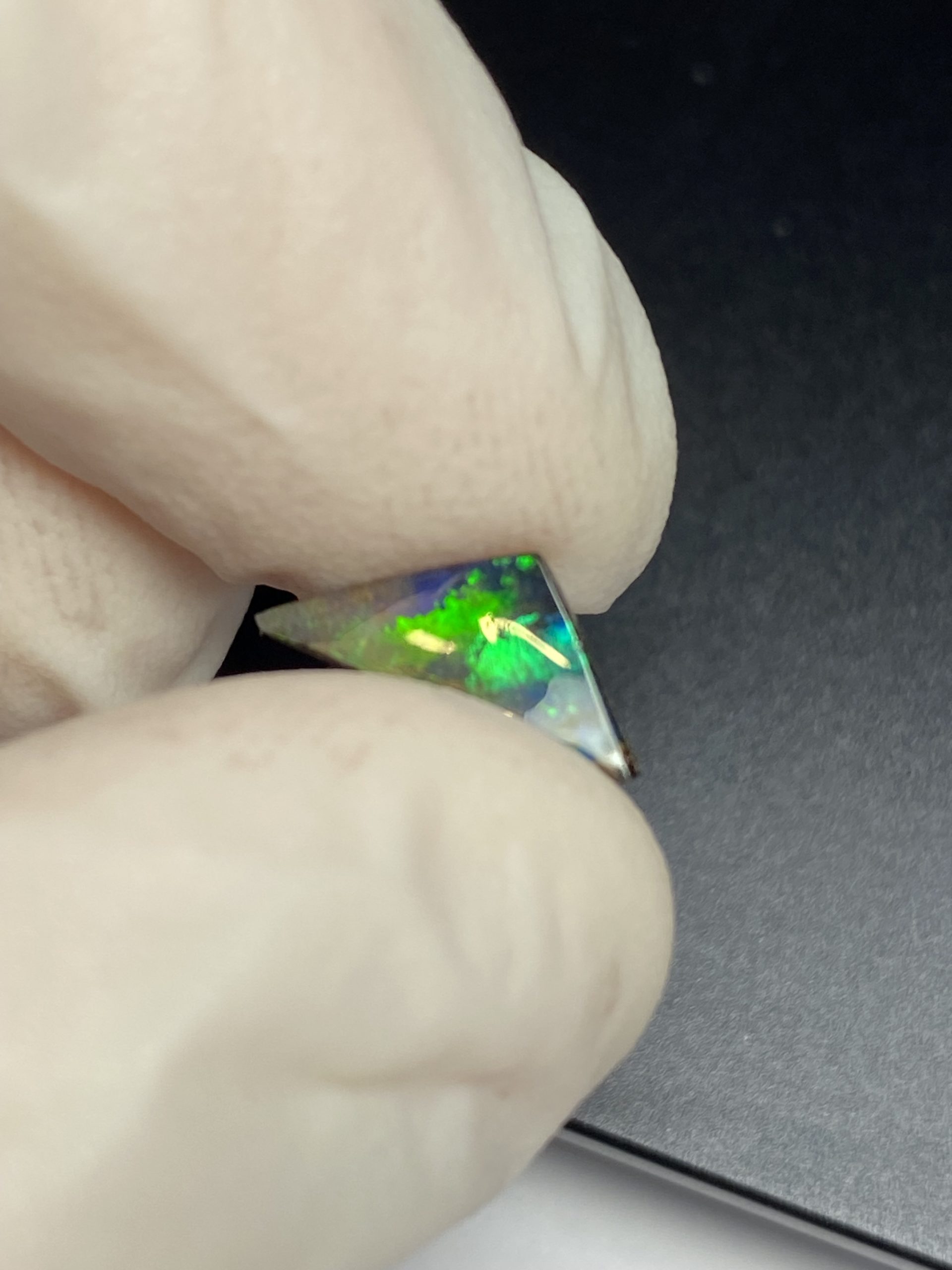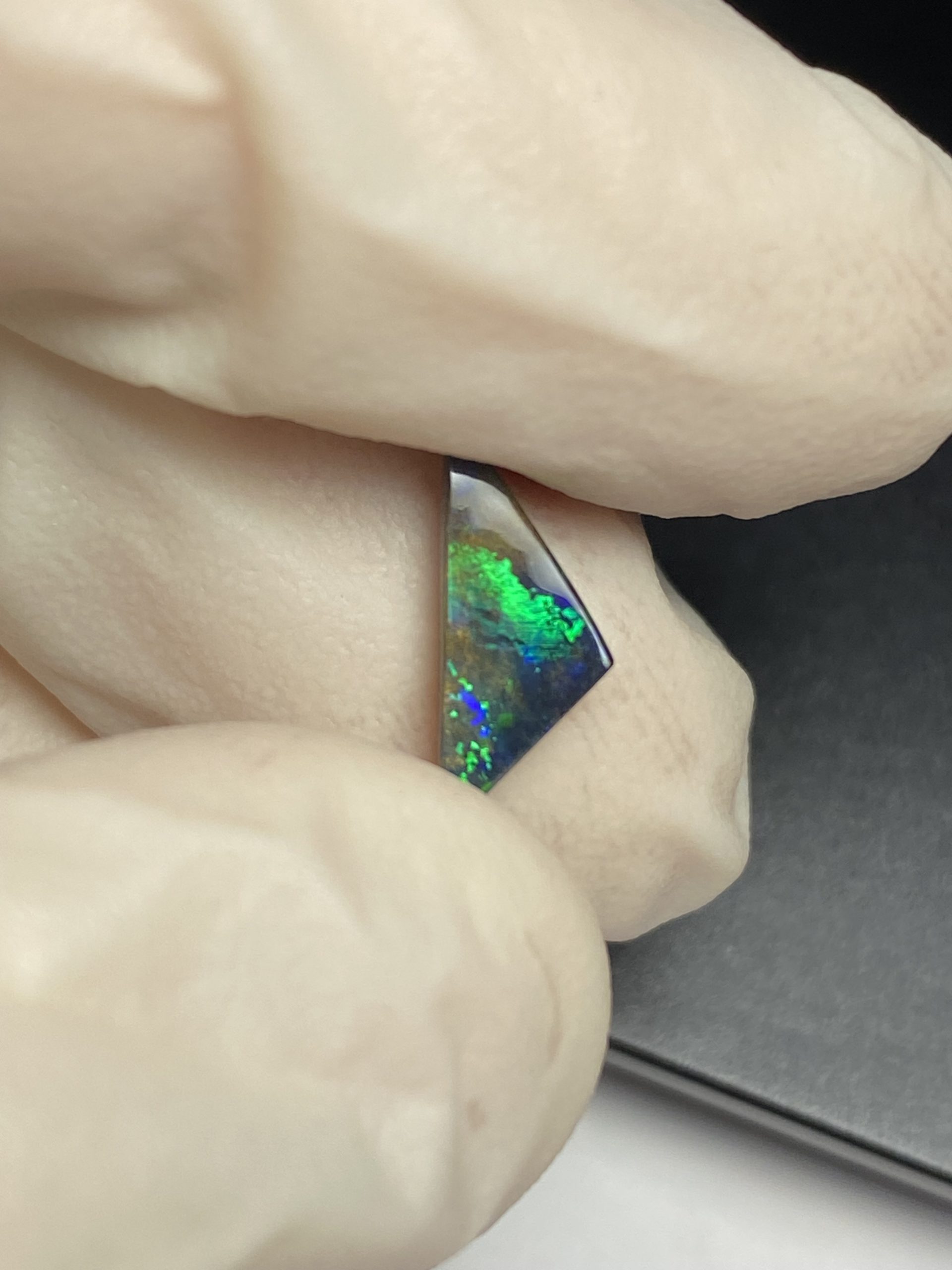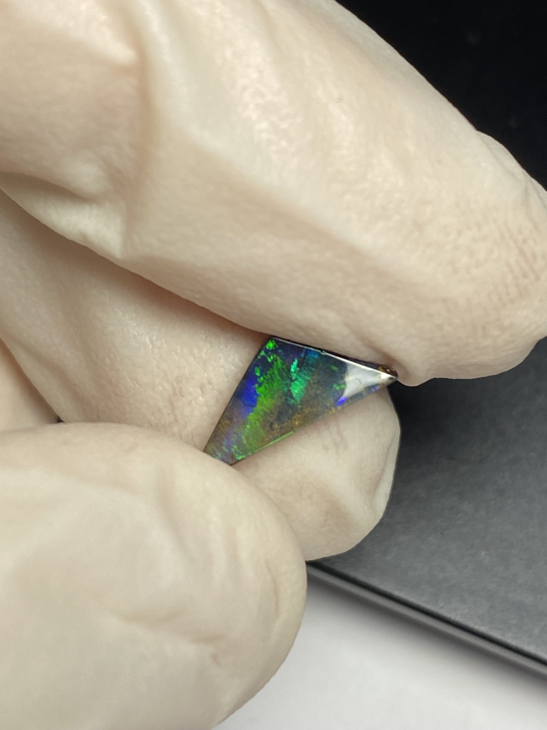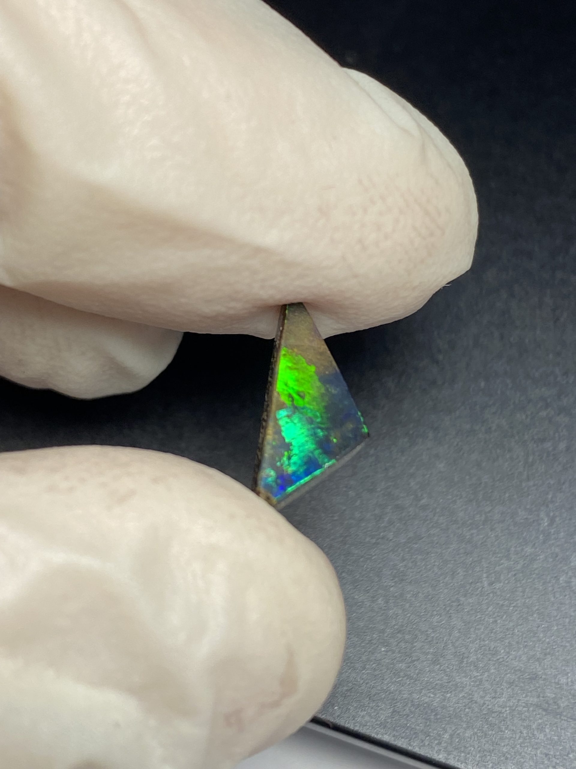 ECLAIRAGE ET COULEURS: Toutes les photos et vidéos ont été prises avec éclairage direct (sous lampe de bureau avec ampoule LED couleur « blanche froide »). Les feux de l’opale seront moins forts sans exposition au soleil ou éclairage direct. Les couleurs de l’opale varient également selon le type d’éclairage et le fond/arrière-plan. En général, le bleu sur les photos/vidéos, est plus proche du violet en réalité sous la plupart des d’éclairages.