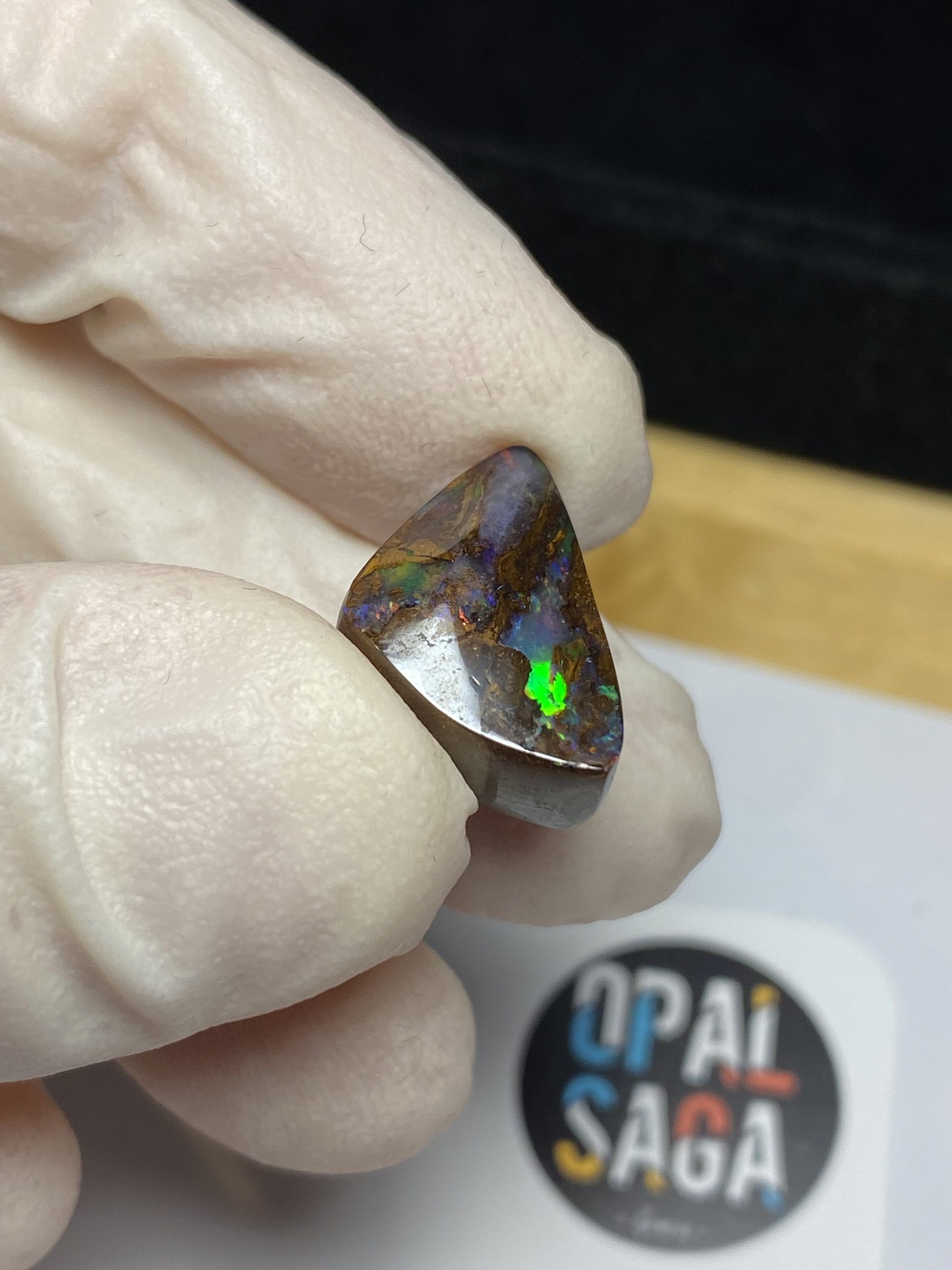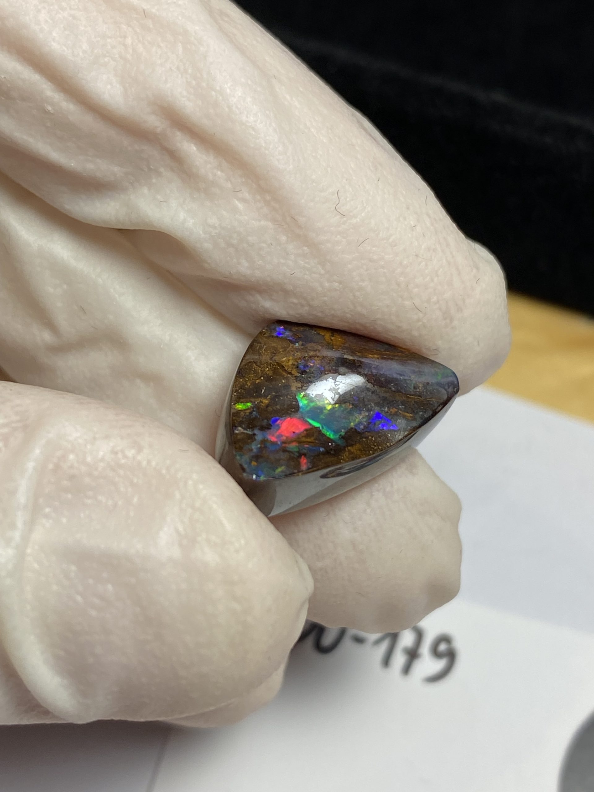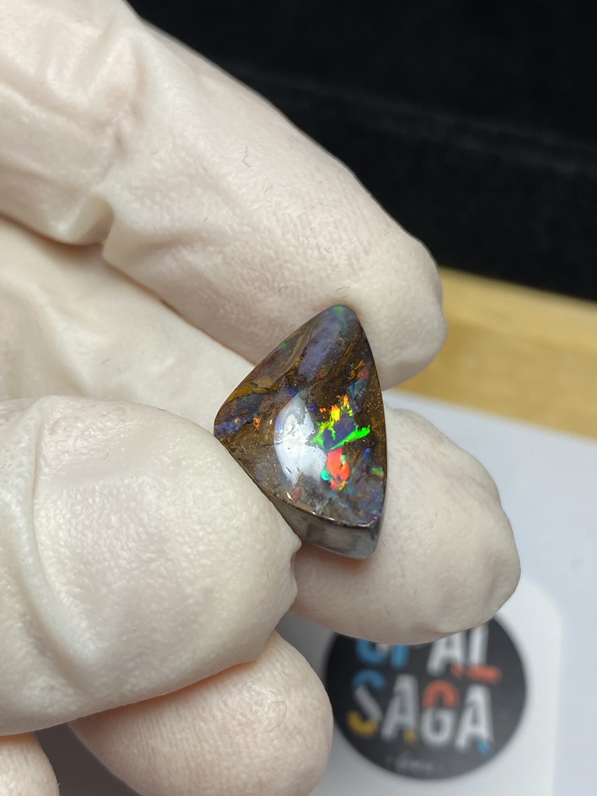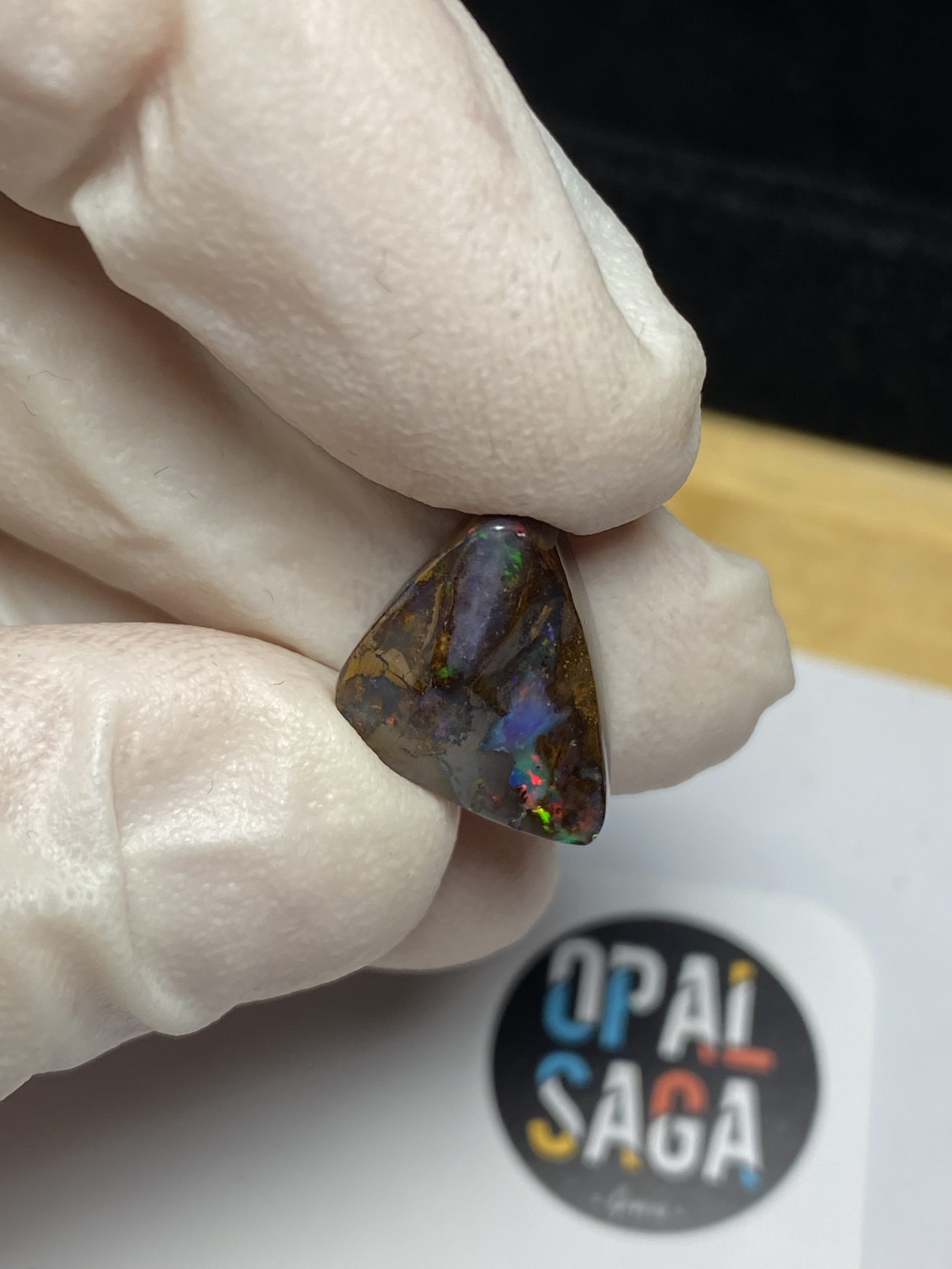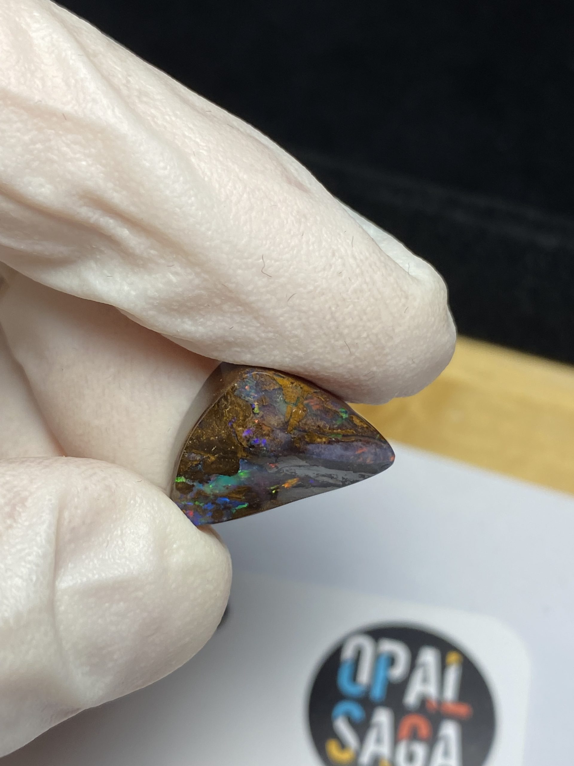 ECLAIRAGE ET COULEURS: Toutes les photos et vidéos ont été prises avec éclairage direct (sous lampe de bureau avec ampoule LED couleur « blanche froide »). Les feux de l’opale seront moins forts sans exposition au soleil ou éclairage direct. Les couleurs de l’opale varient également selon le type d’éclairage et le fond/arrière-plan. En général, le bleu sur les photos/vidéos, est plus proche du violet en réalité sous la plupart des d’éclairages.