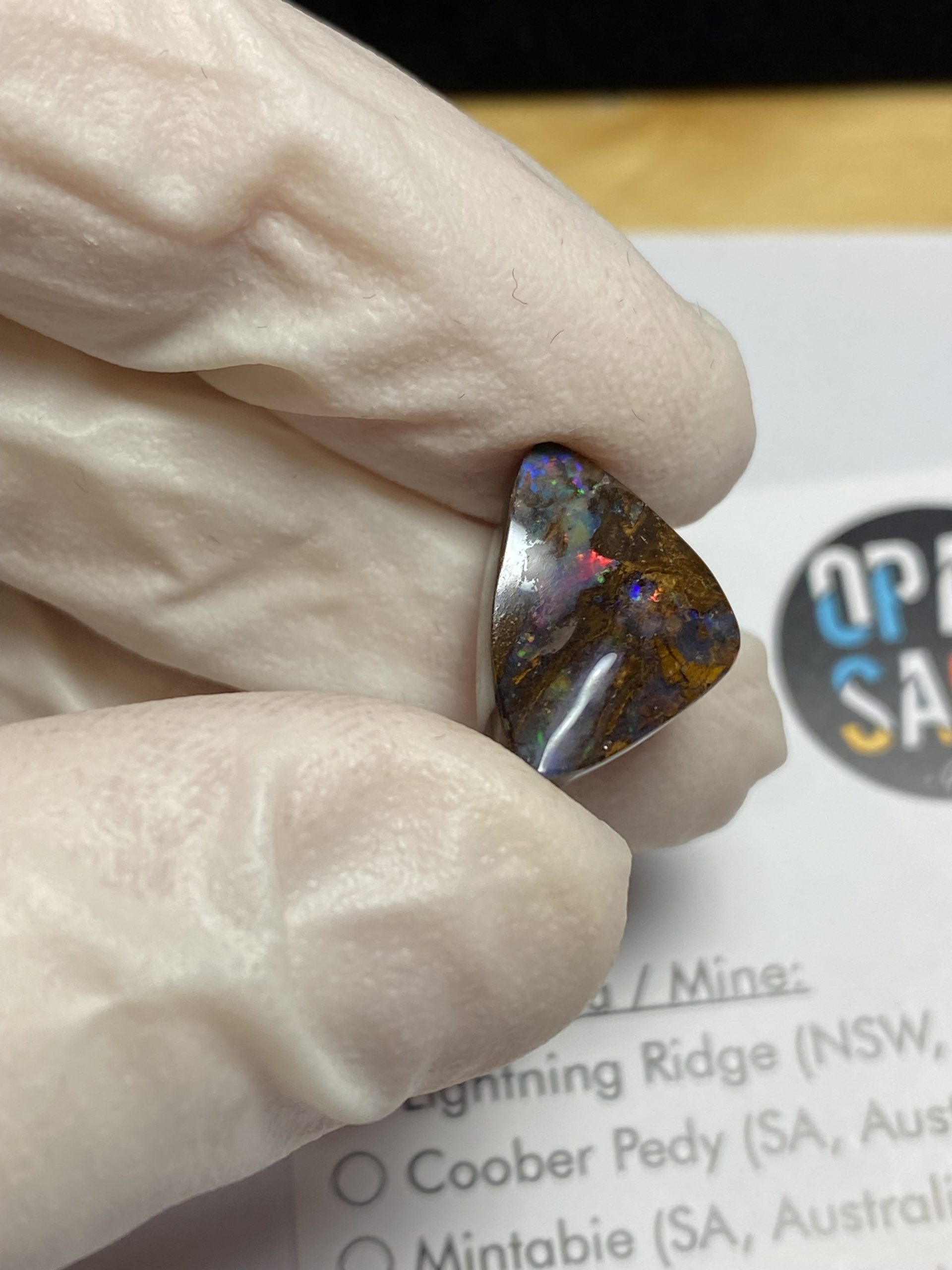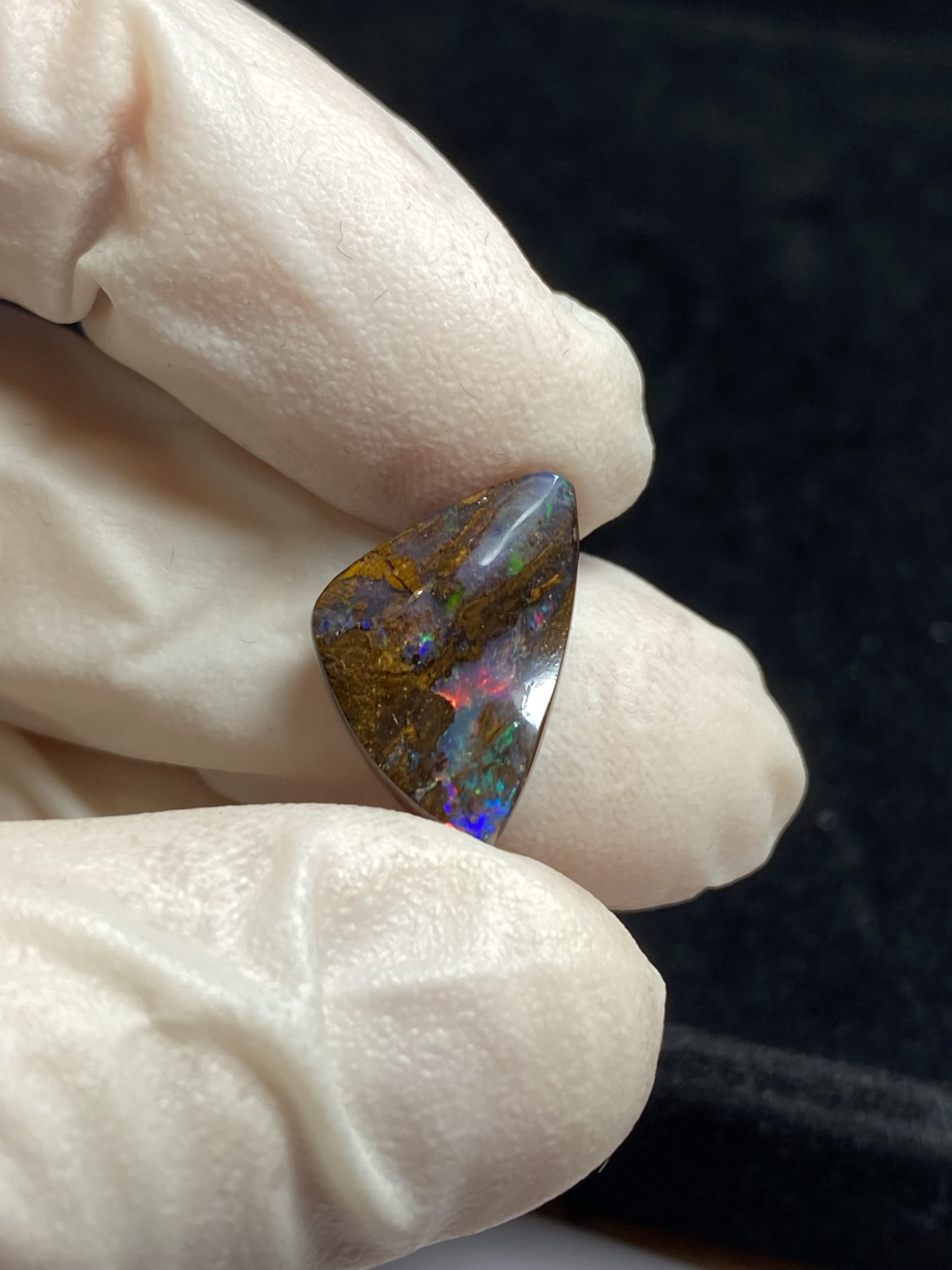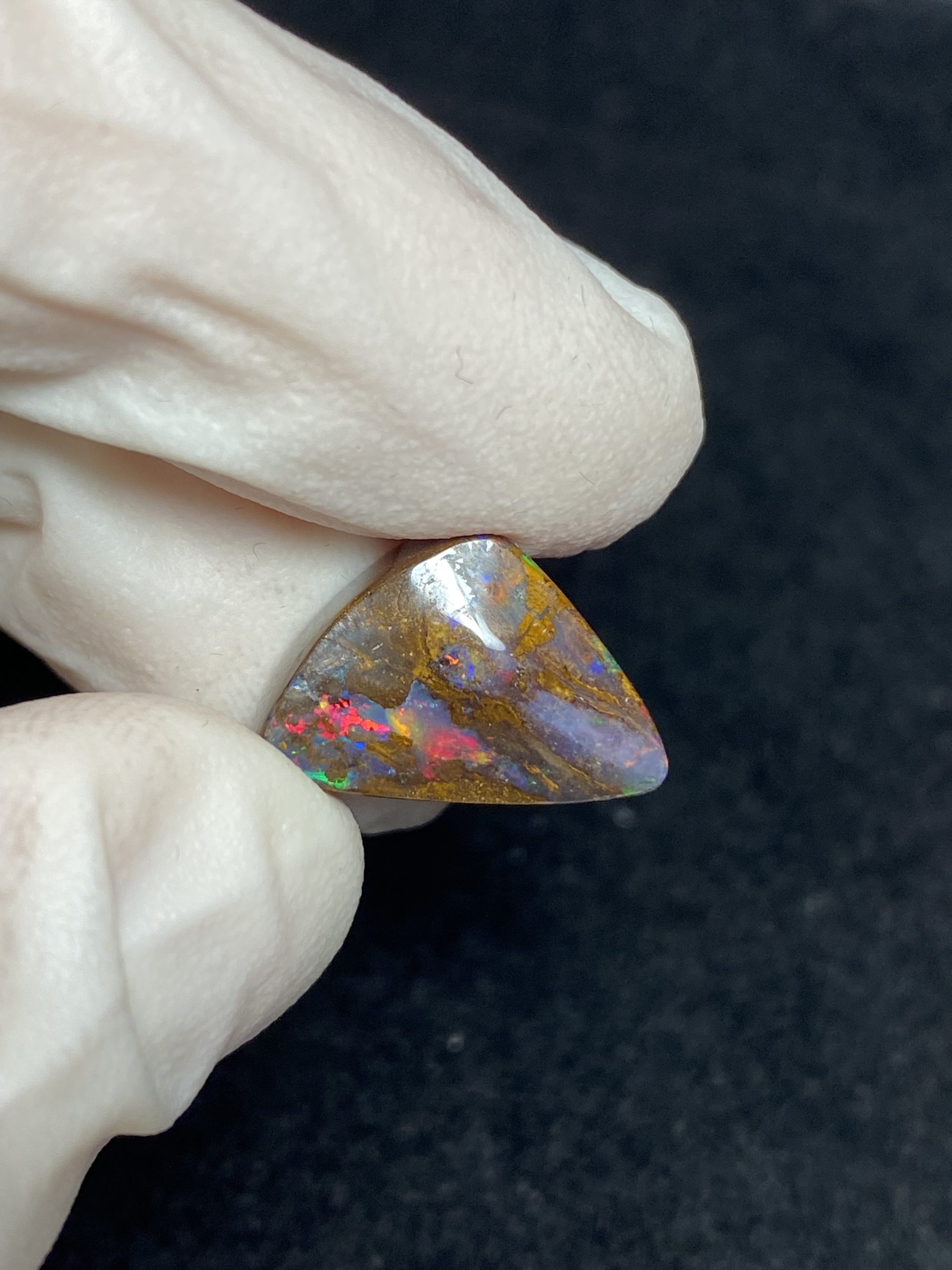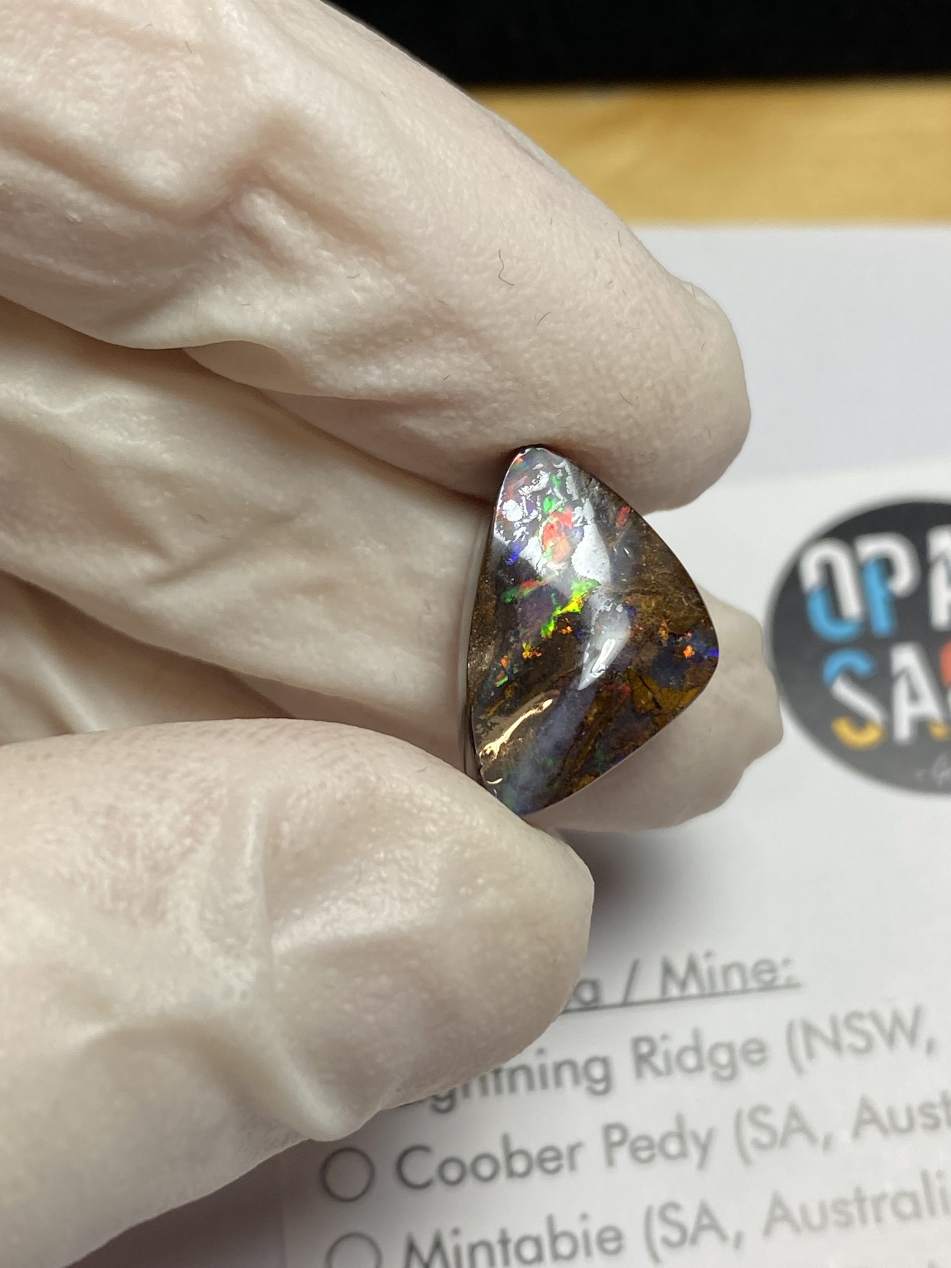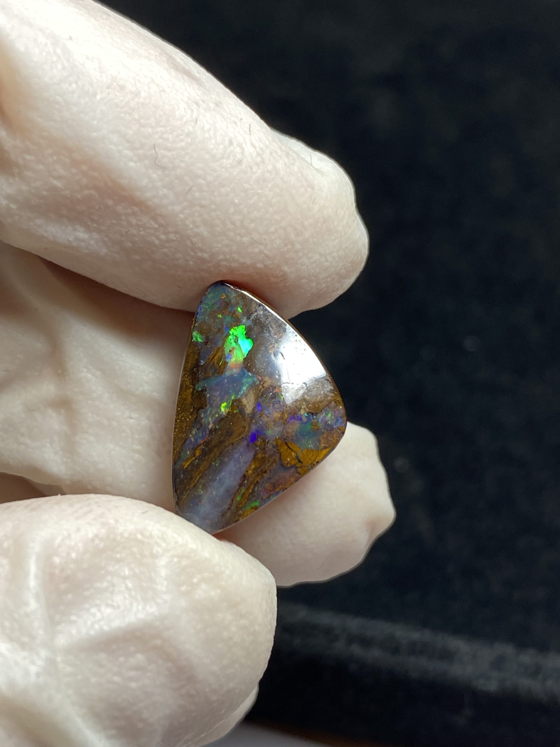 ECLAIRAGE ET COULEURS: Toutes les photos et vidéos ont été prises avec éclairage direct (sous lampe de bureau avec ampoule LED couleur « blanche froide »). Les feux de l’opale seront moins forts sans exposition au soleil ou éclairage direct. Les couleurs de l’opale varient également selon le type d’éclairage et le fond/arrière-plan. En général, le bleu sur les photos/vidéos, est plus proche du violet en réalité sous la plupart des d’éclairages.