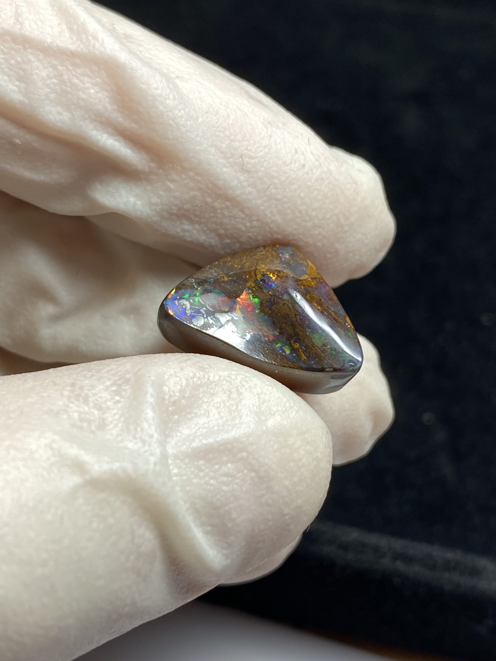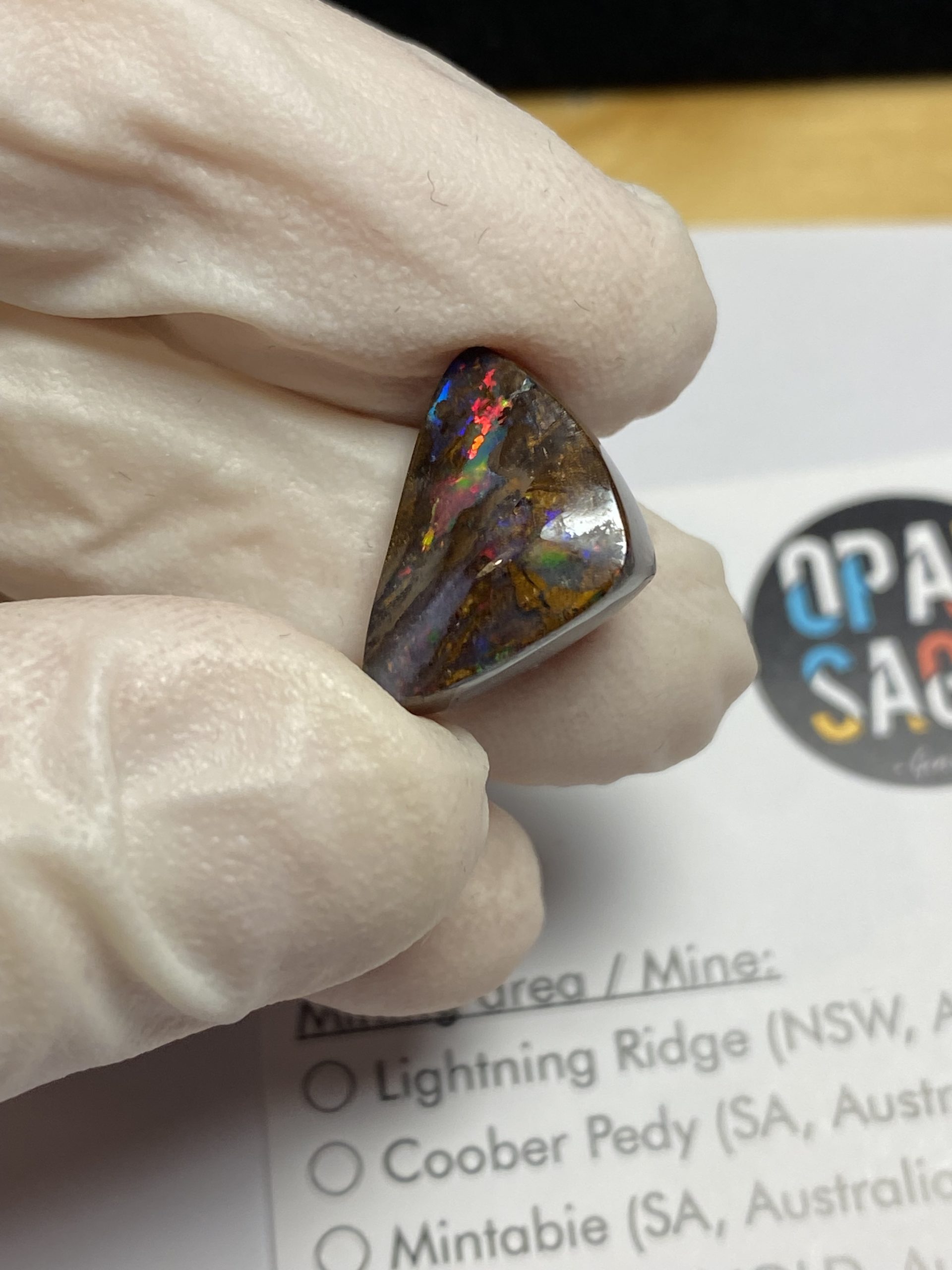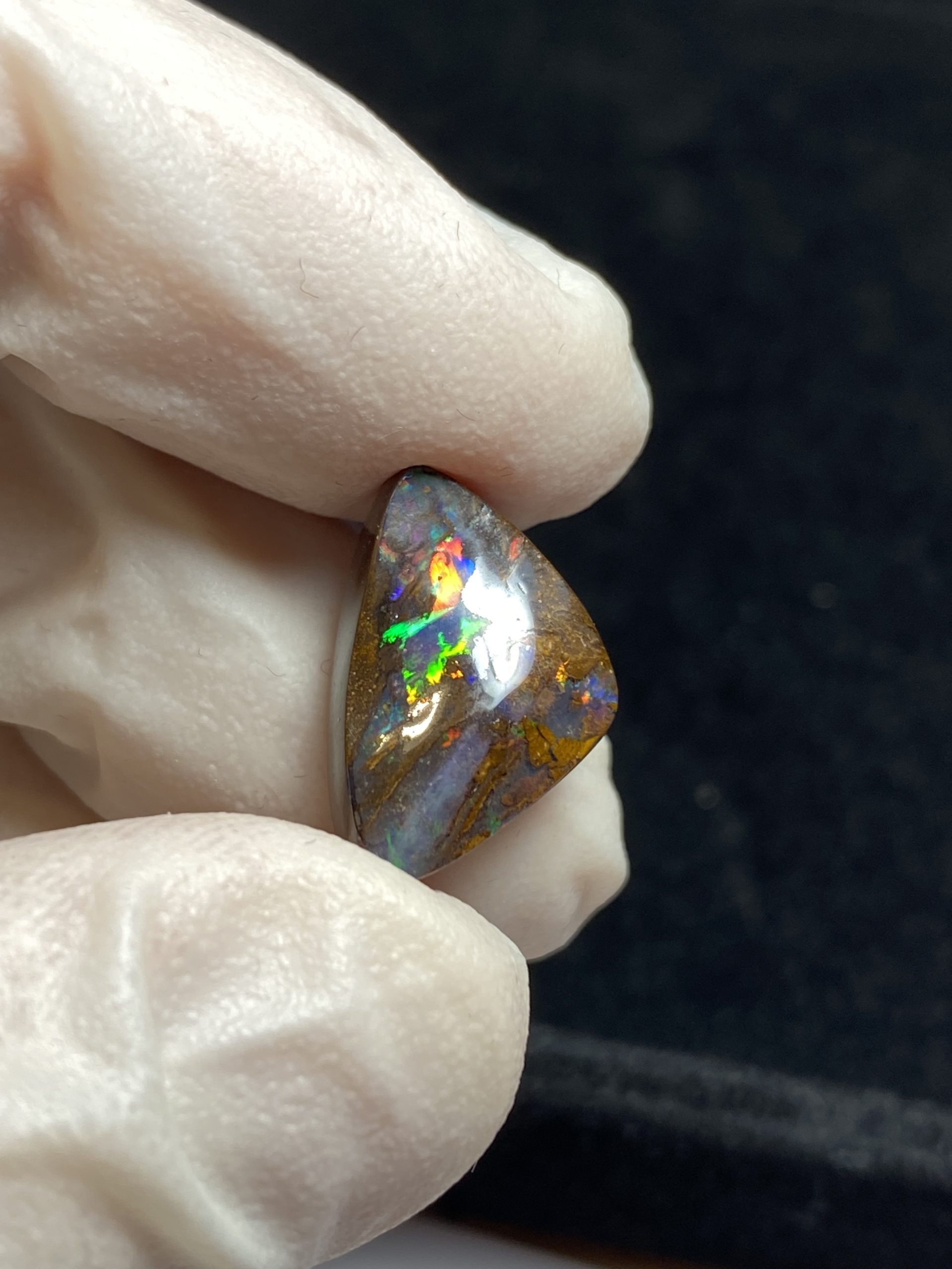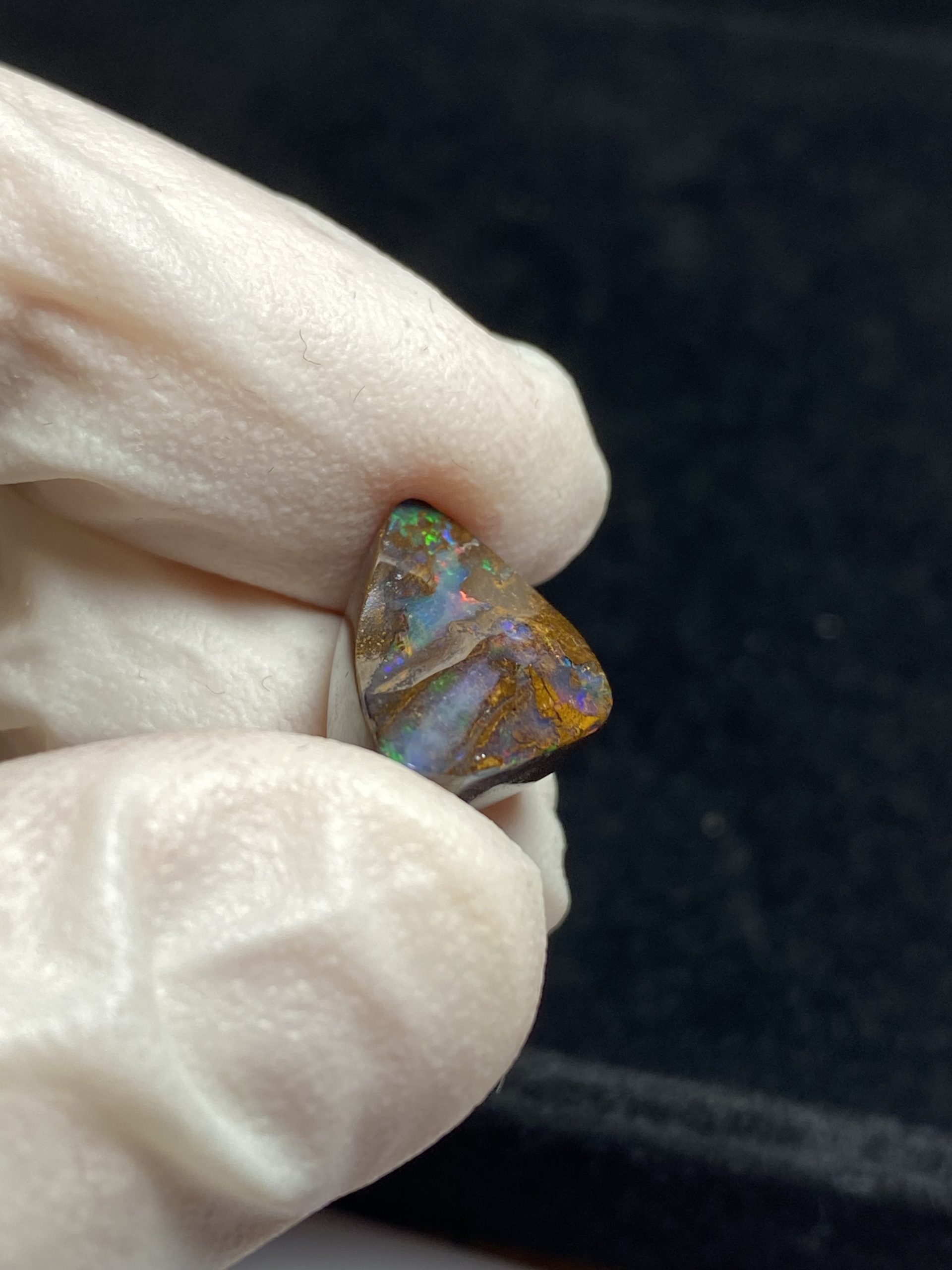 ECLAIRAGE ET COULEURS: Toutes les photos et vidéos ont été prises avec éclairage direct (sous lampe de bureau avec ampoule LED couleur « blanche froide »). Les feux de l’opale seront moins forts sans exposition au soleil ou éclairage direct. Les couleurs de l’opale varient également selon le type d’éclairage et le fond/arrière-plan. En général, le bleu sur les photos/vidéos, est plus proche du violet en réalité sous la plupart des d’éclairages.