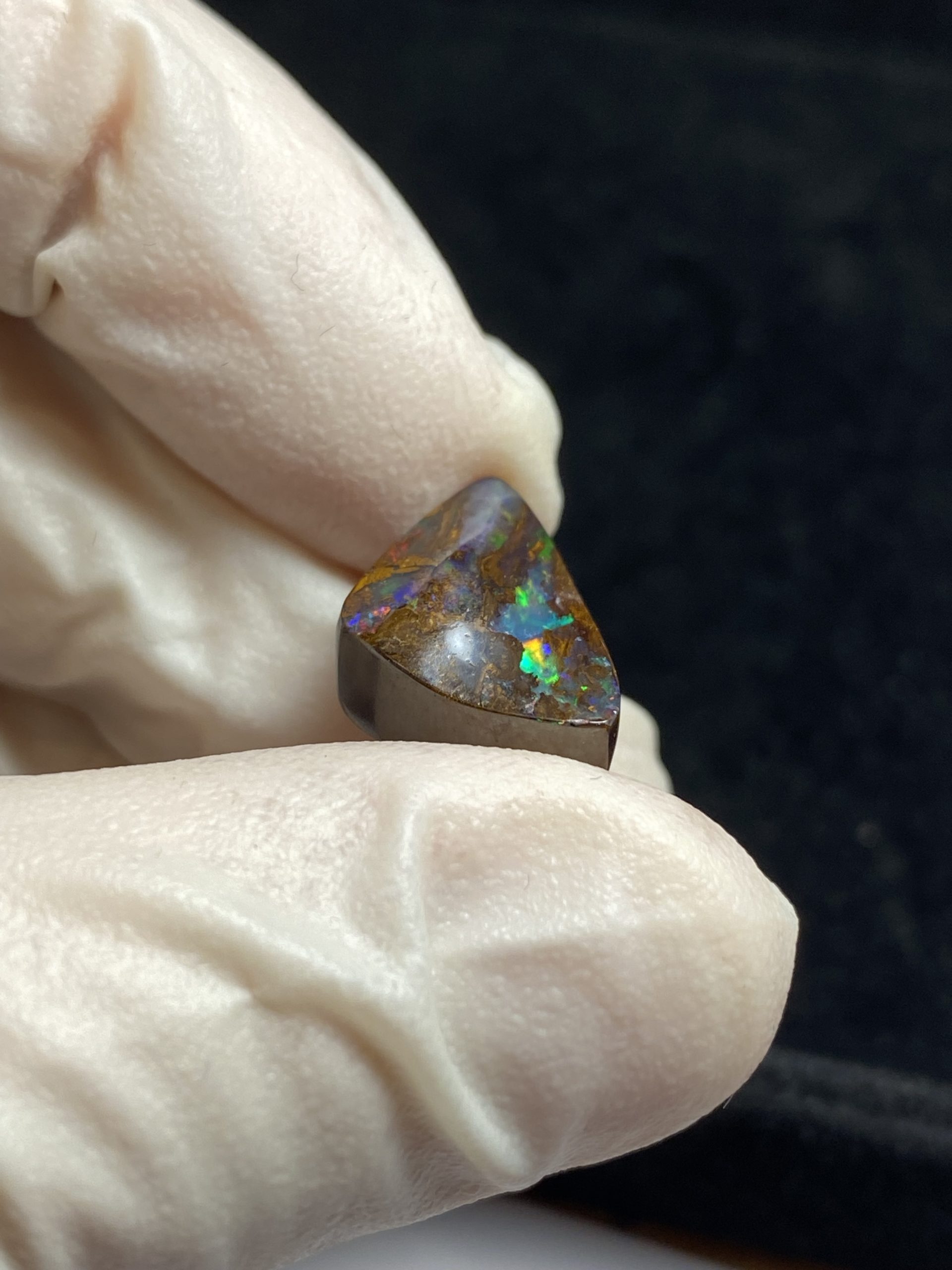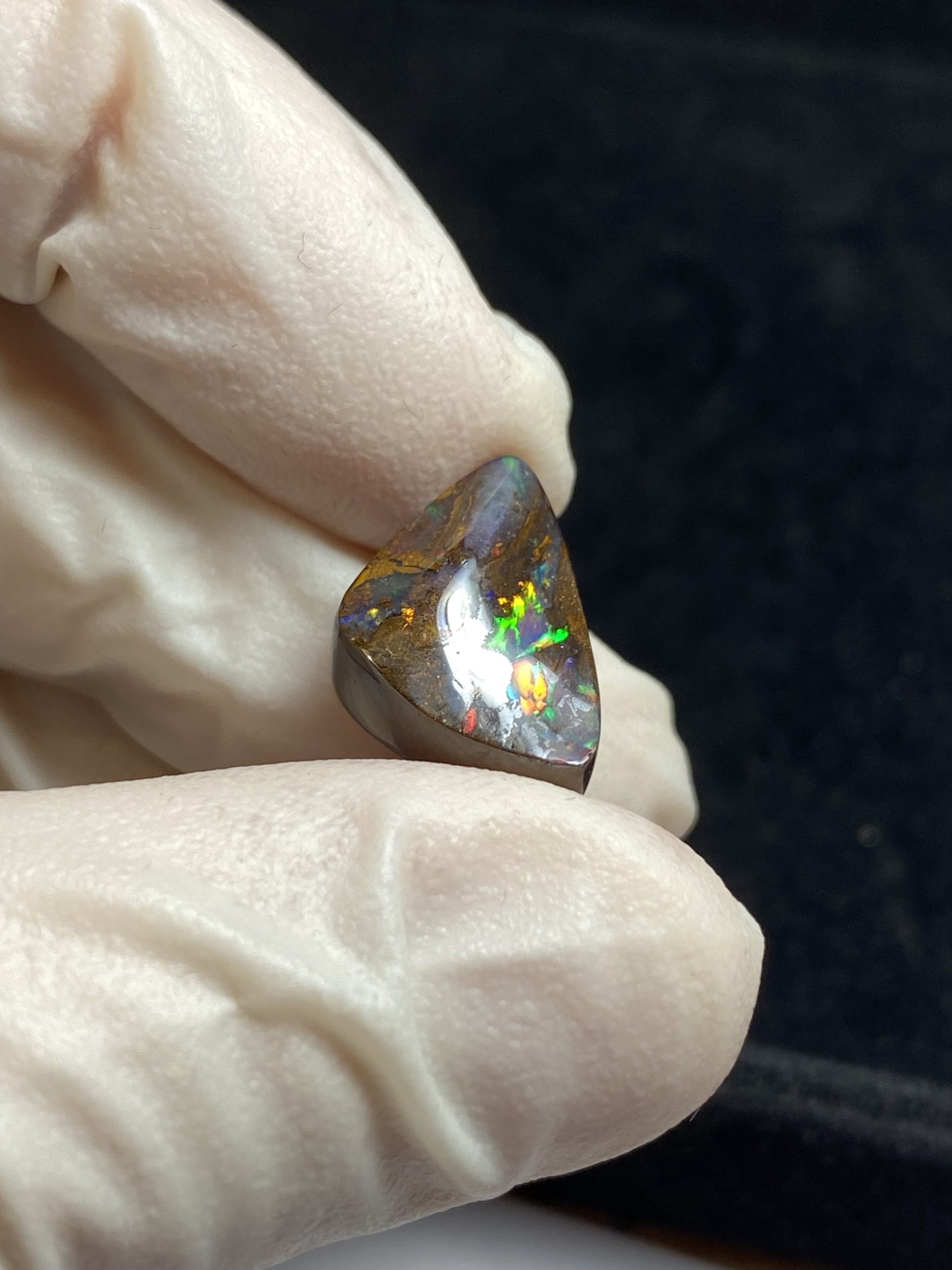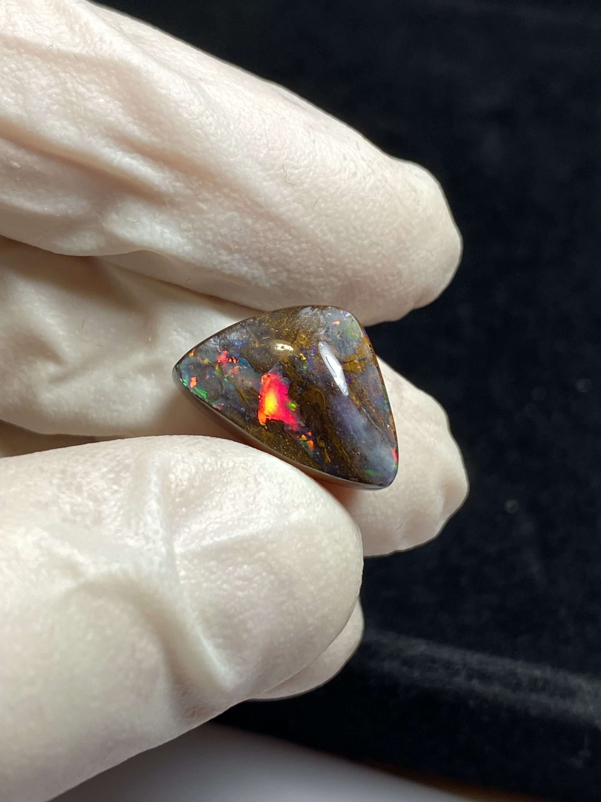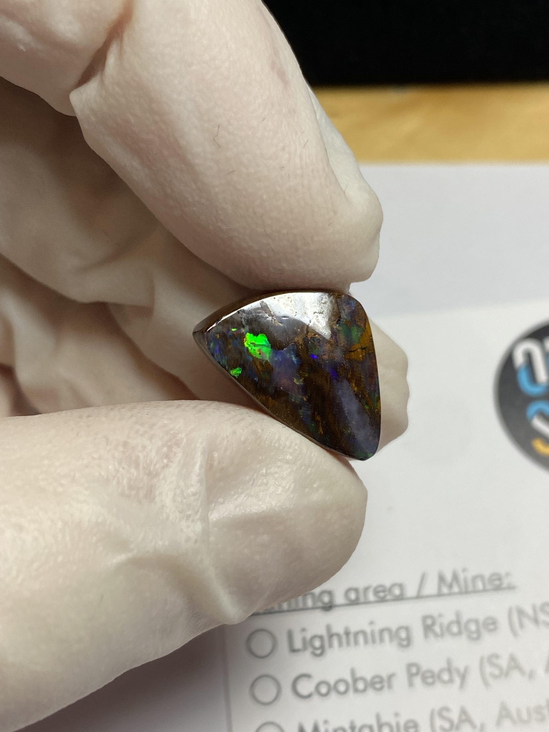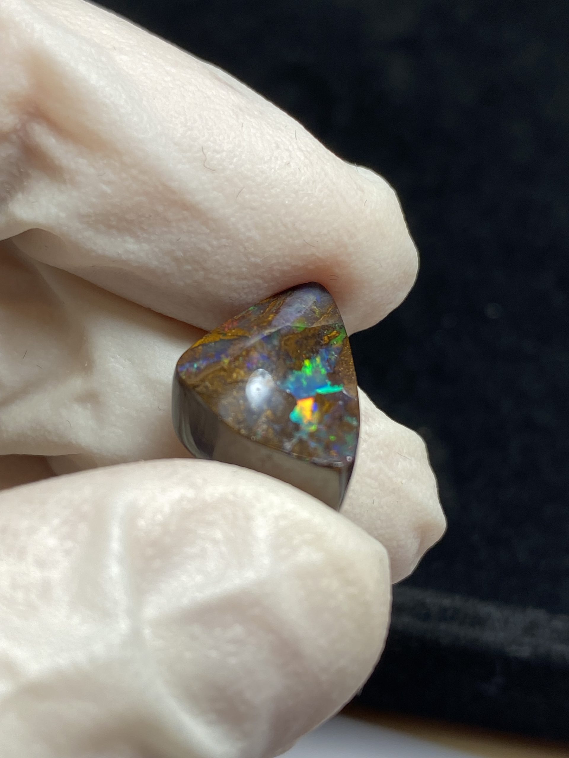 ECLAIRAGE ET COULEURS: Toutes les photos et vidéos ont été prises avec éclairage direct (sous lampe de bureau avec ampoule LED couleur « blanche froide »). Les feux de l’opale seront moins forts sans exposition au soleil ou éclairage direct. Les couleurs de l’opale varient également selon le type d’éclairage et le fond/arrière-plan. En général, le bleu sur les photos/vidéos, est plus proche du violet en réalité sous la plupart des d’éclairages.