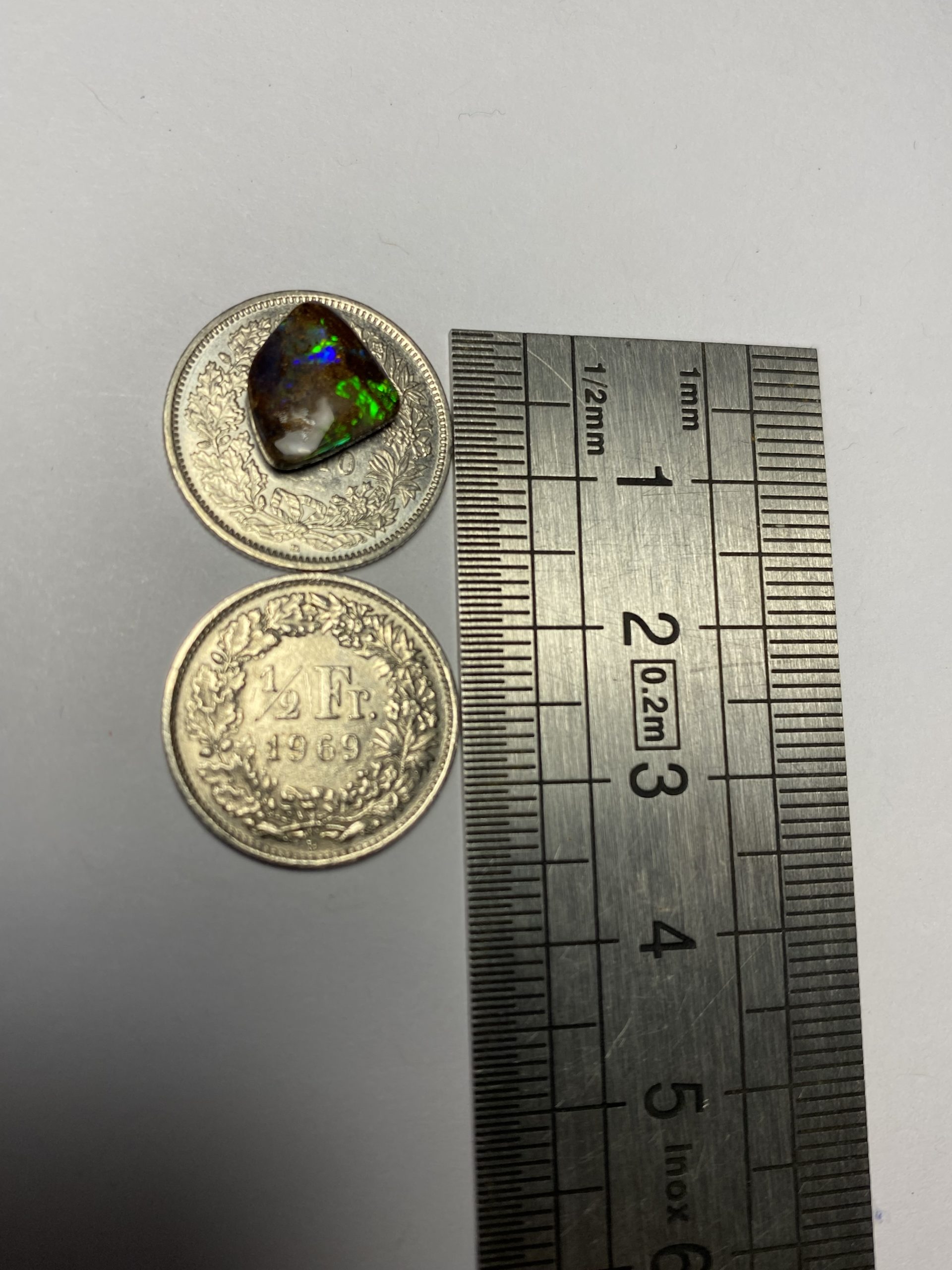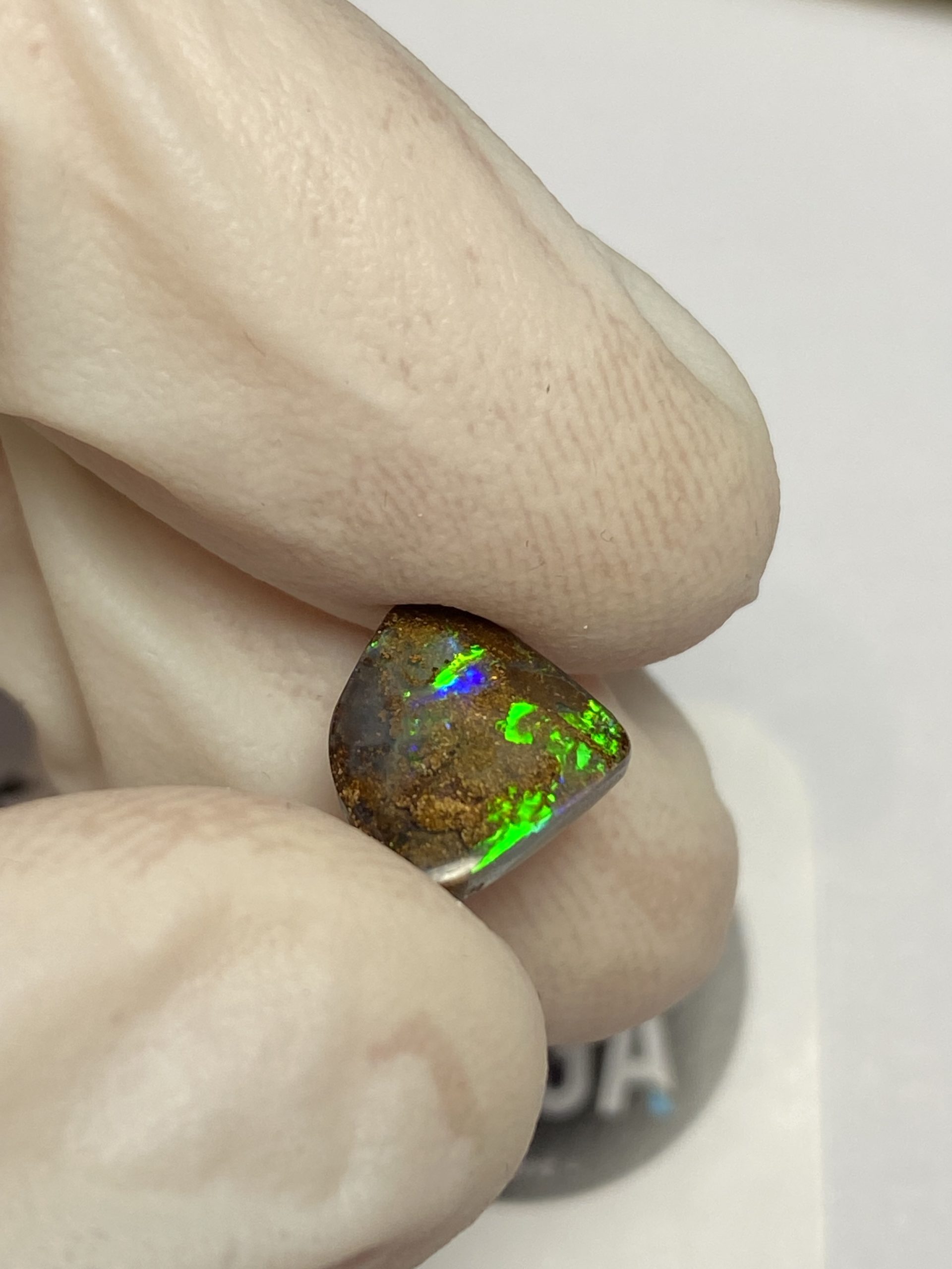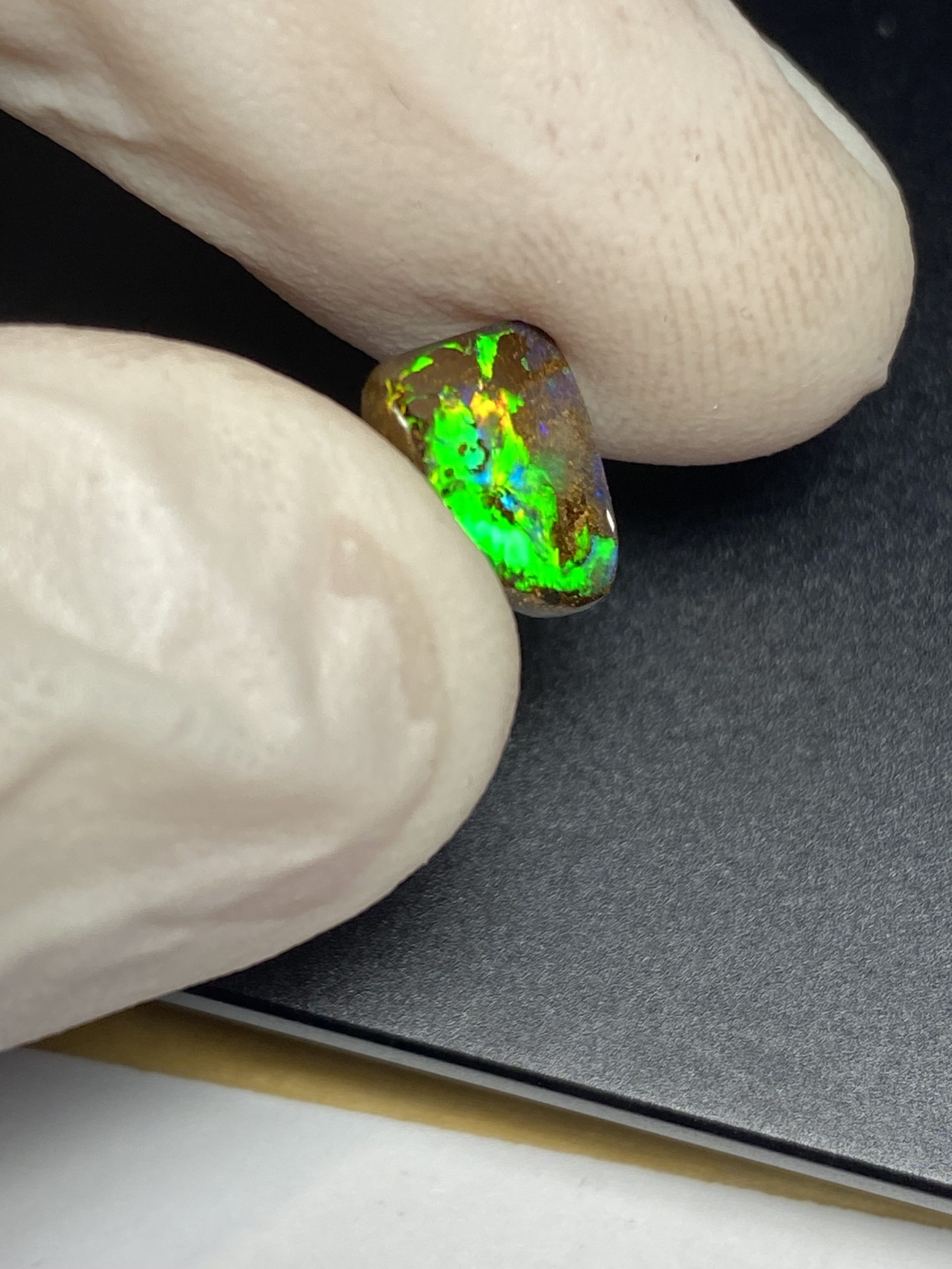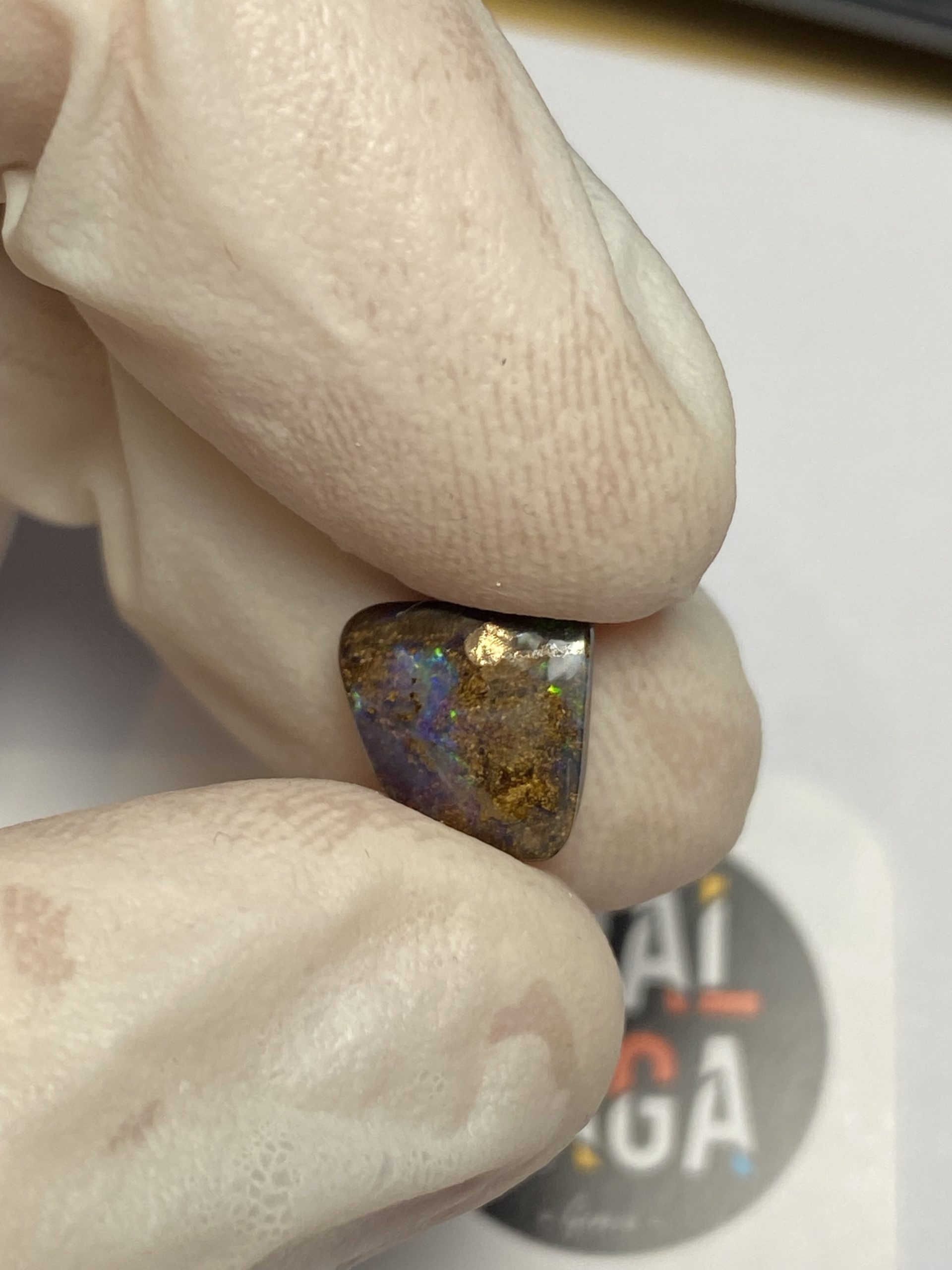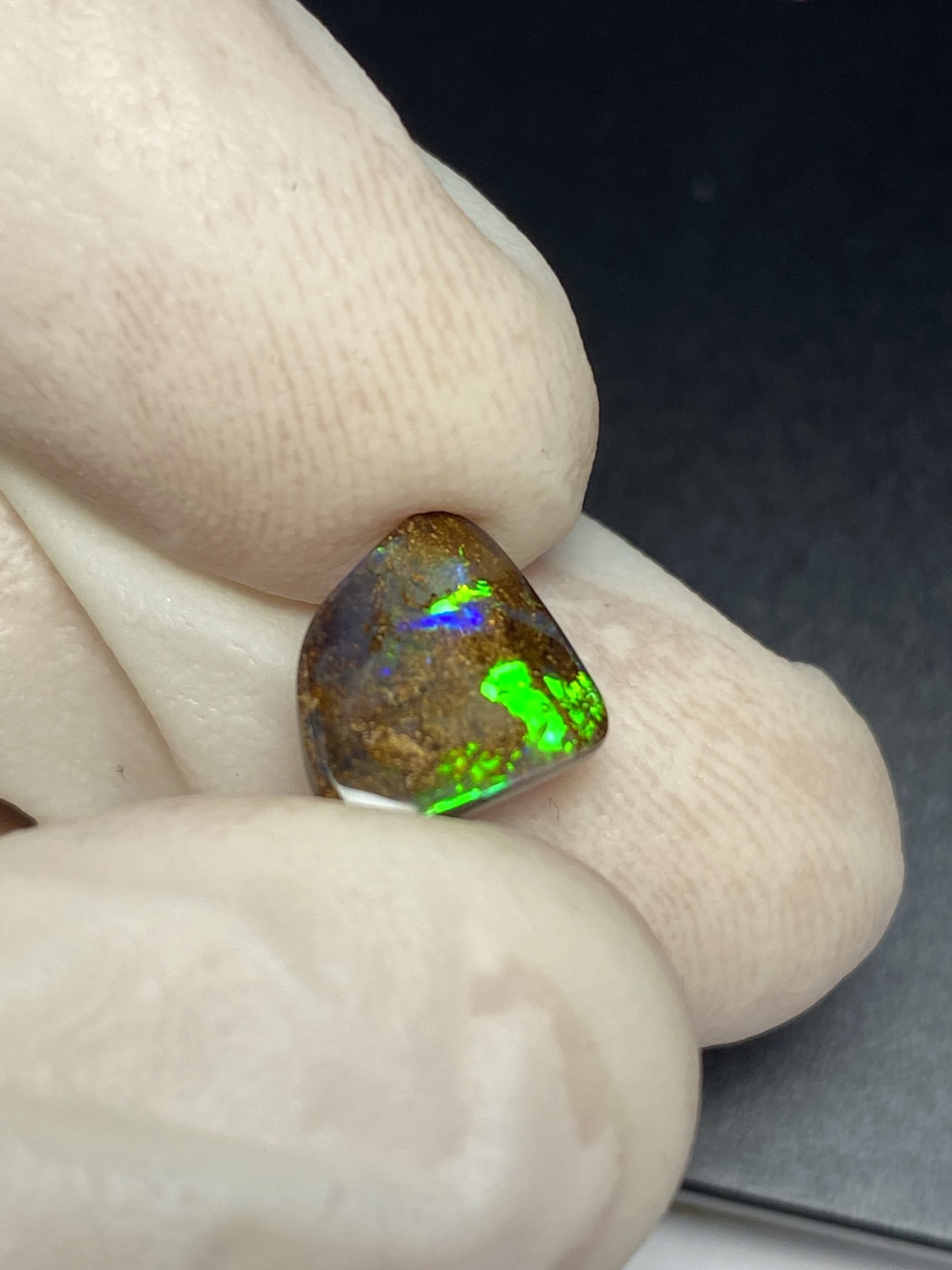 ECLAIRAGE ET COULEURS: Toutes les photos et vidéos ont été prises avec éclairage direct (sous lampe de bureau avec ampoule LED couleur « blanche froide »). Les feux de l’opale seront moins forts sans exposition au soleil ou éclairage direct. Les couleurs de l’opale varient également selon le type d’éclairage et le fond/arrière-plan. En général, le bleu sur les photos/vidéos, est plus proche du violet en réalité sous la plupart des d’éclairages.