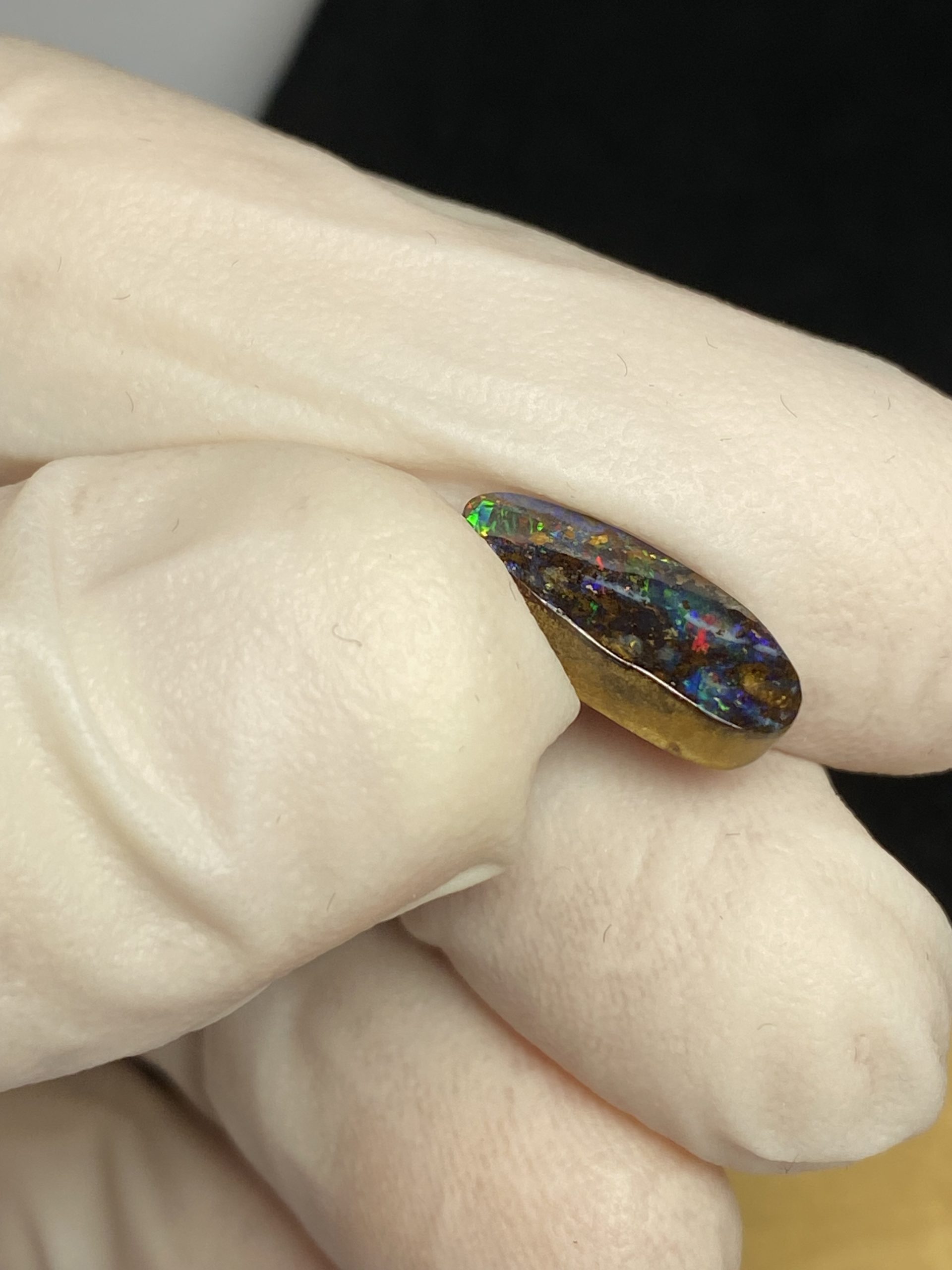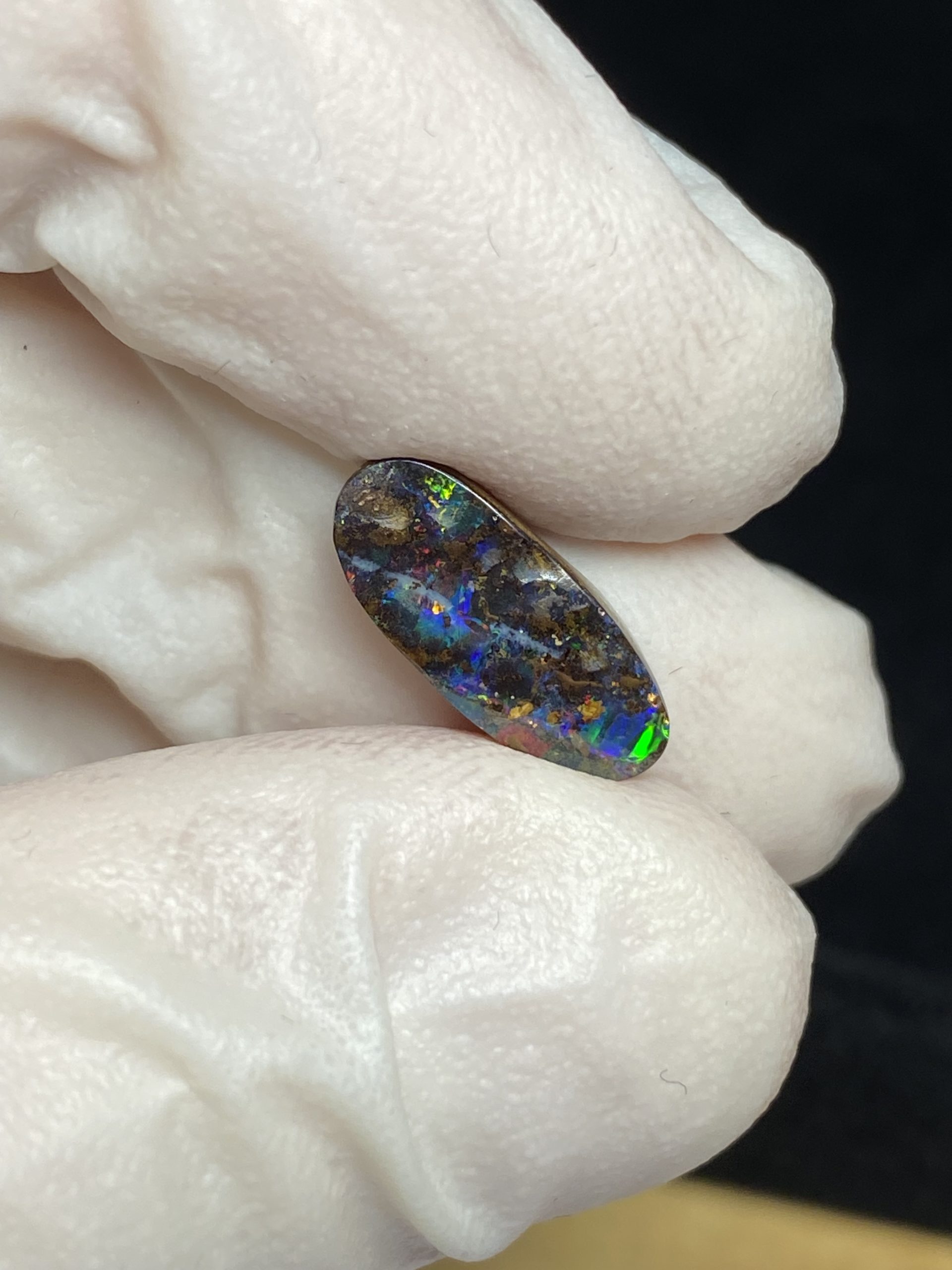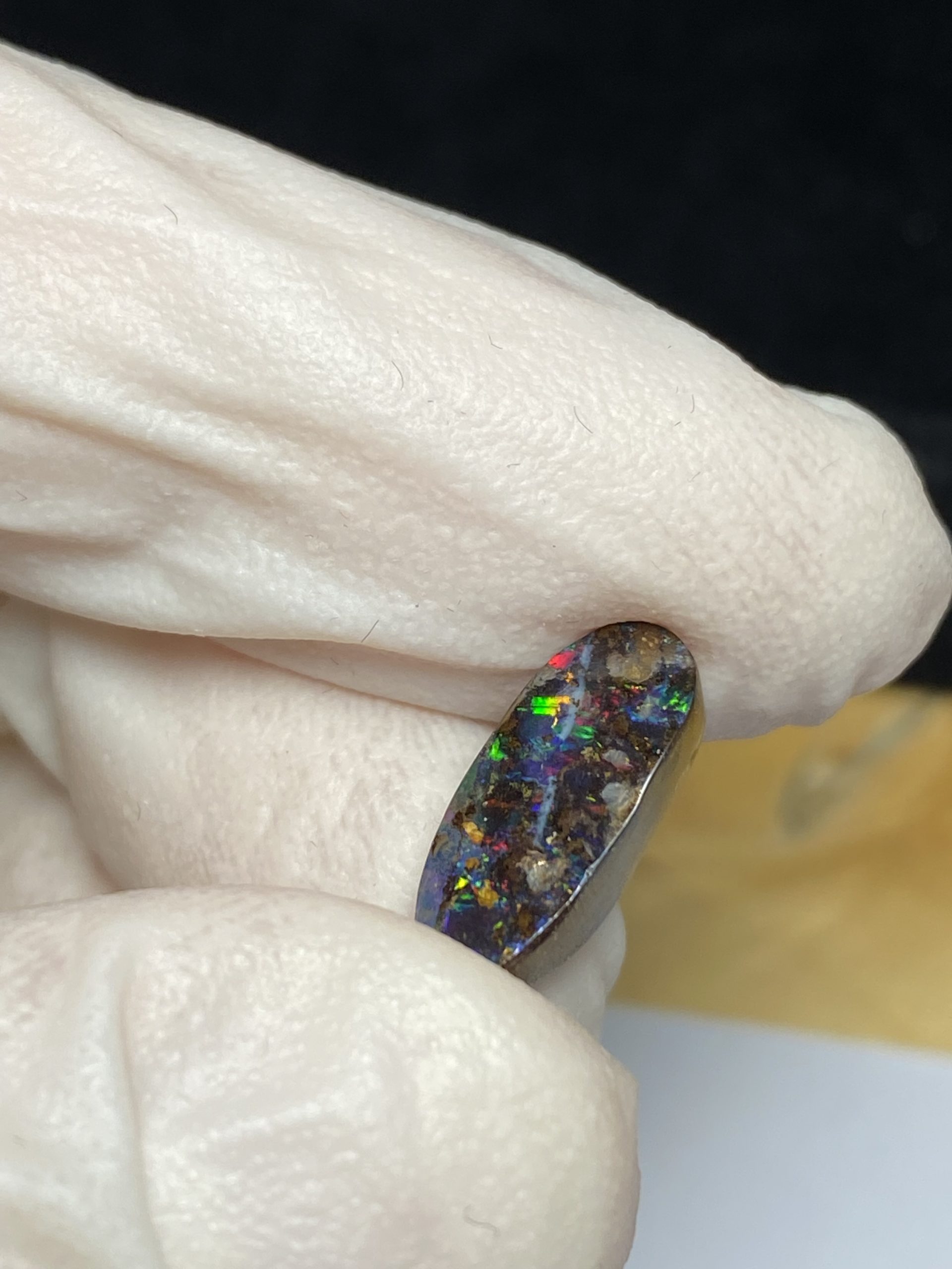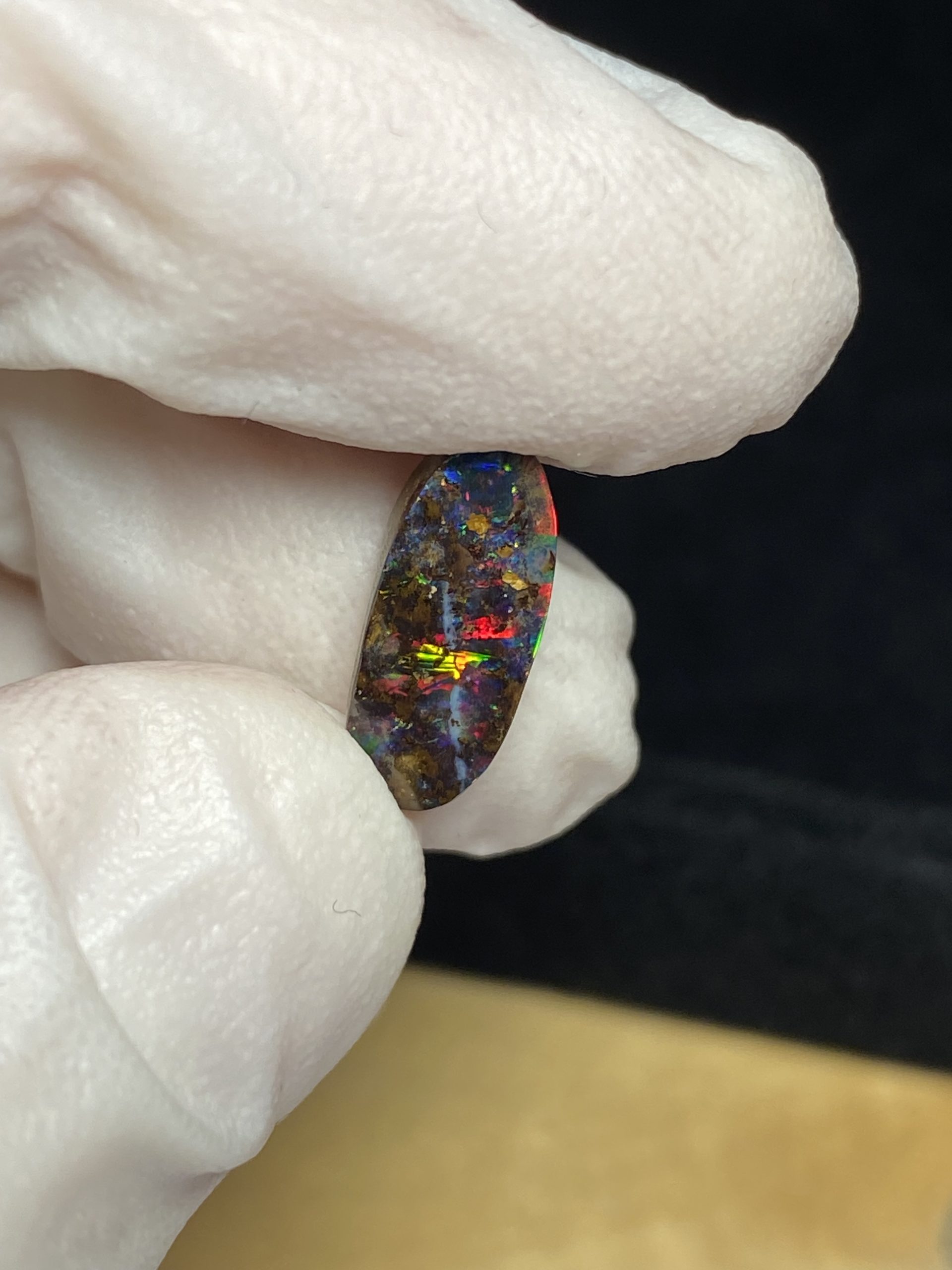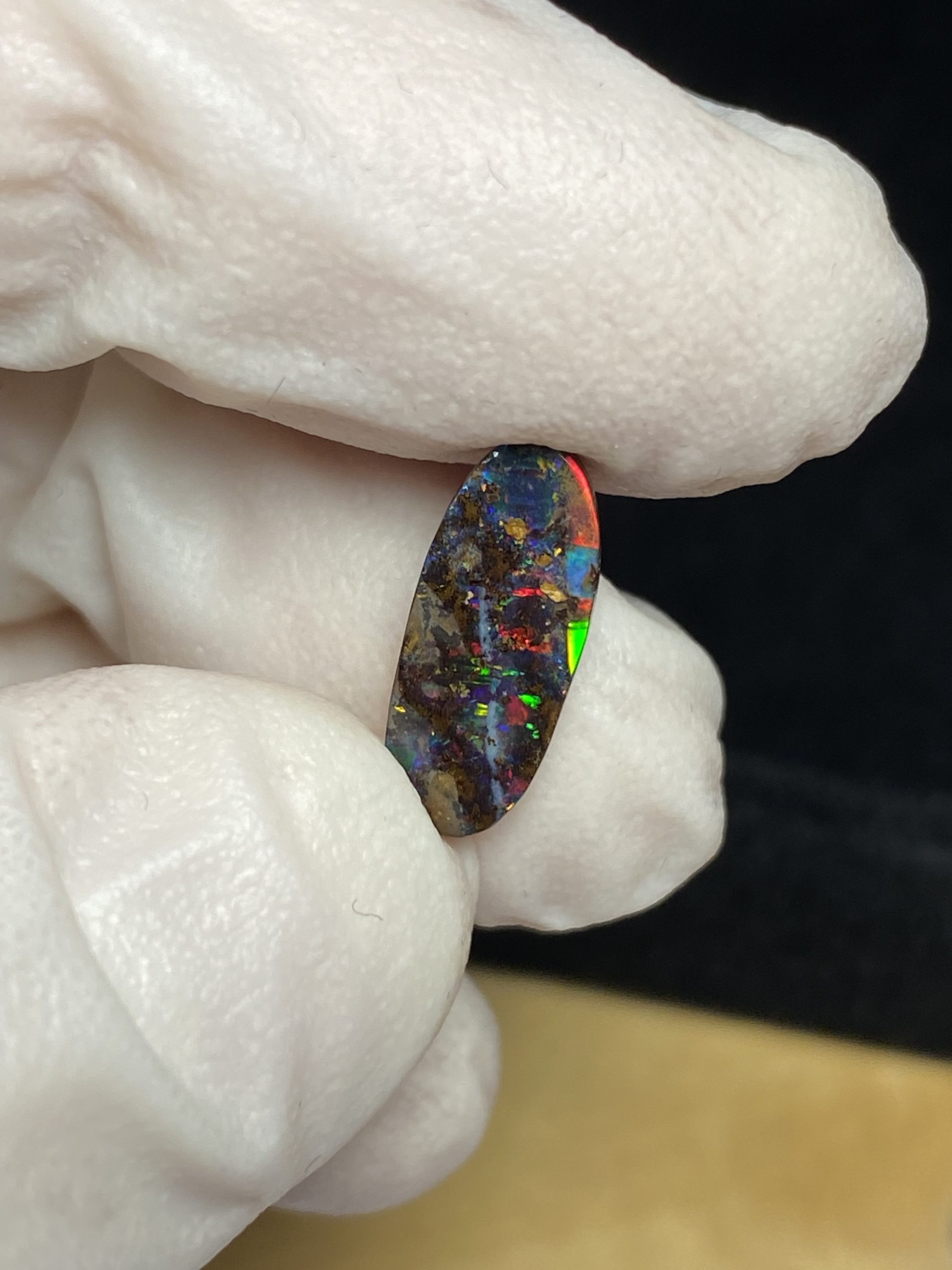 ECLAIRAGE ET COULEURS: Toutes les photos et vidéos ont été prises avec éclairage direct (sous lampe de bureau avec ampoule LED couleur « blanche froide »). Les feux de l’opale seront moins forts sans exposition au soleil ou éclairage direct. Les couleurs de l’opale varient également selon le type d’éclairage et le fond/arrière-plan. En général, le bleu sur les photos/vidéos, est plus proche du violet en réalité sous la plupart des d’éclairages.