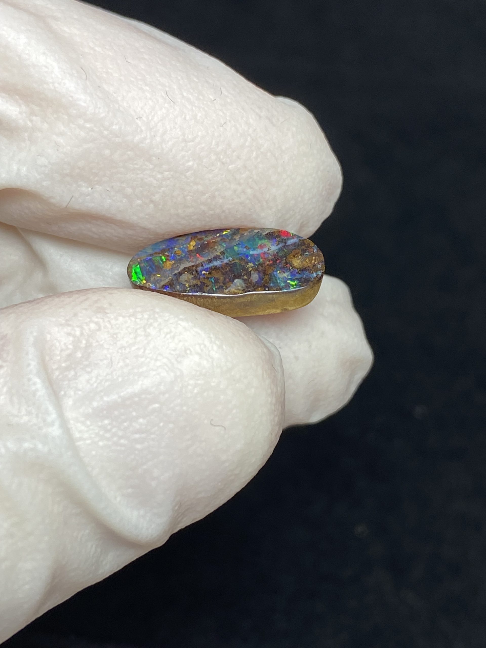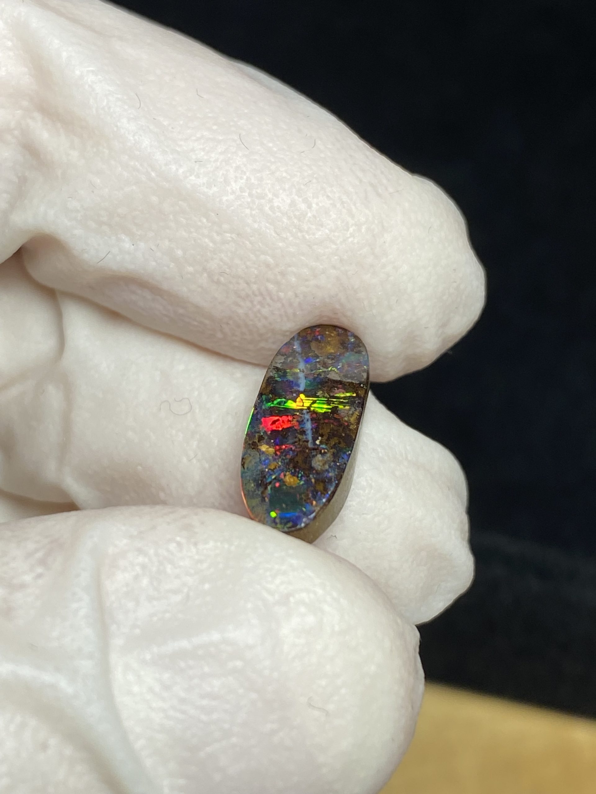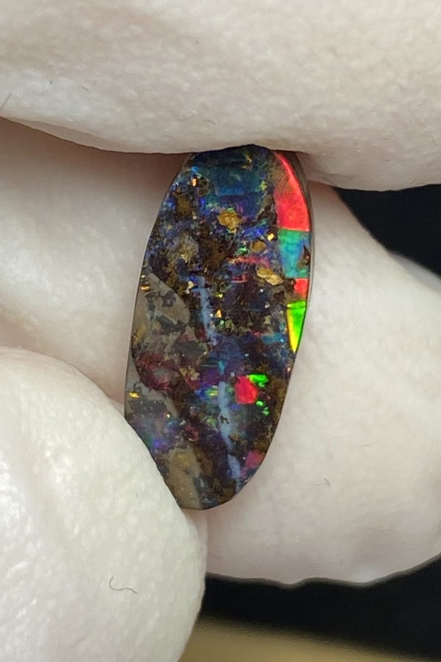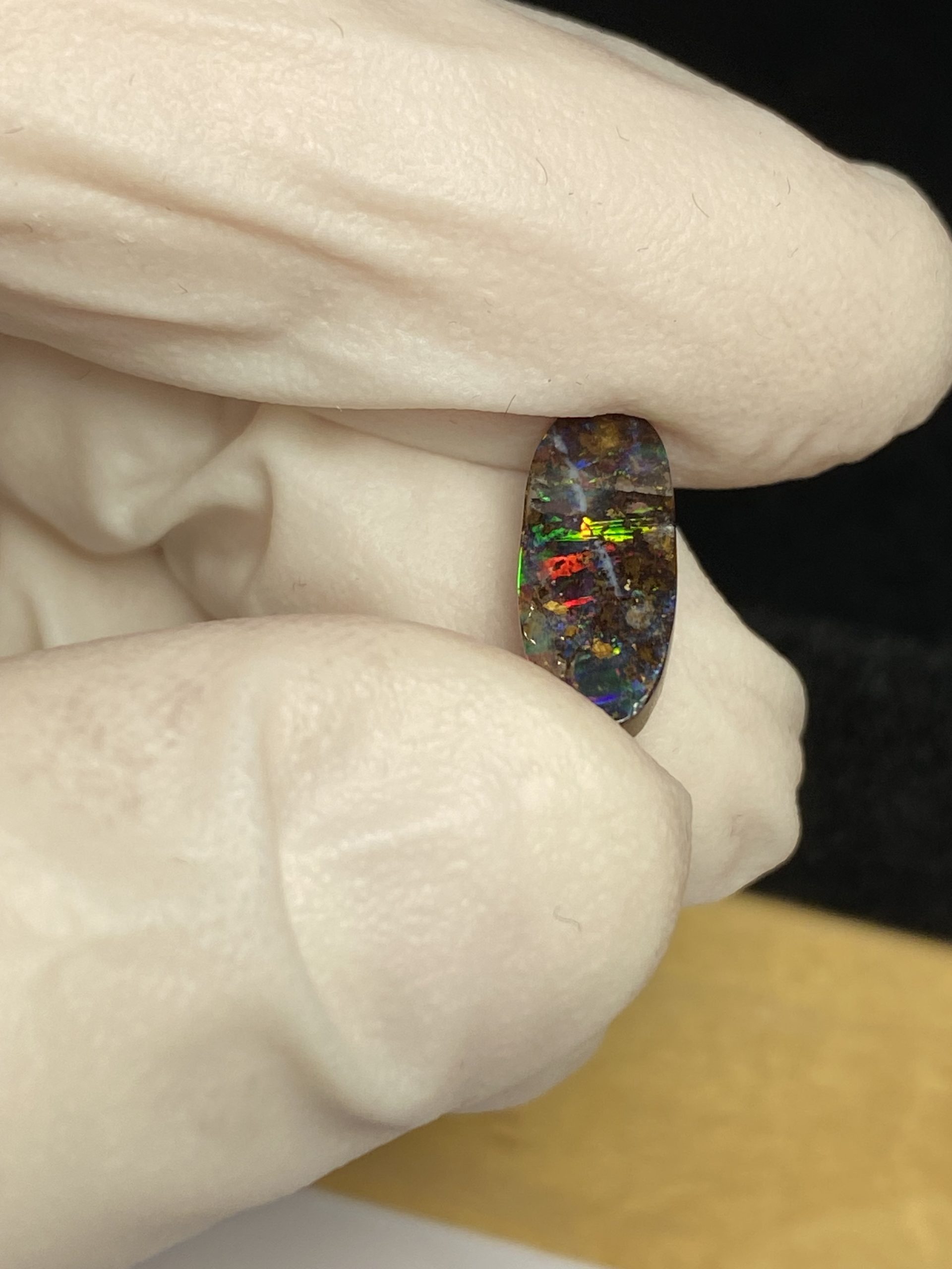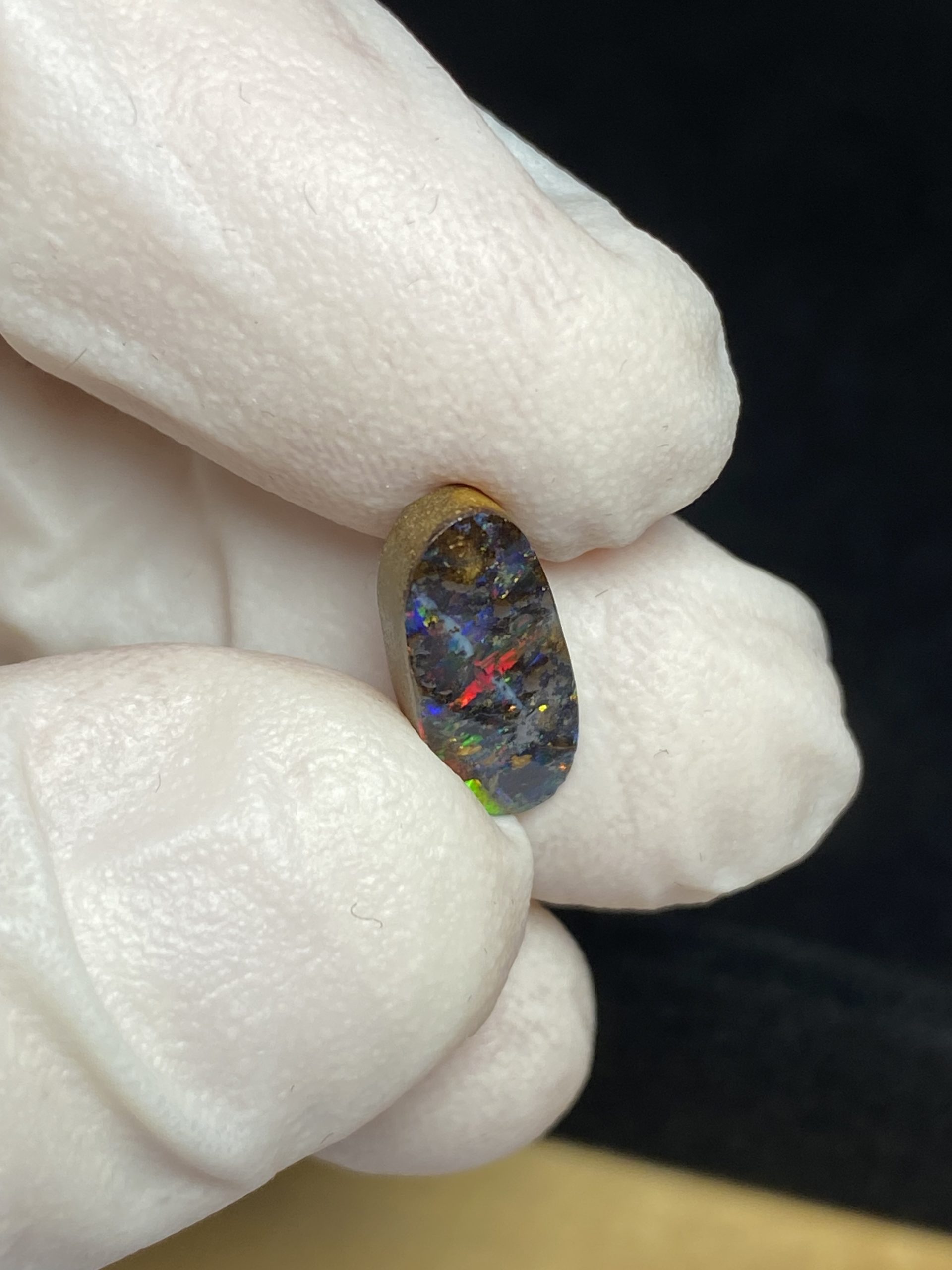 ECLAIRAGE ET COULEURS: Toutes les photos et vidéos ont été prises avec éclairage direct (sous lampe de bureau avec ampoule LED couleur « blanche froide »). Les feux de l’opale seront moins forts sans exposition au soleil ou éclairage direct. Les couleurs de l’opale varient également selon le type d’éclairage et le fond/arrière-plan. En général, le bleu sur les photos/vidéos, est plus proche du violet en réalité sous la plupart des d’éclairages.