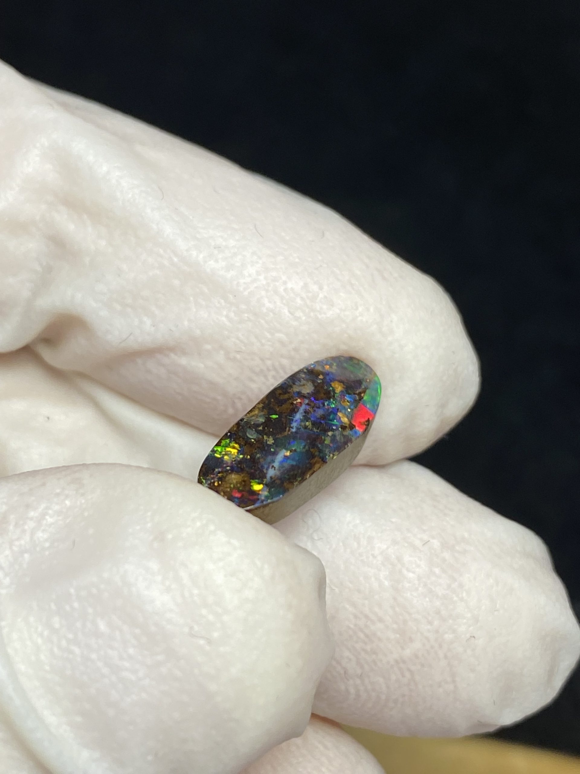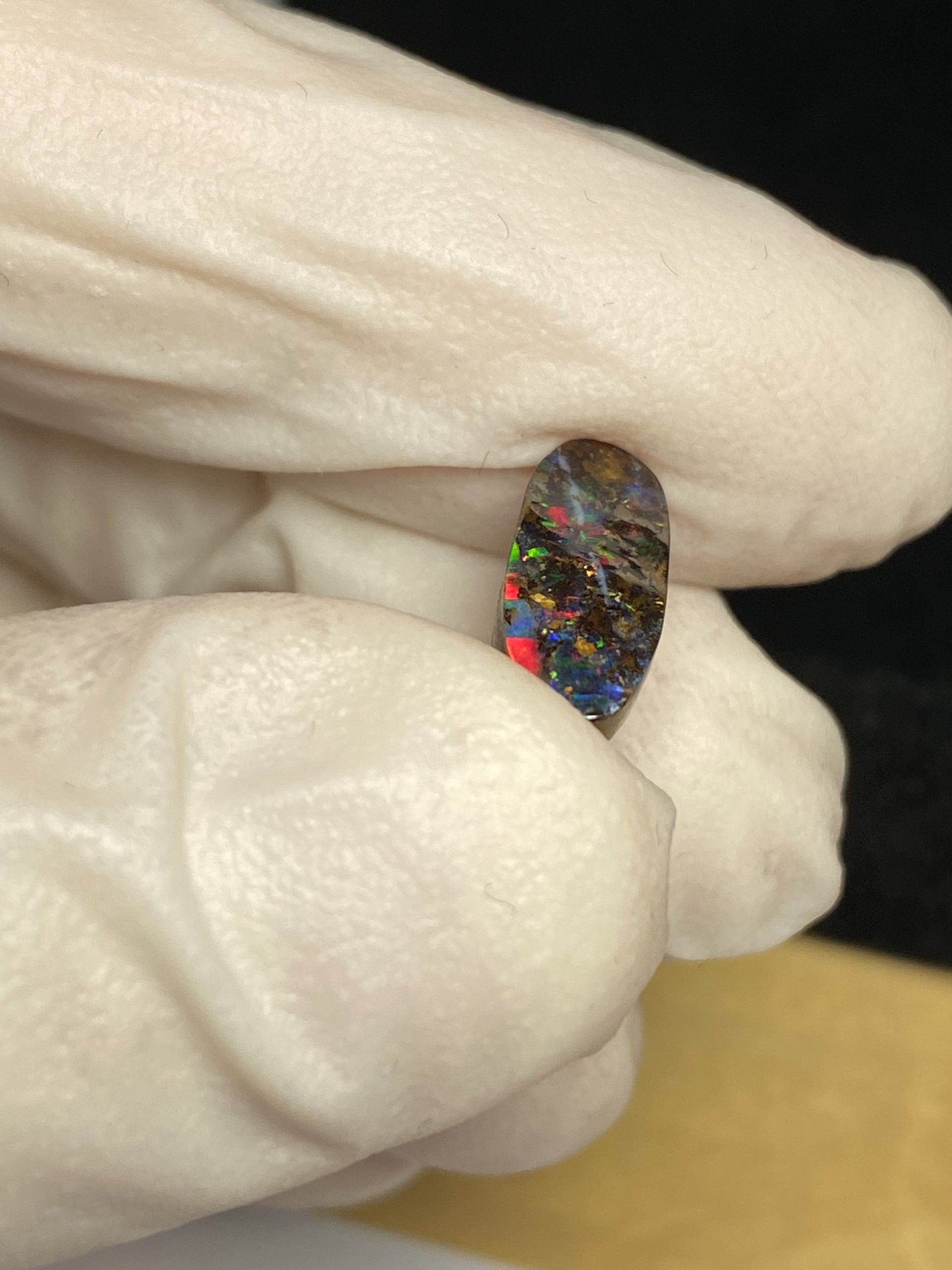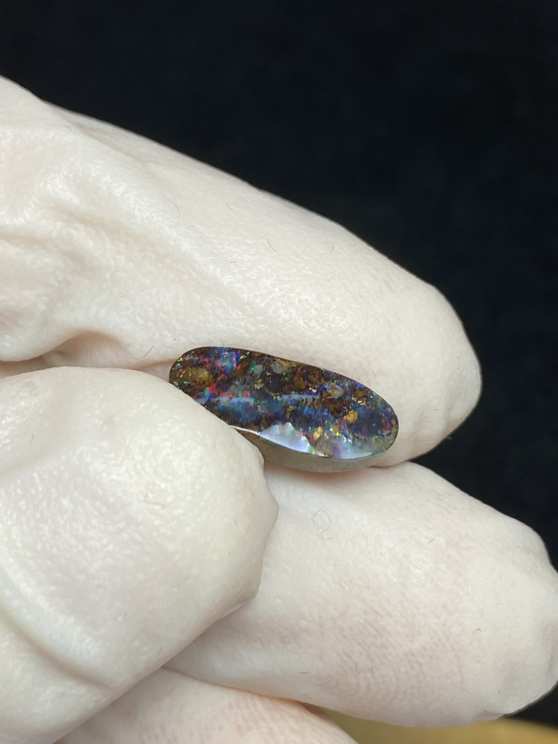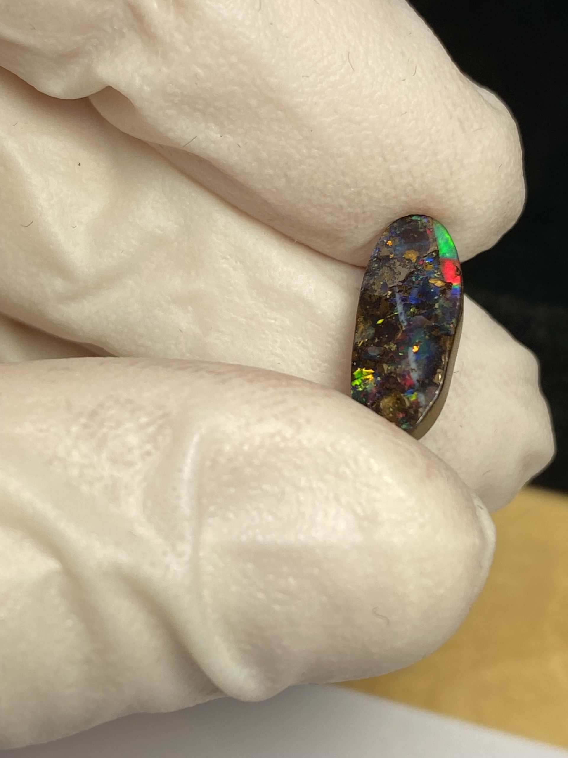 ECLAIRAGE ET COULEURS: Toutes les photos et vidéos ont été prises avec éclairage direct (sous lampe de bureau avec ampoule LED couleur « blanche froide »). Les feux de l’opale seront moins forts sans exposition au soleil ou éclairage direct. Les couleurs de l’opale varient également selon le type d’éclairage et le fond/arrière-plan. En général, le bleu sur les photos/vidéos, est plus proche du violet en réalité sous la plupart des d’éclairages.