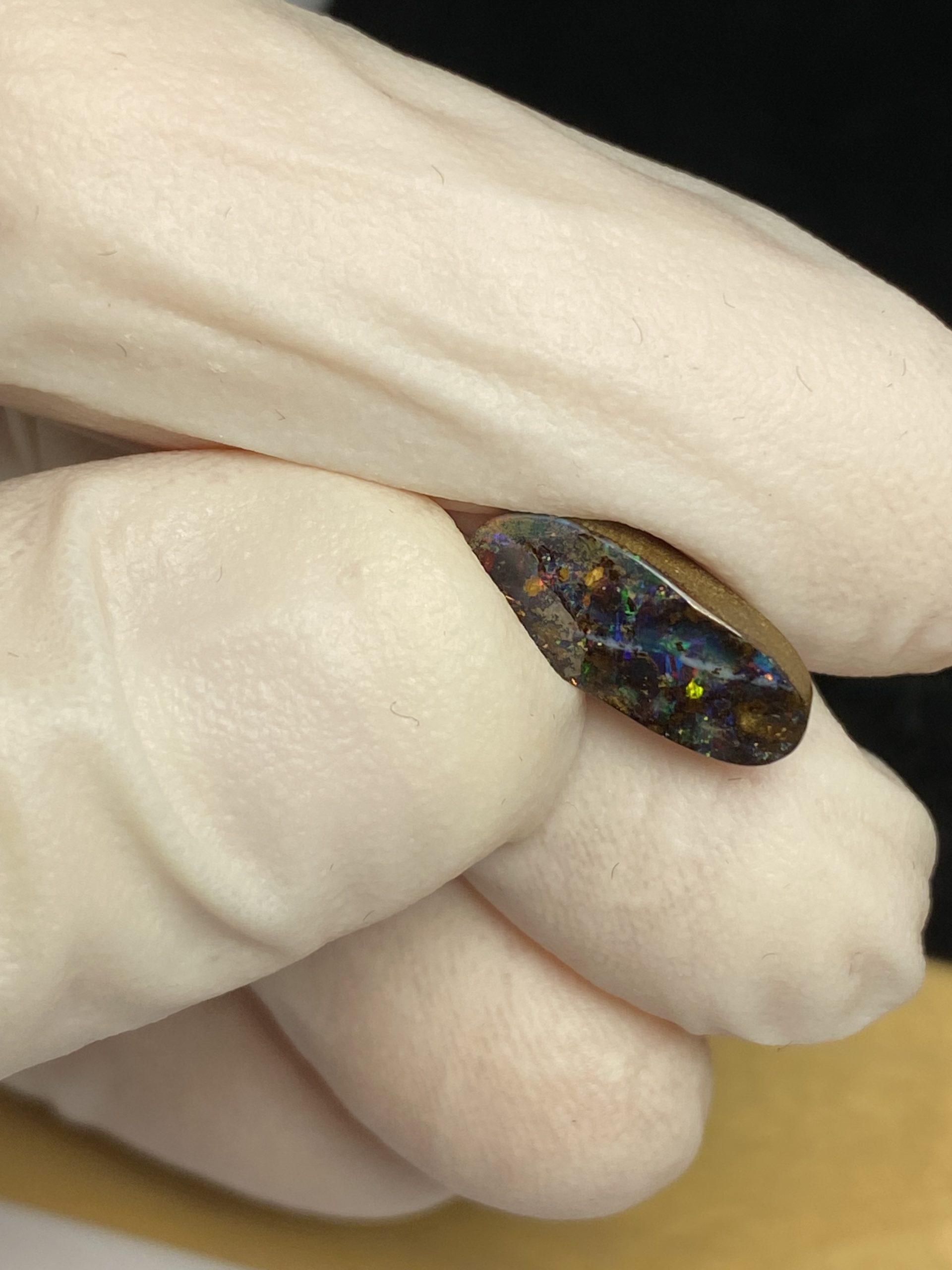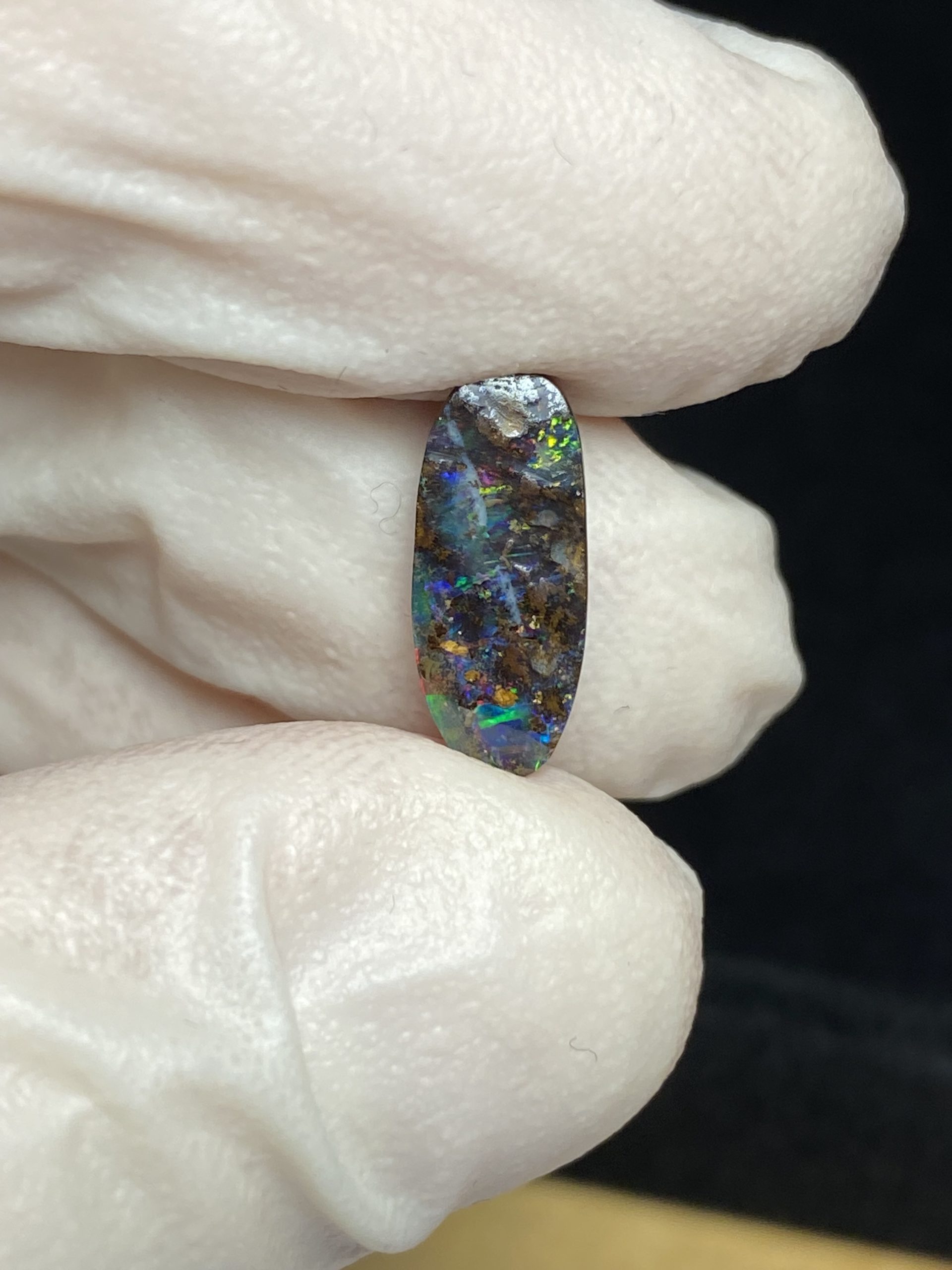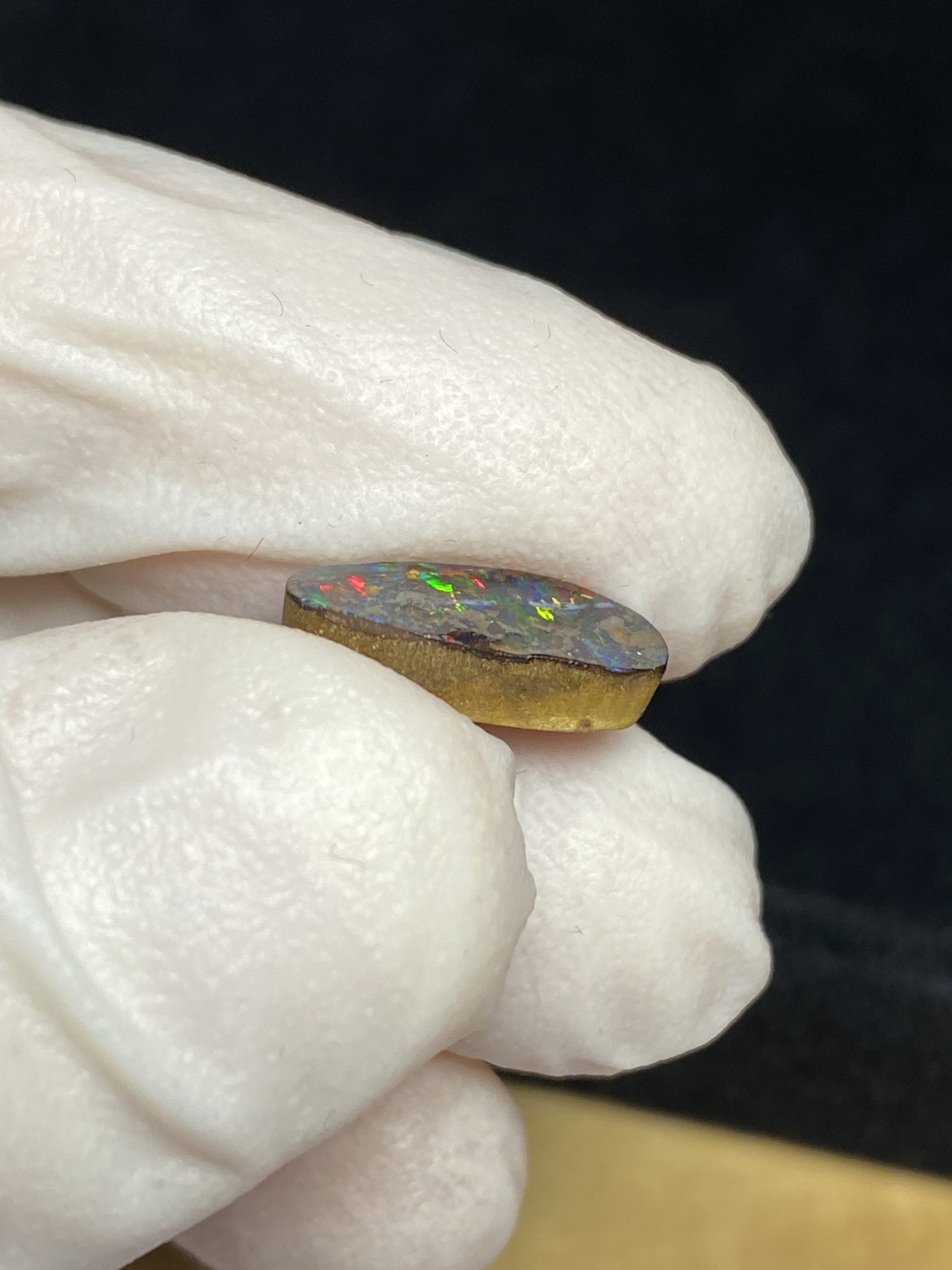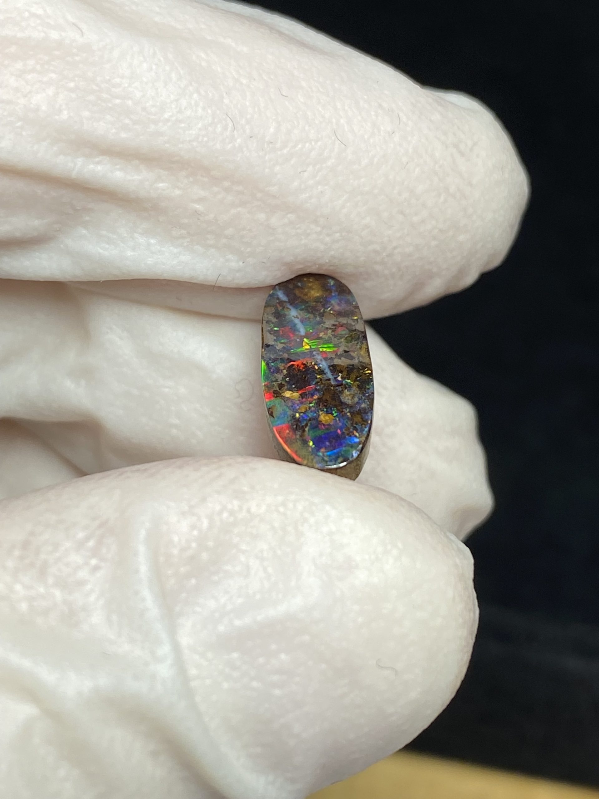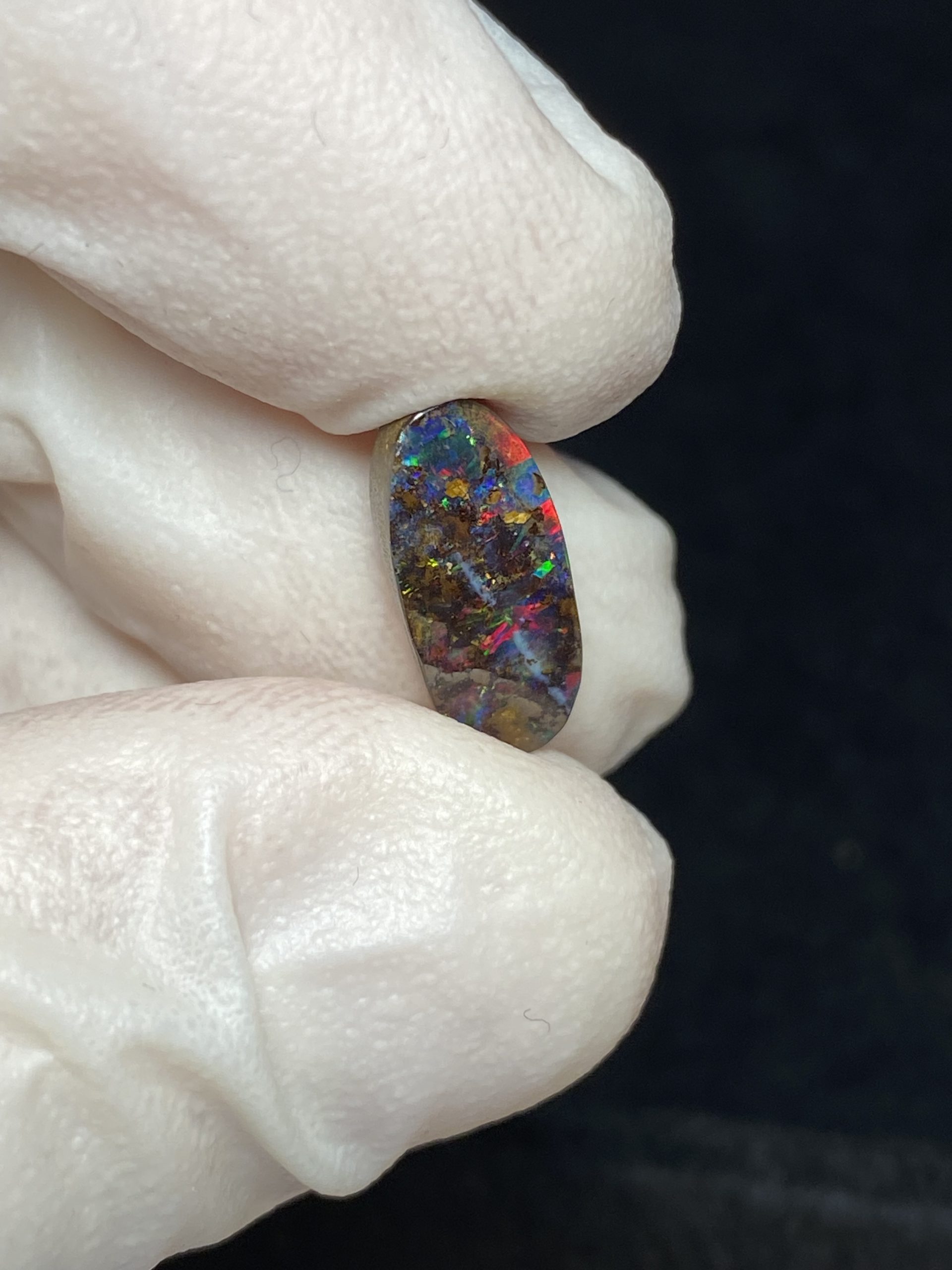 ECLAIRAGE ET COULEURS: Toutes les photos et vidéos ont été prises avec éclairage direct (sous lampe de bureau avec ampoule LED couleur « blanche froide »). Les feux de l’opale seront moins forts sans exposition au soleil ou éclairage direct. Les couleurs de l’opale varient également selon le type d’éclairage et le fond/arrière-plan. En général, le bleu sur les photos/vidéos, est plus proche du violet en réalité sous la plupart des d’éclairages.