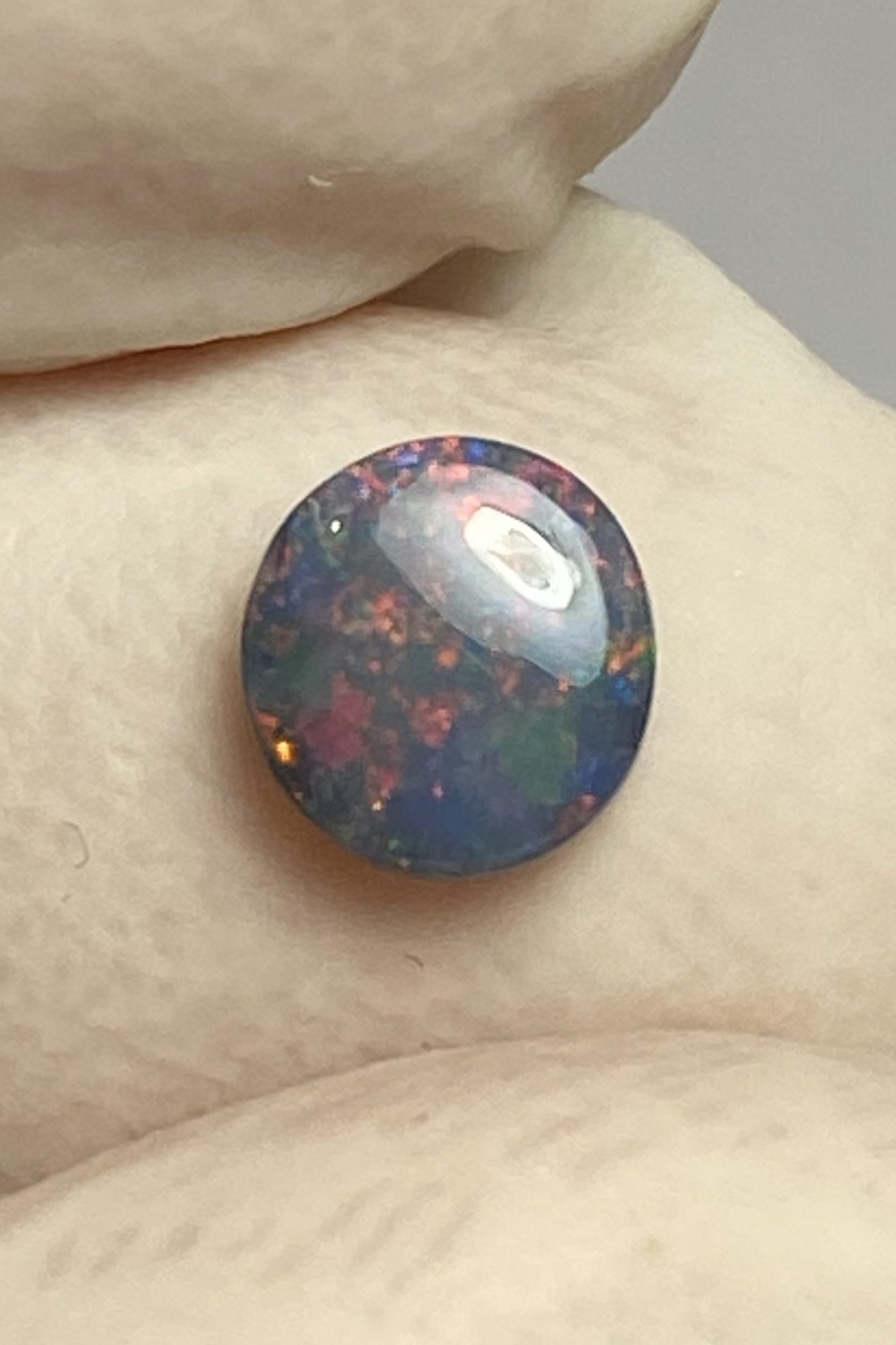 ECLAIRAGE ET COULEURS: Toutes les photos et vidéos ont été prises avec éclairage direct (sous lampe de bureau avec ampoule LED couleur « blanche froide »). Les feux de l’opale seront moins forts sans exposition au soleil ou éclairage direct. Les couleurs de l’opale varient également selon le type d’éclairage et le fond/arrière-plan. En général, le bleu sur les photos/vidéos, est plus proche du violet en réalité sous la plupart des d’éclairages.