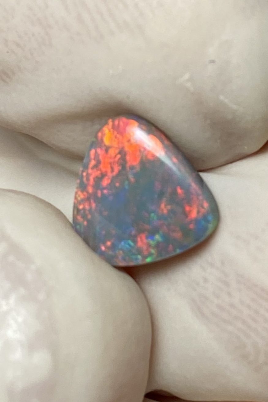 ECLAIRAGE ET COULEURS: Toutes les photos et vidéos ont été prises avec éclairage direct (sous lampe de bureau avec ampoule LED couleur « blanche froide »). Les feux de l’opale seront moins forts sans exposition au soleil ou éclairage direct. Les couleurs de l’opale varient également selon le type d’éclairage et le fond/arrière-plan. En général, le bleu sur les photos/vidéos, est plus proche du violet en réalité sous la plupart des d’éclairages.