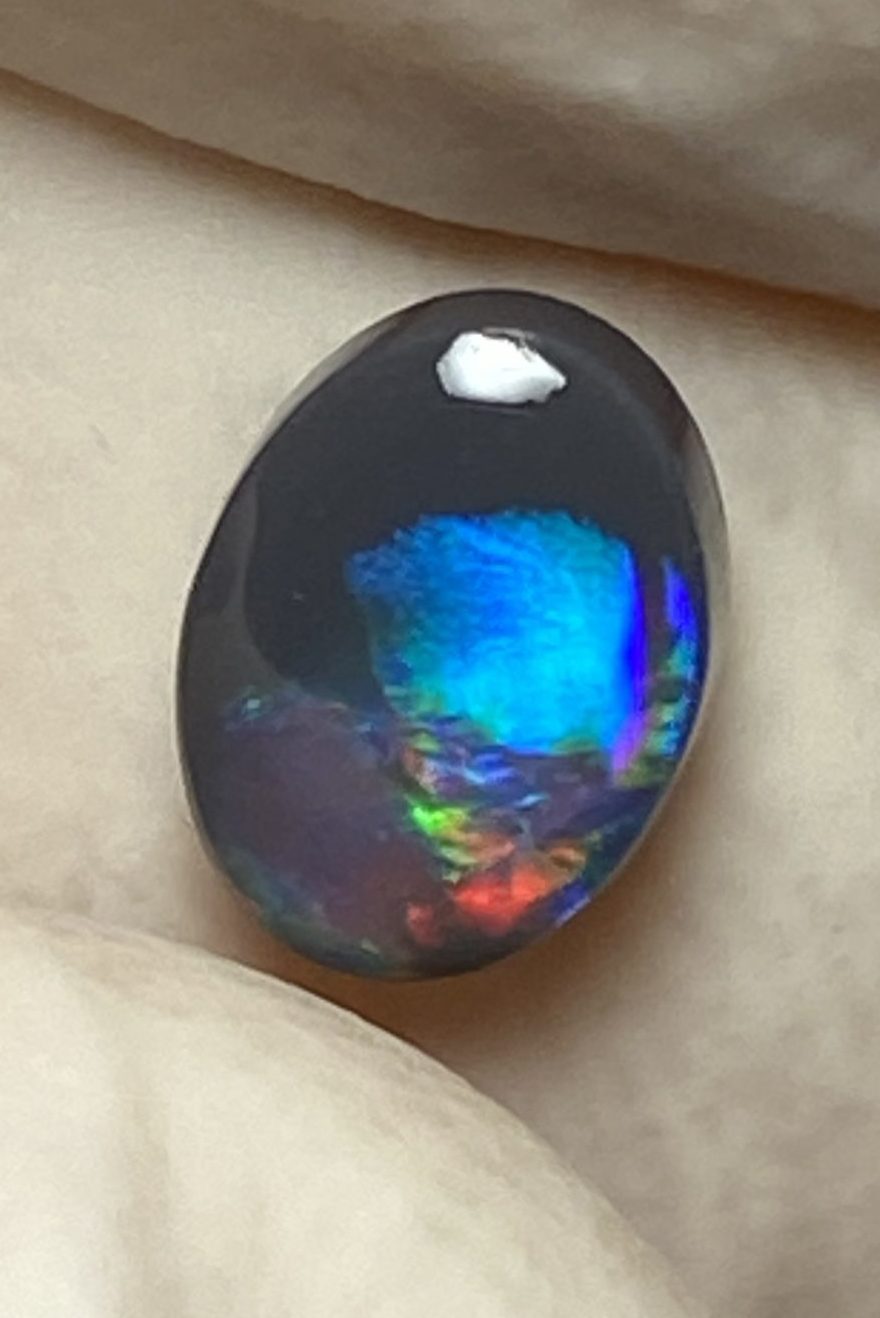 ECLAIRAGE ET COULEURS: Toutes les photos et vidéos ont été prises avec éclairage direct (sous lampe de bureau avec ampoule LED couleur « blanche froide »). Les feux de l’opale seront moins forts sans exposition au soleil ou éclairage direct. Les couleurs de l’opale varient également selon le type d’éclairage et le fond/arrière-plan. En général, le bleu sur les photos/vidéos, est plus proche du violet en réalité sous la plupart des d’éclairages.