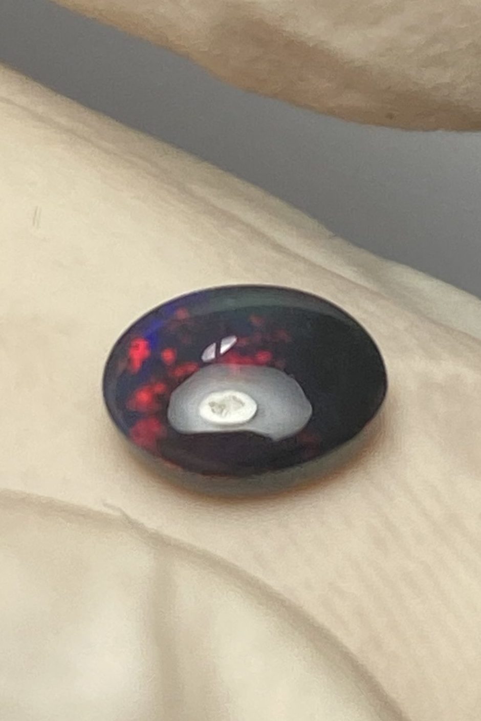ECLAIRAGE ET COULEURS: Toutes les photos et vidéos ont été prises avec éclairage direct (sous lampe de bureau avec ampoule LED couleur « blanche froide »). Les feux de l’opale seront moins forts sans exposition au soleil ou éclairage direct. Les couleurs de l’opale varient également selon le type d’éclairage et le fond/arrière-plan. En général, le bleu sur les photos/vidéos, est plus proche du violet en réalité sous la plupart des d’éclairages.
