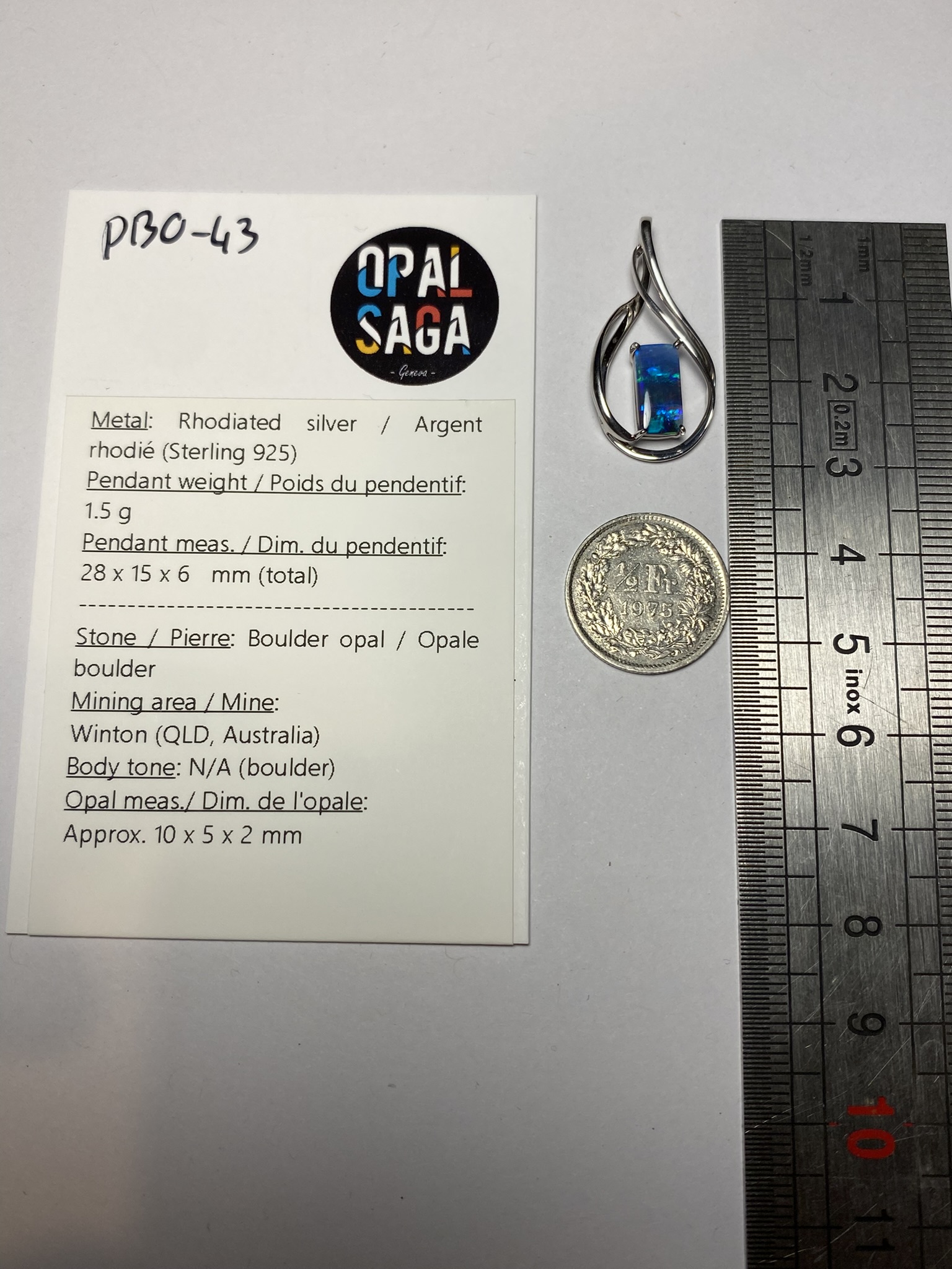 Opal meas./ Dim. de l’opale: