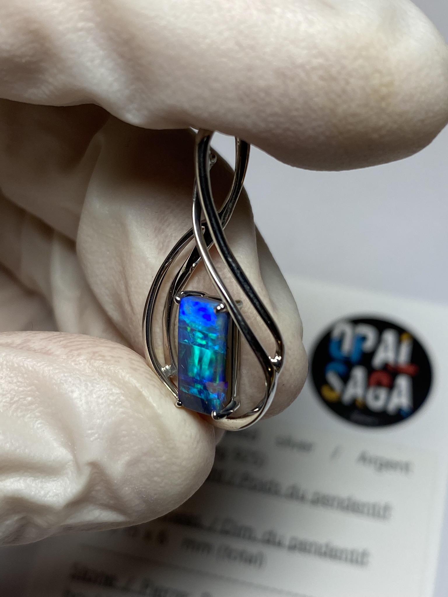ECLAIRAGE ET COULEURS: Toutes les photos et vidéos ont été prises avec éclairage direct (sous lampe de bureau avec ampoule LED couleur « blanche froide »). Les feux de l’opale seront moins forts sans exposition au soleil ou éclairage direct. Les couleurs de l’opale varient également selon le type d’éclairage et le fond/arrière-plan. En général, le bleu sur les photos/vidéos, est plus proche du violet en réalité sous la plupart des d’éclairages.
