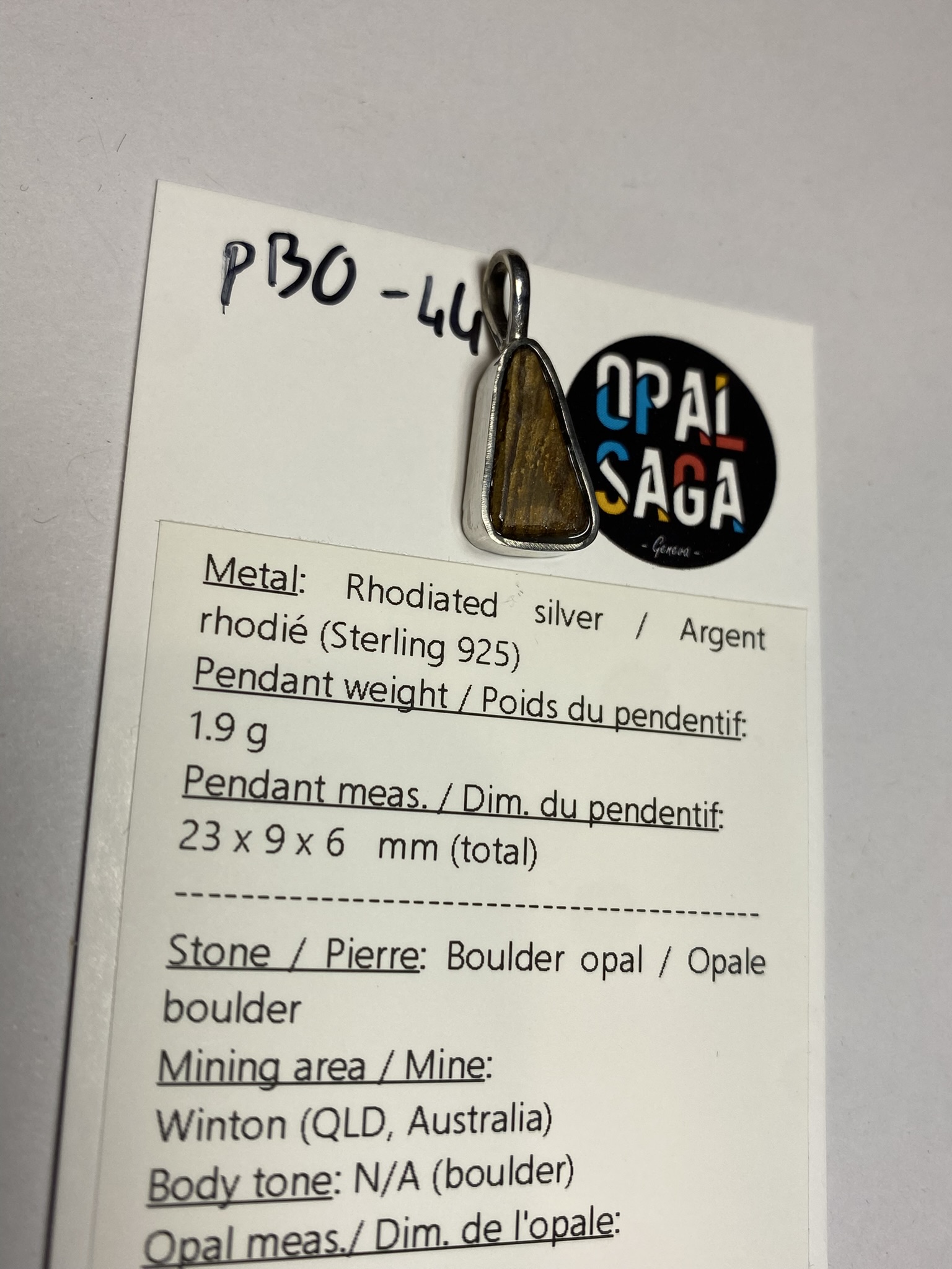 Opal meas./ Dim. de l’opale: